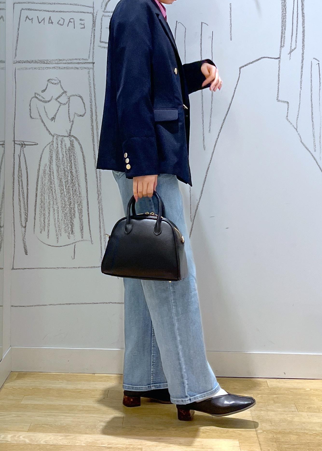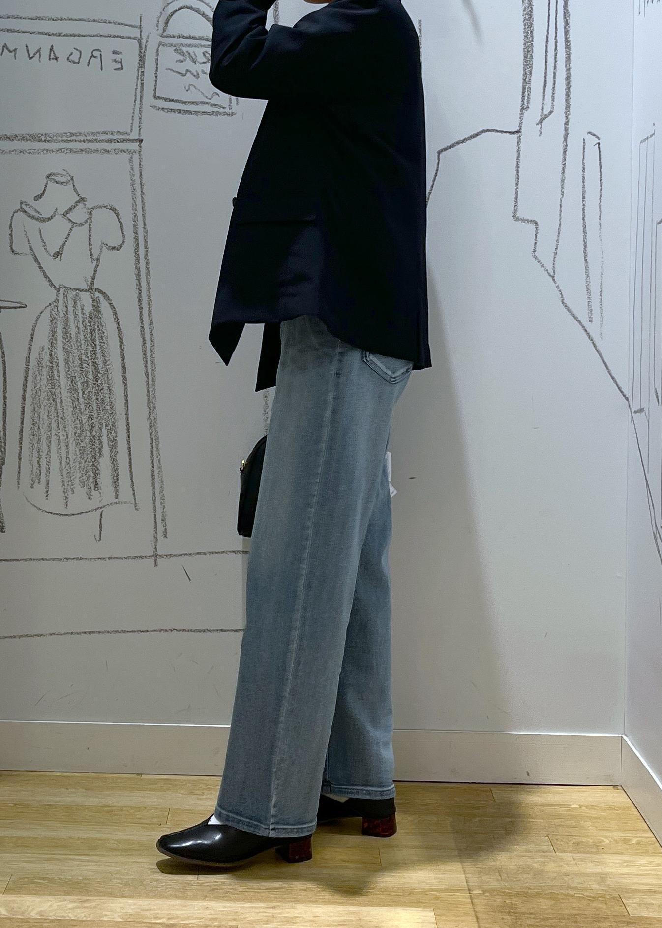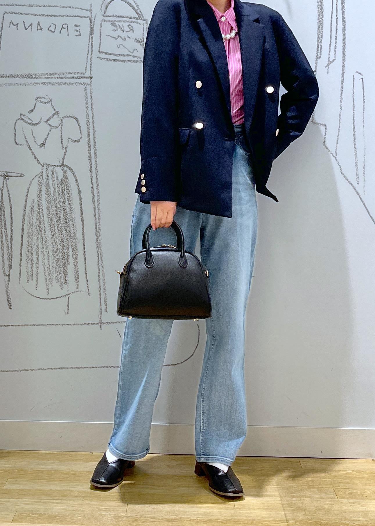 キレイめな金ボタンジャケットとボトムをデニムにして