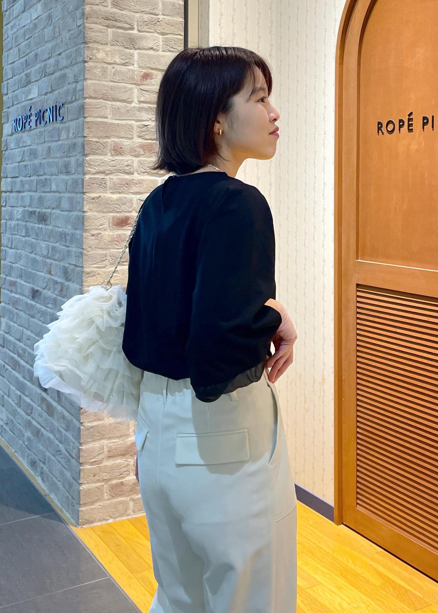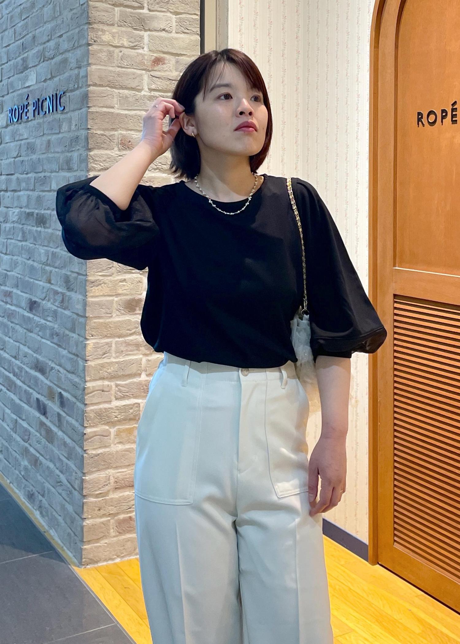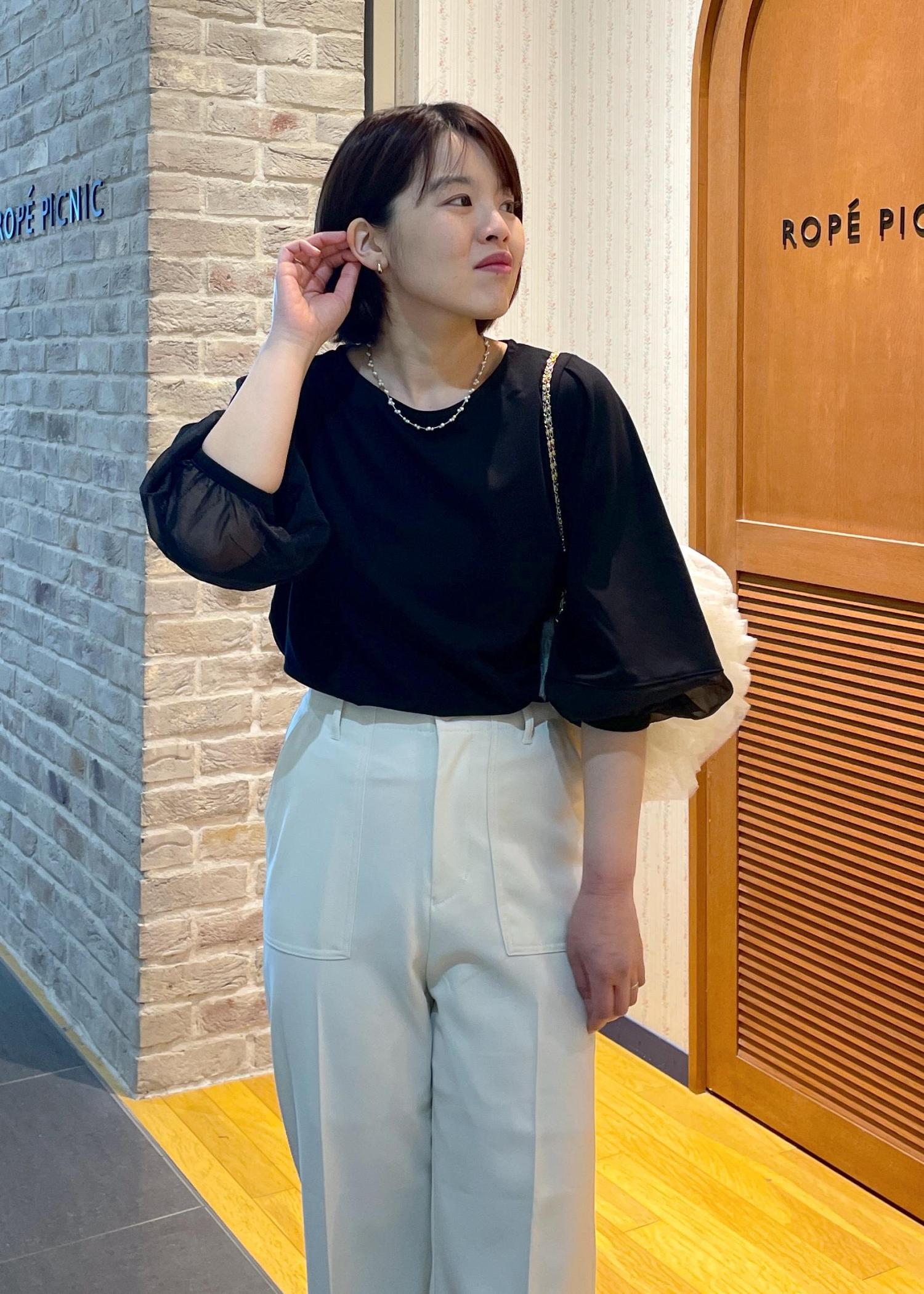 アウトレットROPÉ PICNIC【WEB限定カラー:ネイビー,ピンク】袖シアーカットトップスブラック / 38¥2,992レビューきれい見えする表面感のカットソーでオンオフ兼用で着回しできます。さらっと柔らかなカットソー生地で着心地も良いです。お袖はボリューム感があり、袖口のシアー素材の切替が軽やかな印象で合わせて頂けます。