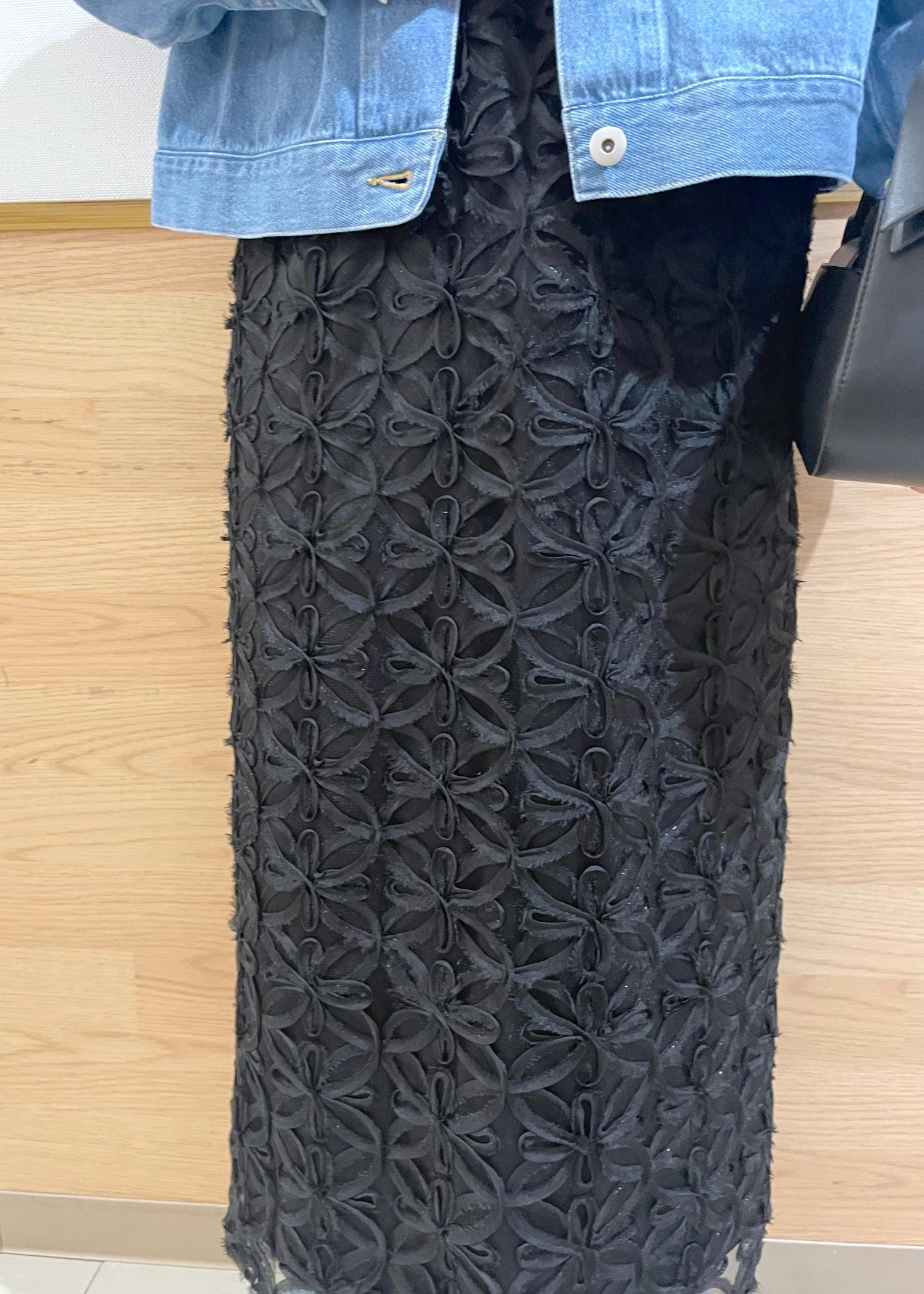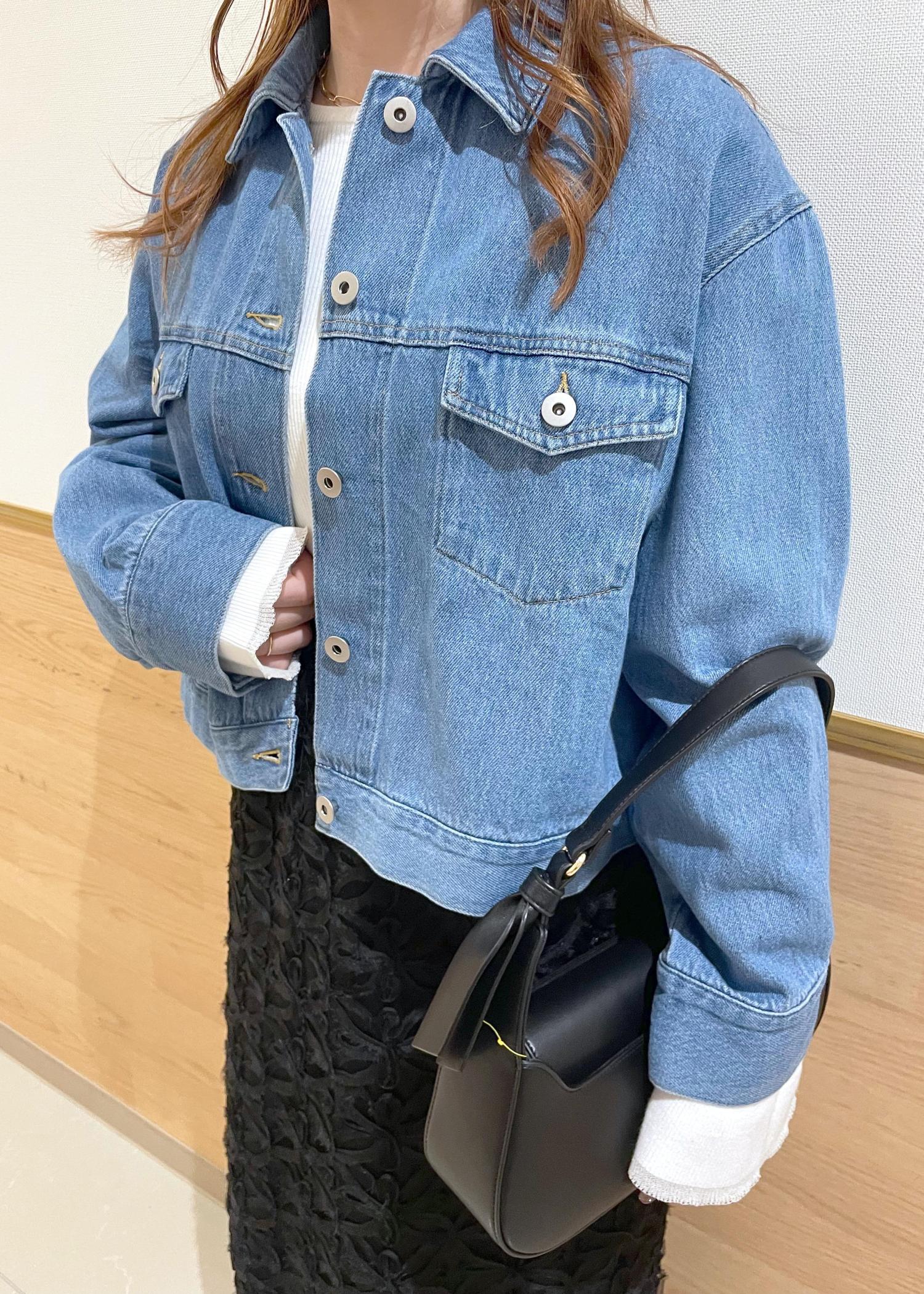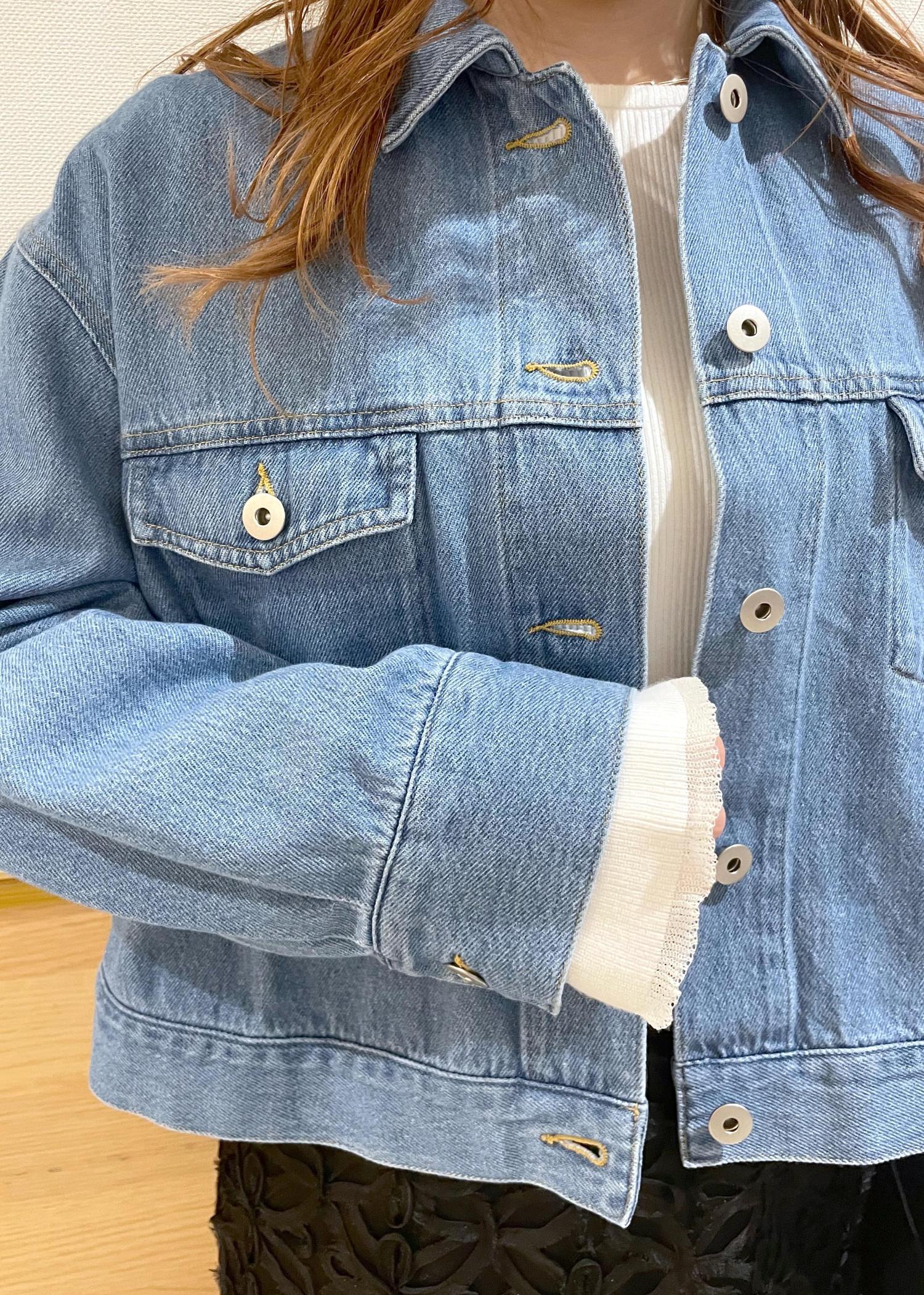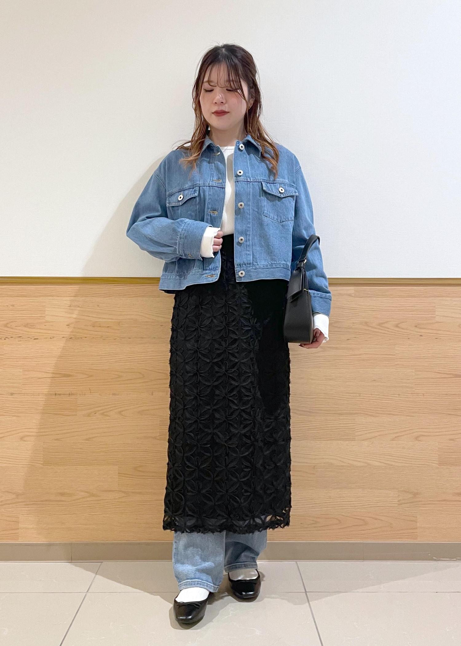 デニムオンデニムコーデに花柄レーススカートを合わせたトレンドMIXコーデ!シンプルにならないように小物も統一して見ました♡´-