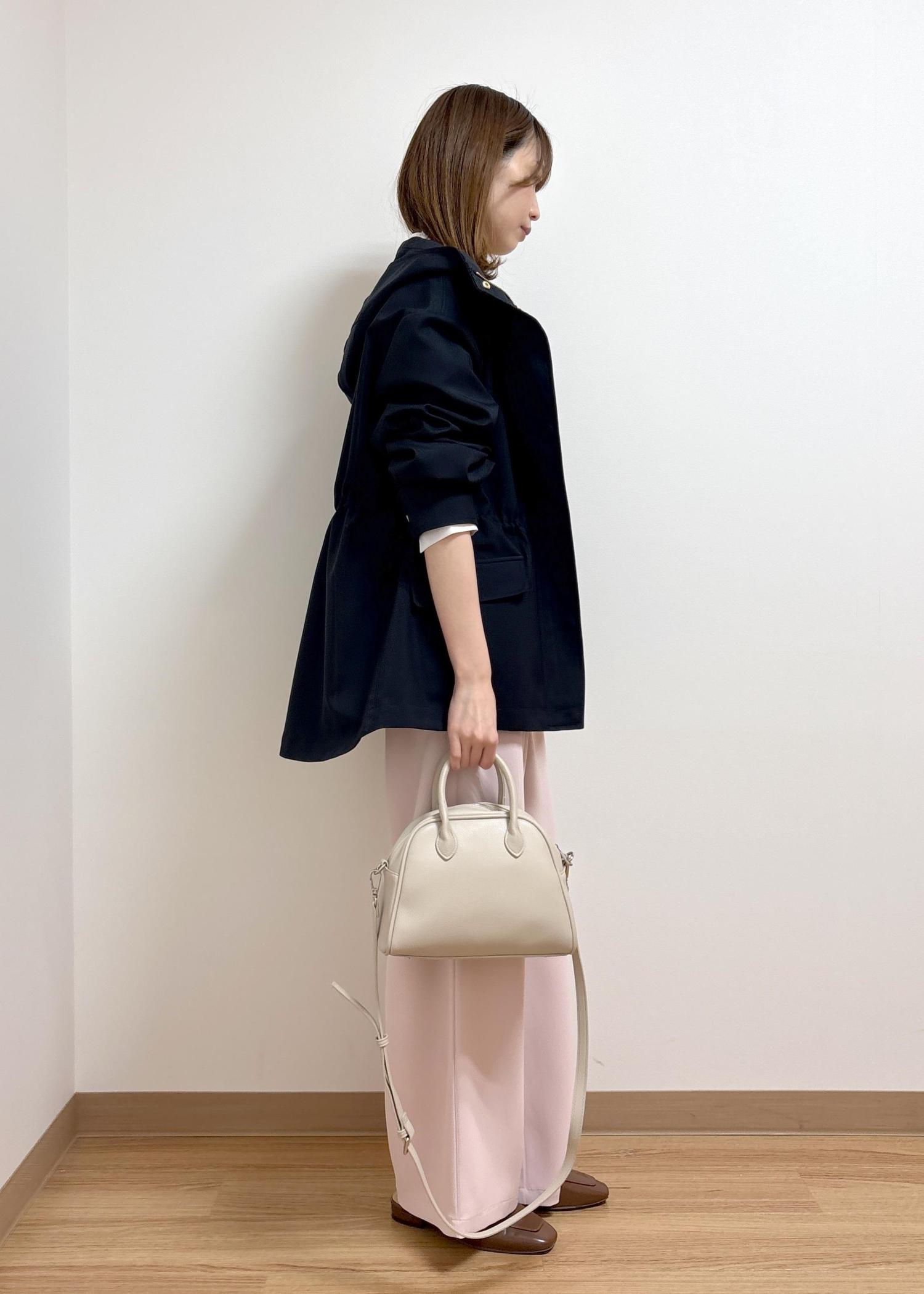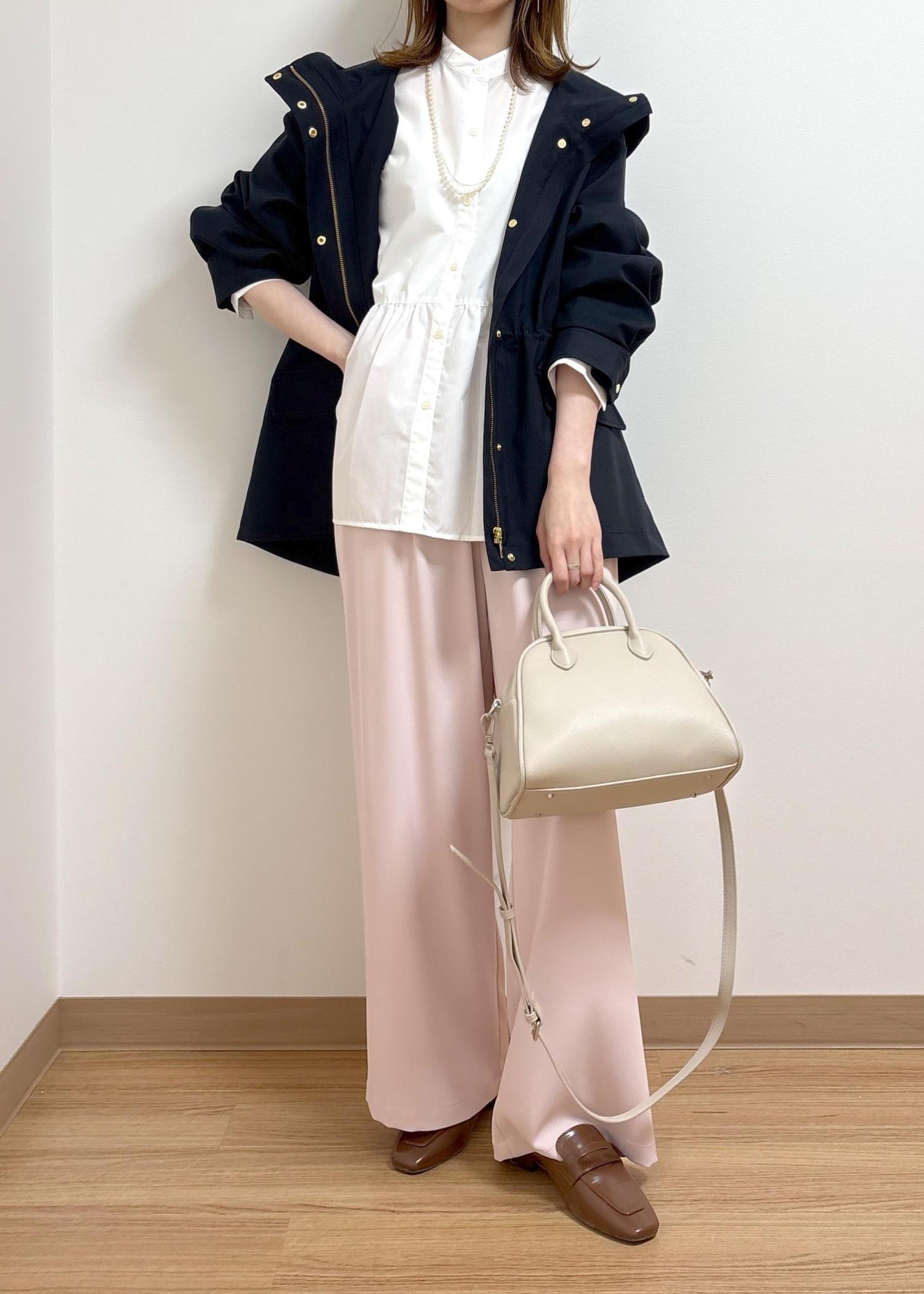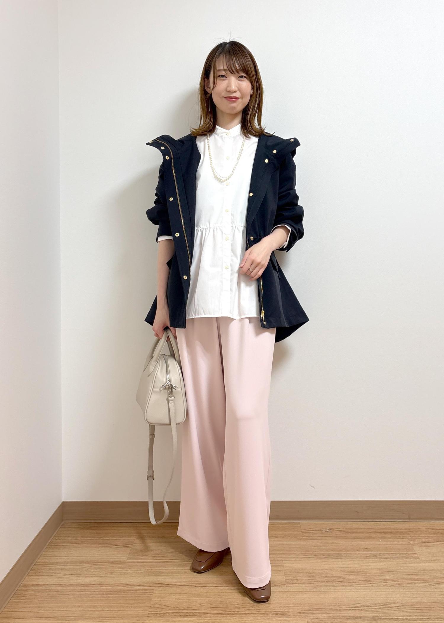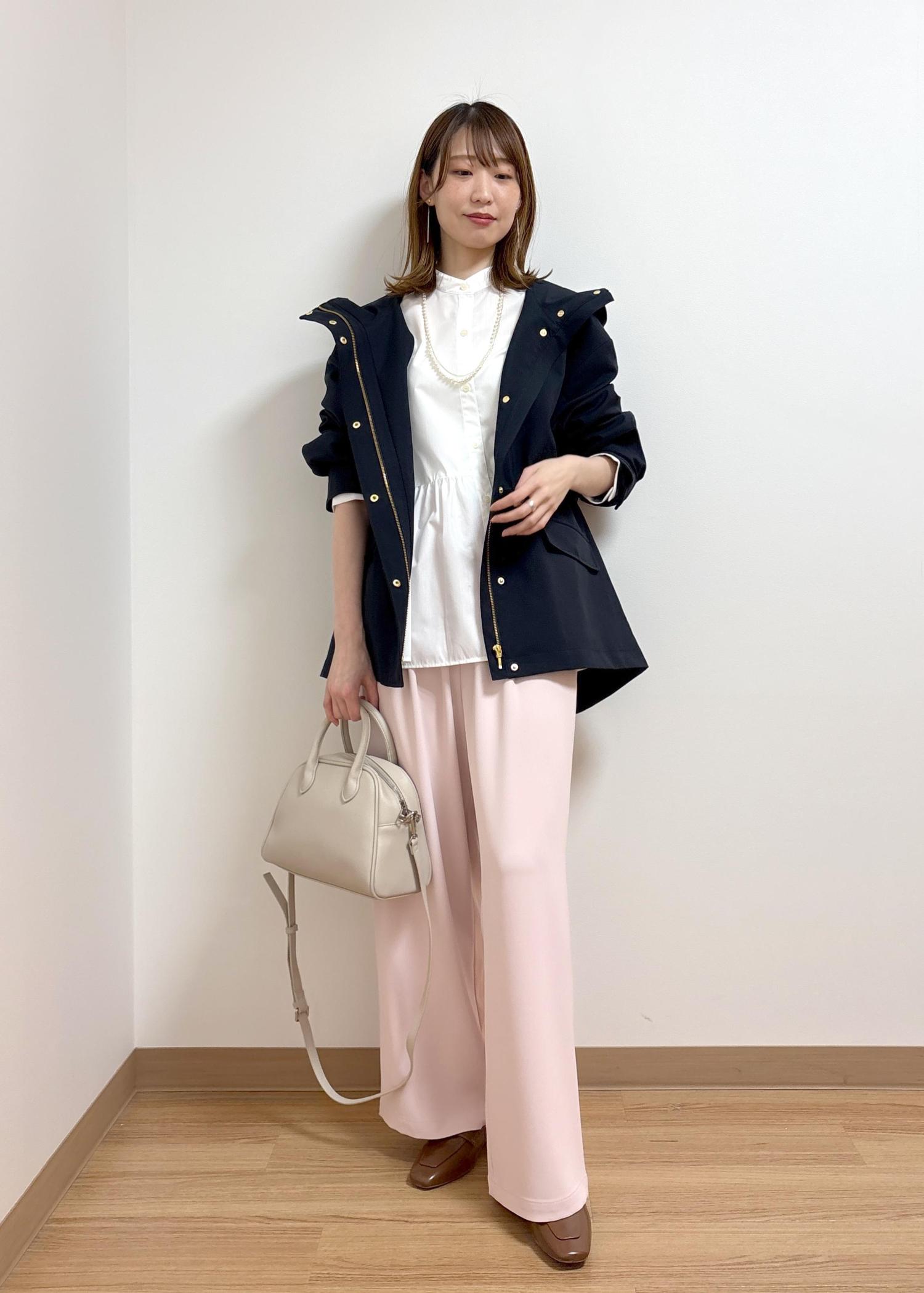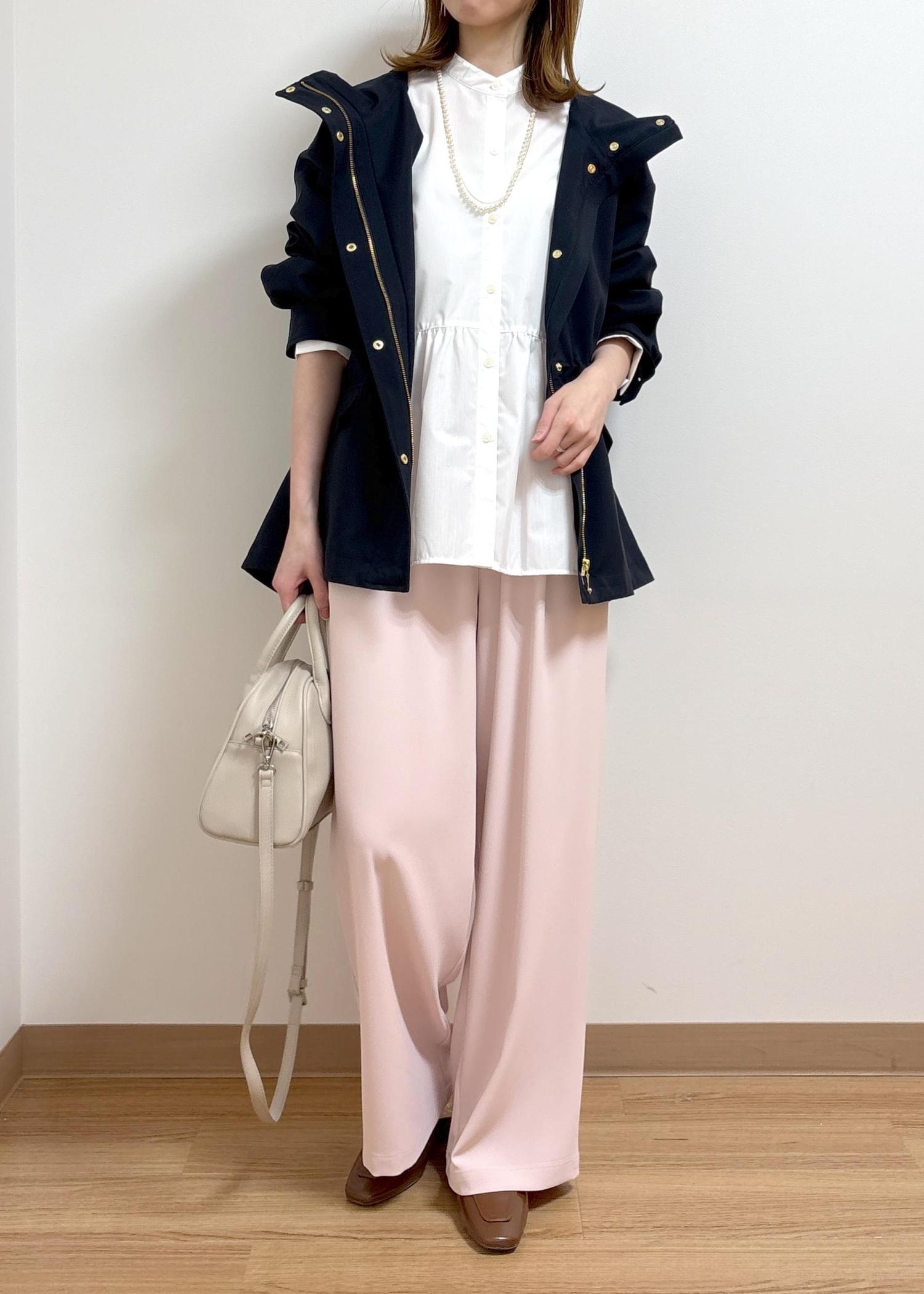 シンプルですが、淡いピンクを合わせて春らしいコーディネートにしました。