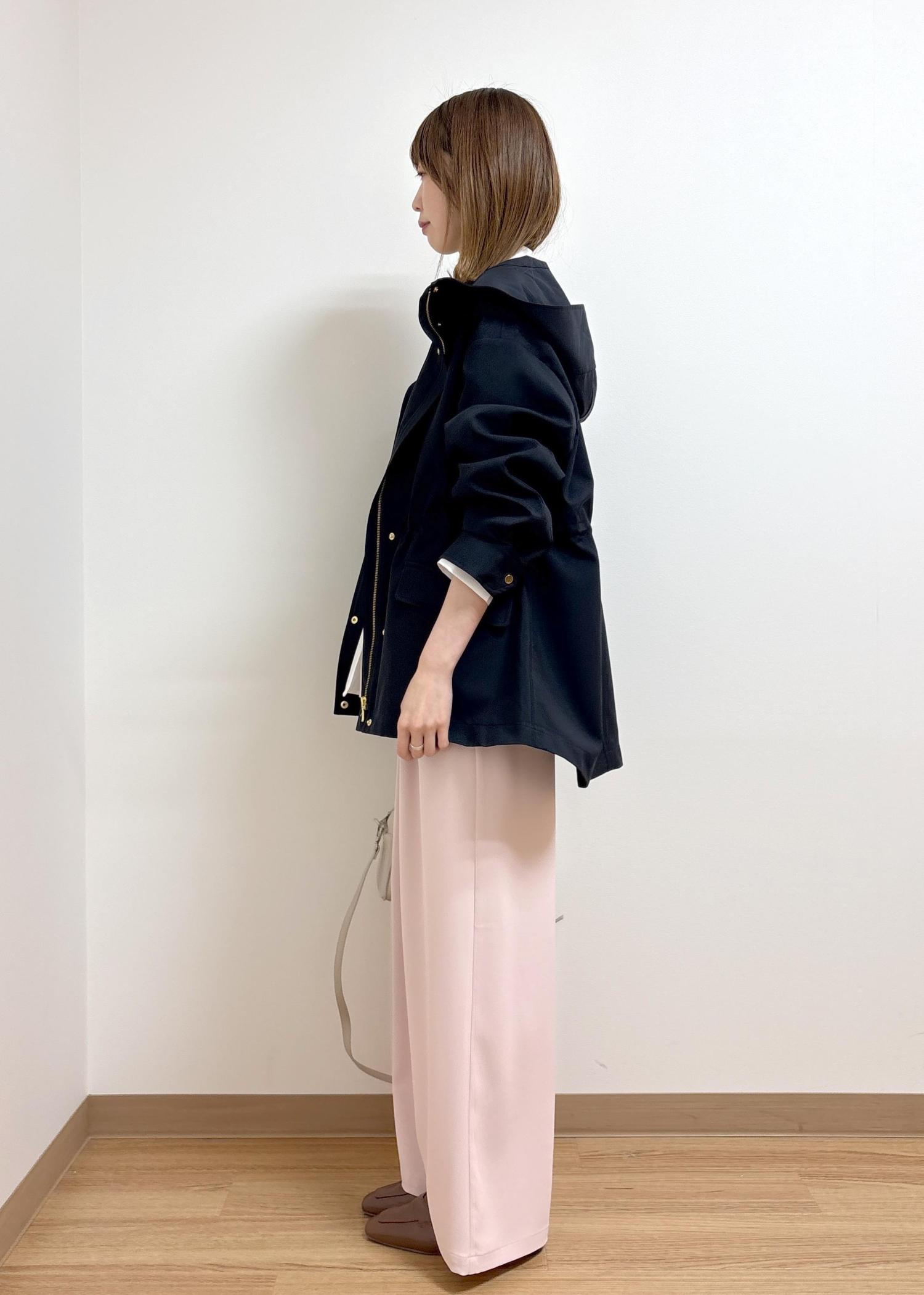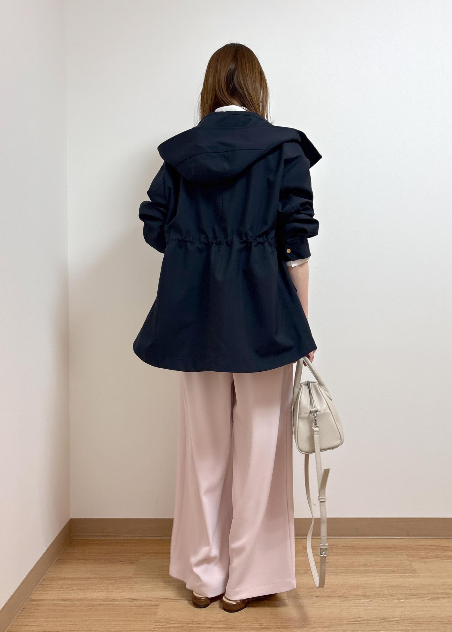 ROPÉ PICNIC【花粉ガード・撥水加工】ミドル丈マウンテンパーカ スプリングコートネイビー / 38¥9,999レビュー光沢感が少なくややマットな質感で、カジュアルすぎない印象です。身長165cmでおしりがちょうど隠れる長さです。身幅は広くゆったり目のサイズ感ですが、ウエスト部分に絞りがあるのでメリハリのあるシルエットに調節ができます。身長問わずバランスが取りやすいと思います。