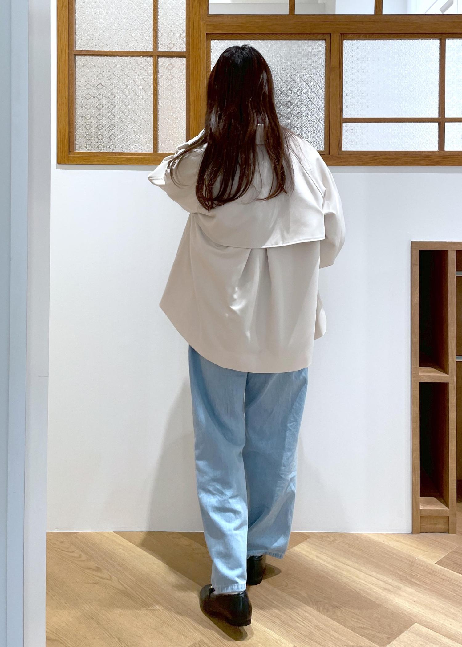 形はワイドめのシルエットで脚のラインを拾いにくいです。腰あたりからまっすぐ落ちるラインが綺麗です。 -
