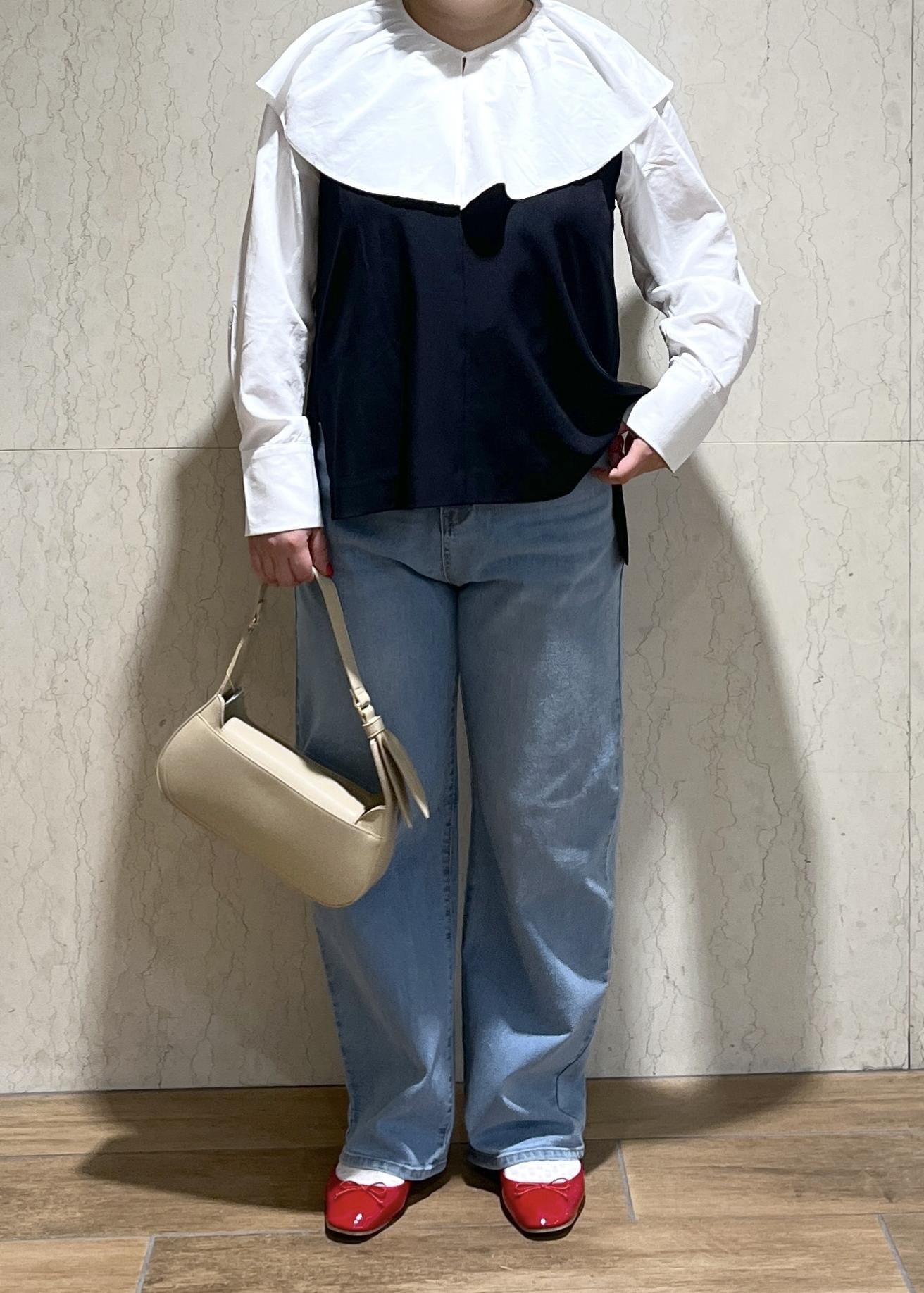 春はホワイトのブラウスにデニム合わせはかわいくておすすめです☺︎