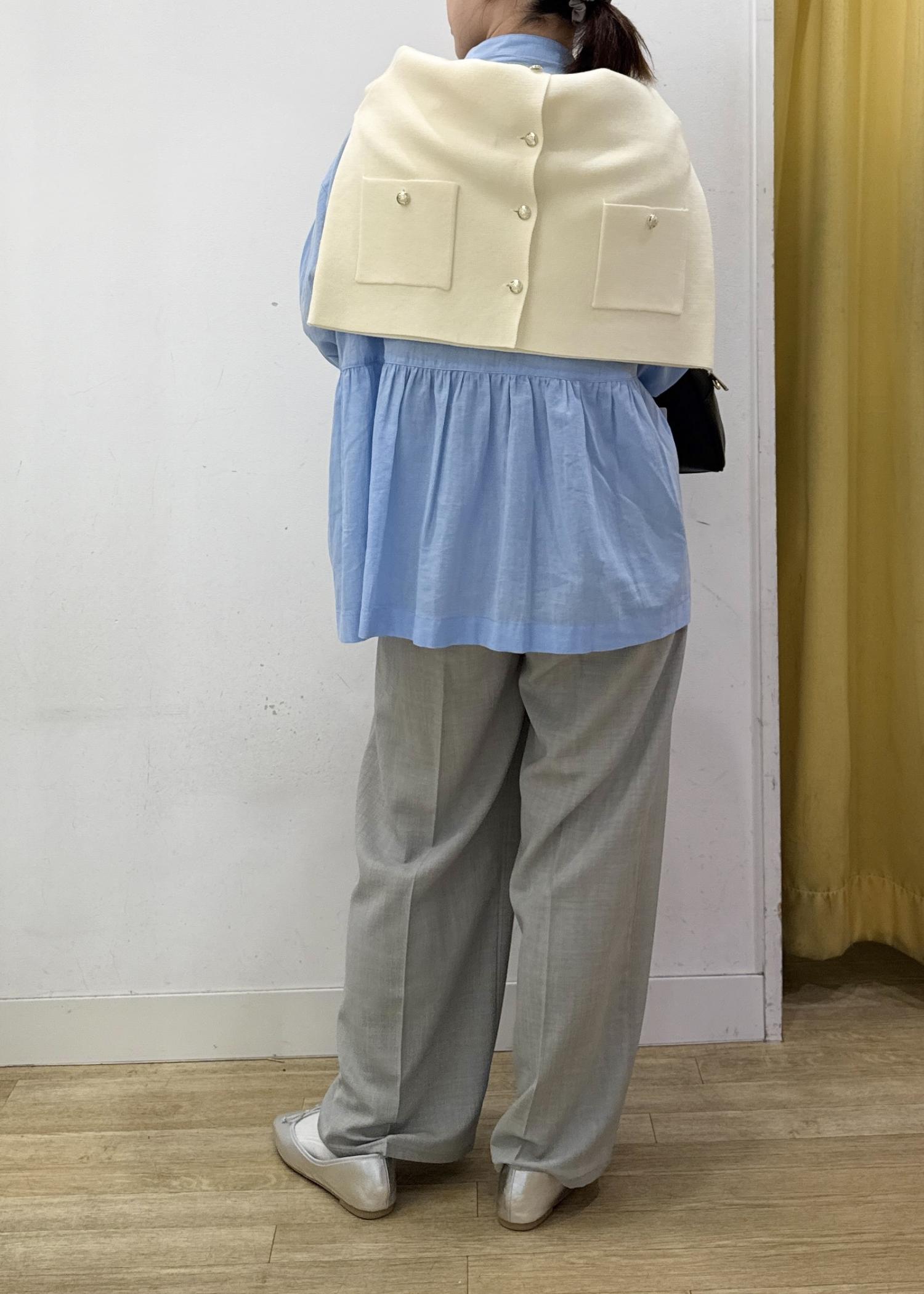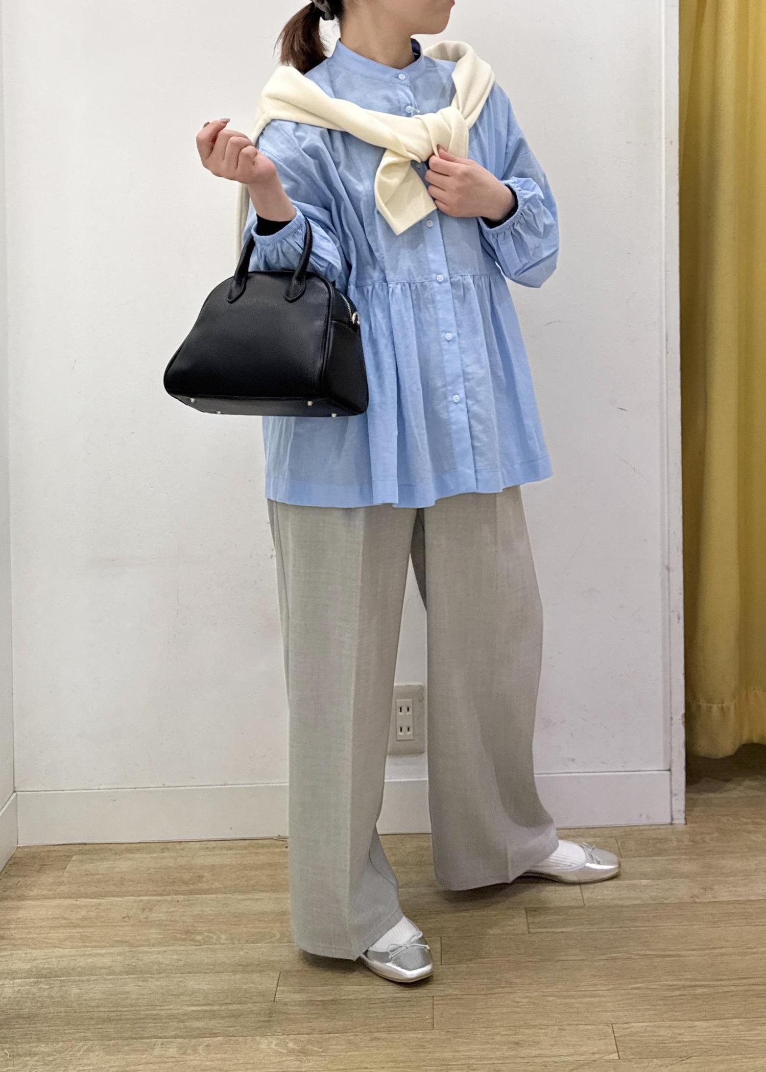体型カバーにもピッタリのペプラムシルエットのシャツは、ゆったりパンツと合わせてラクに!オシャレに!