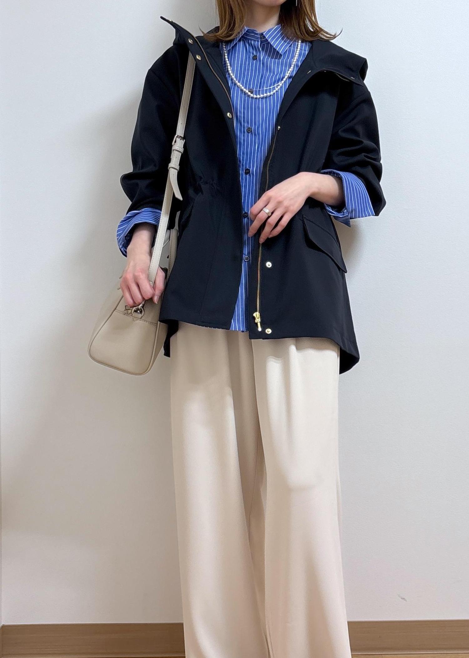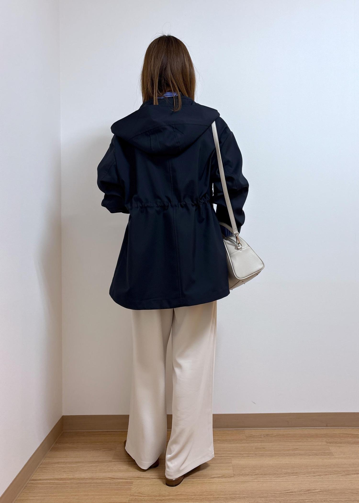 ROPÉ PICNIC【花粉ガード・撥水加工】ミドル丈マウンテンパーカ スプリングコートネイビー / 38¥9,999レビュー光沢感が少なくややマットな質感で、カジュアルすぎない印象です。身長165cmでおしりがちょうど隠れる長さです。身幅は広くゆったり目のサイズ感ですが、ウエスト部分に絞りがあるのでメリハリのあるシルエットに調節ができます。身長問わずバランスが取りやすいと思います。