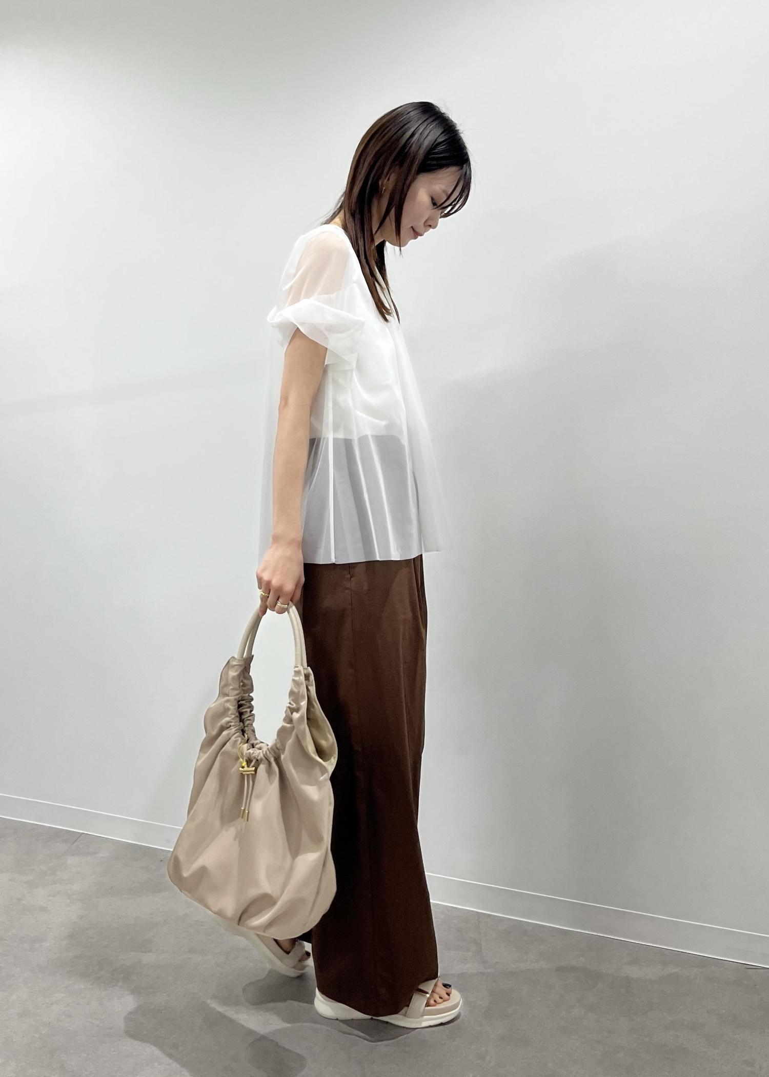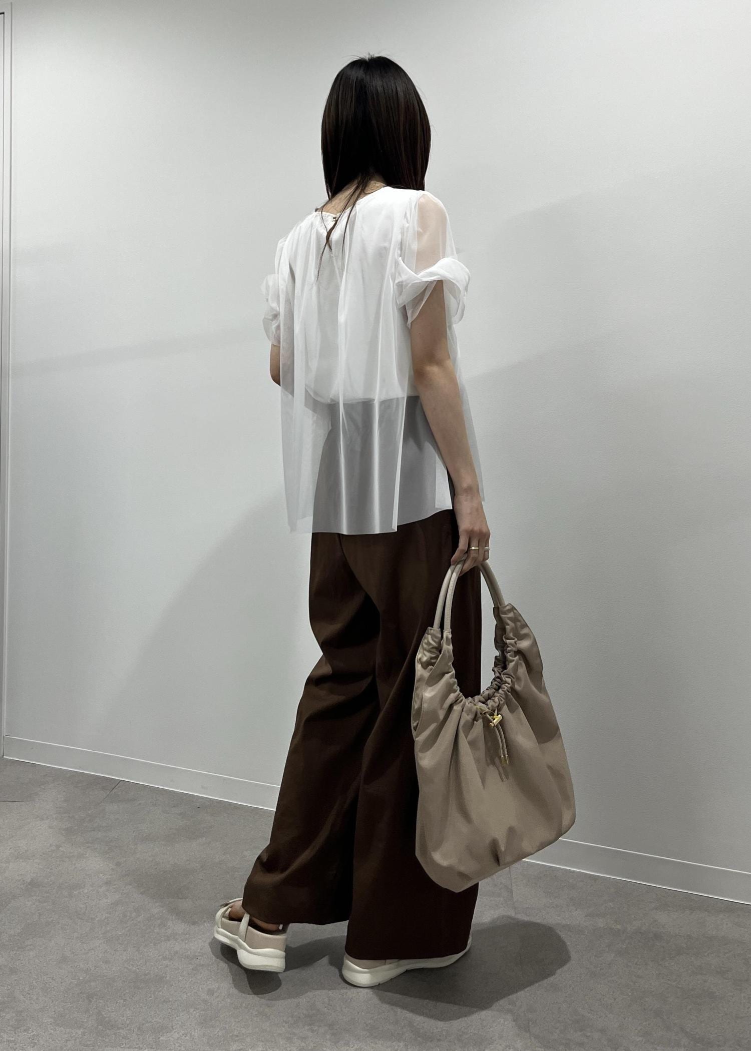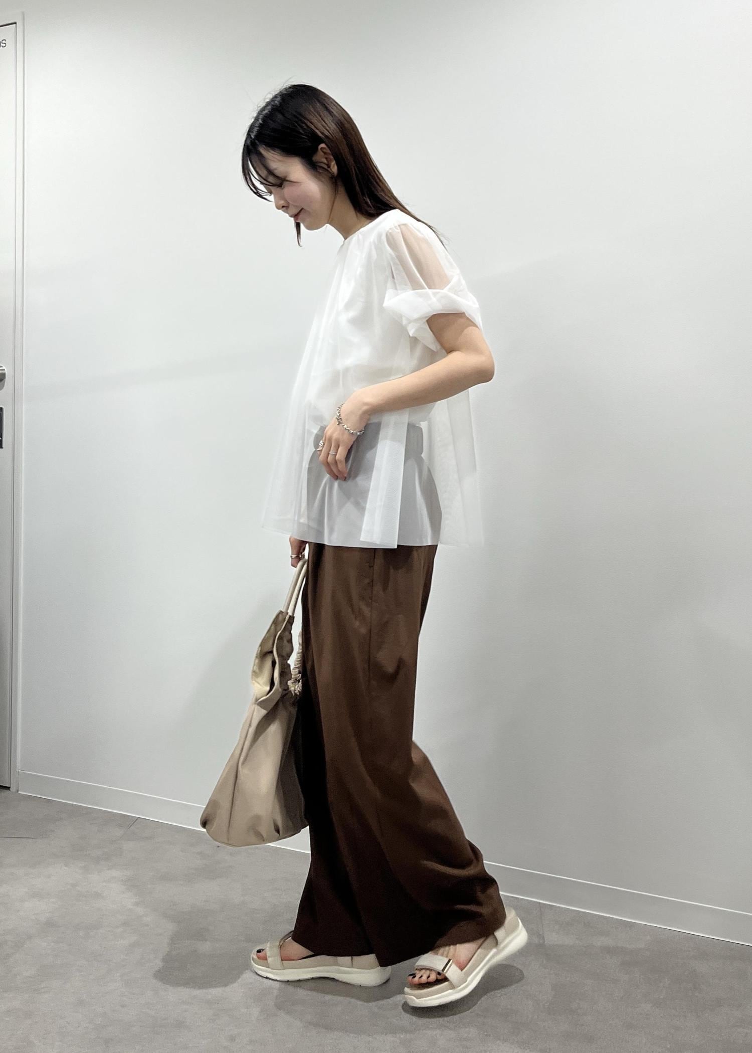 チュールがたっぷりでフェミニンなトップスなので、他のアイテムはカジュアルで統一しました。