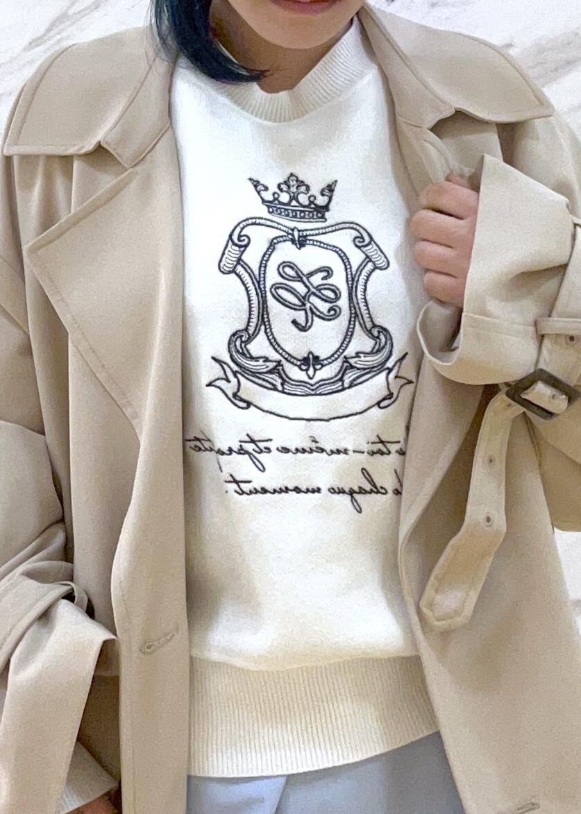 スウェットライク刺繍ニットプルオーバー/リンクコーデ