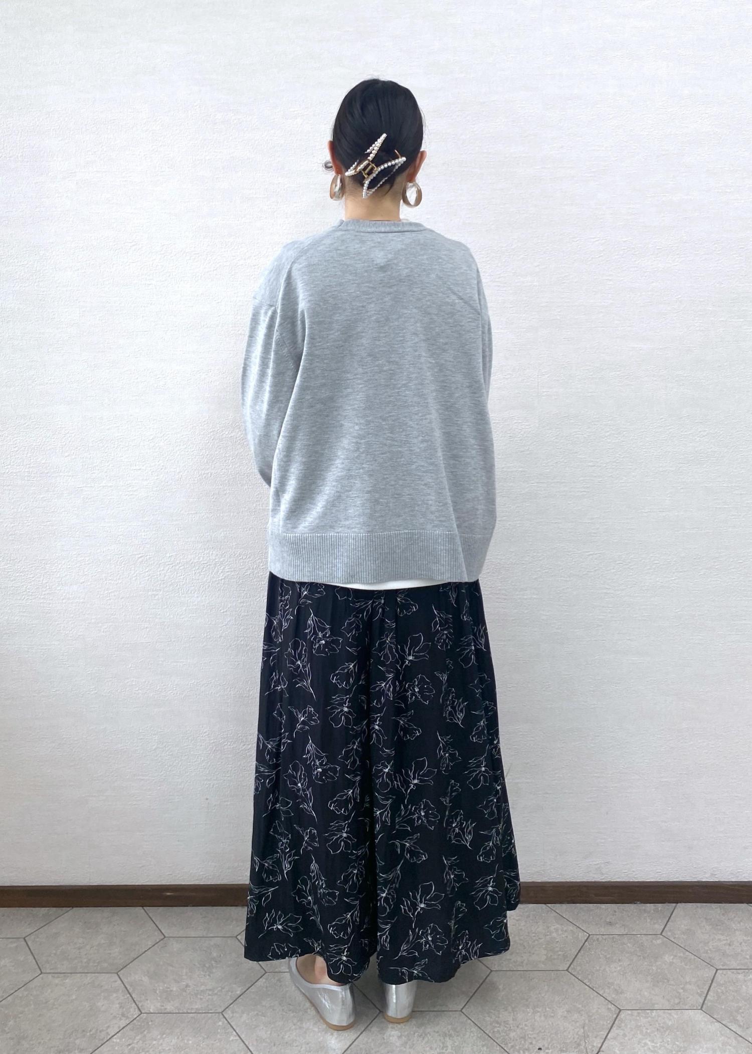 ビックシルエットのカーディガンにスカーチョを合わせた上品見えするコーディネートです。