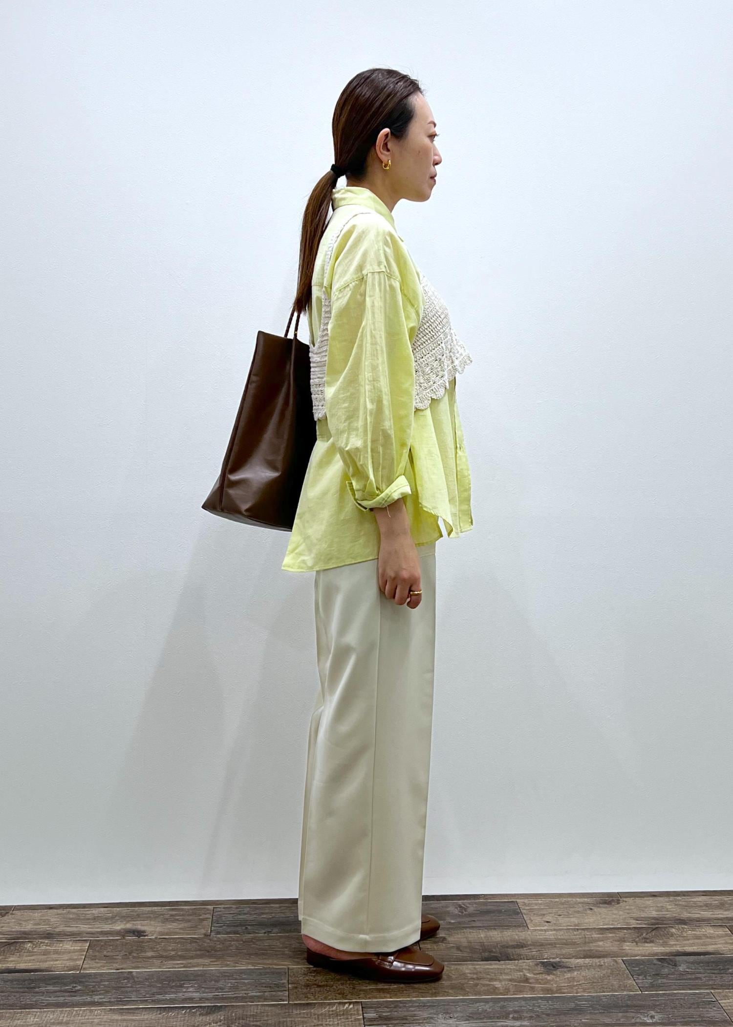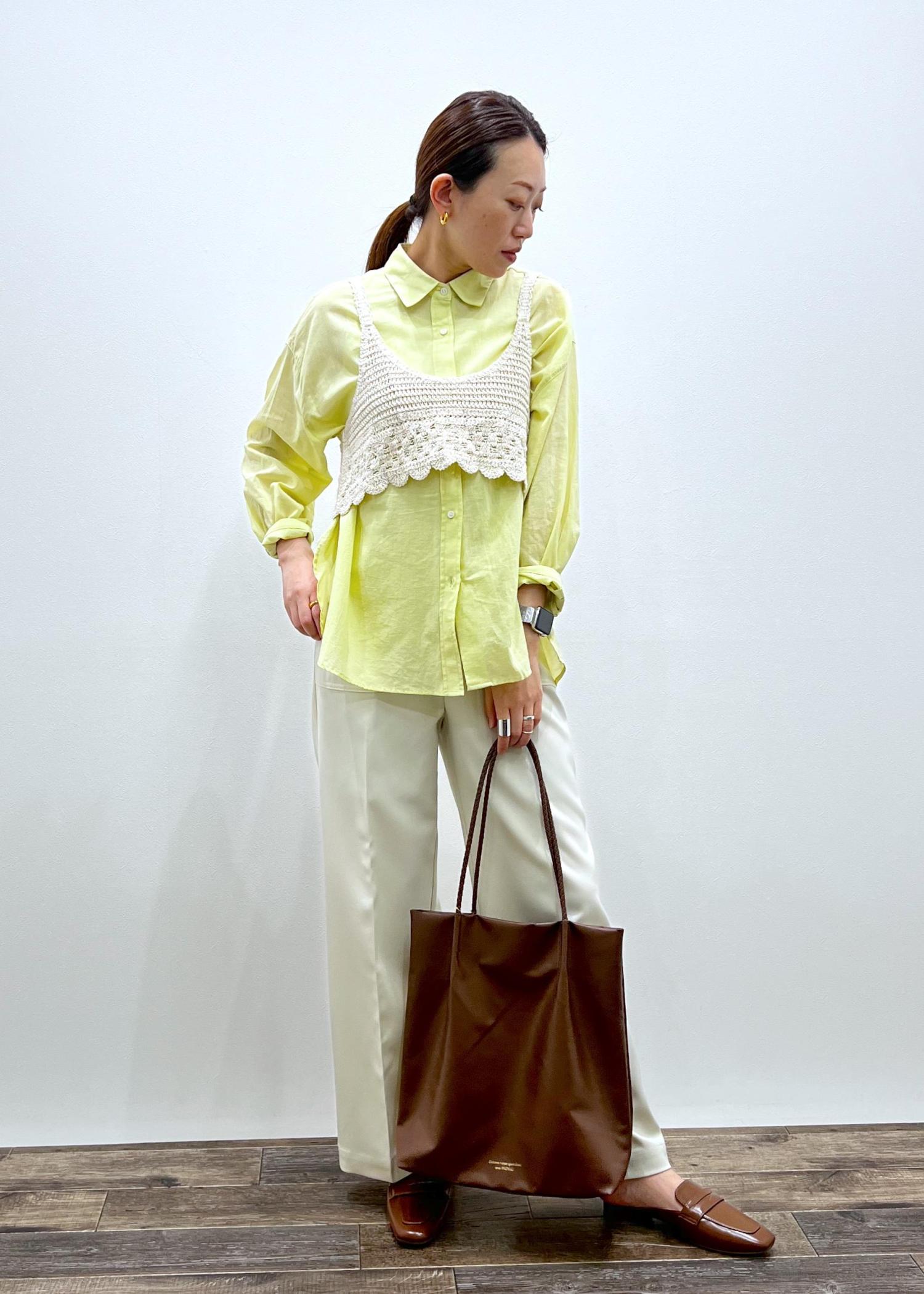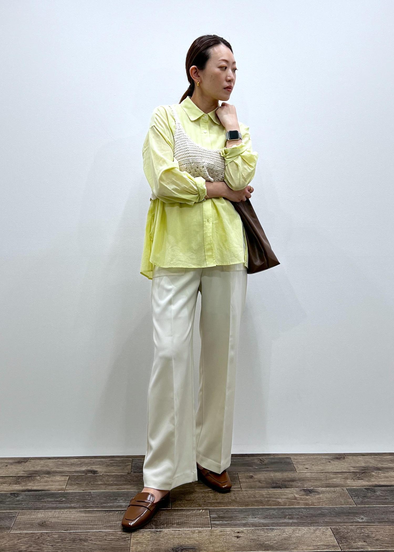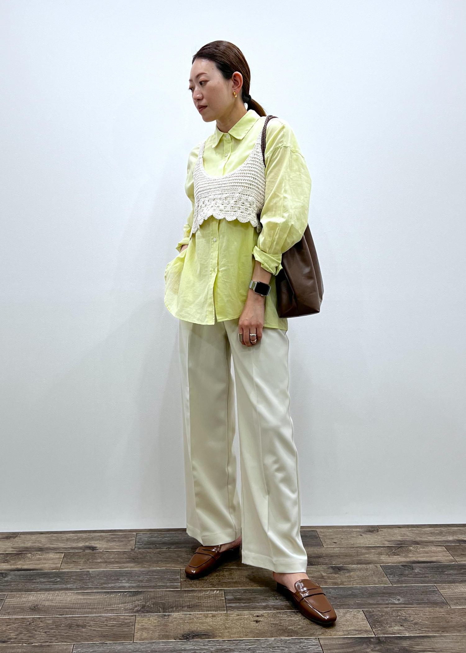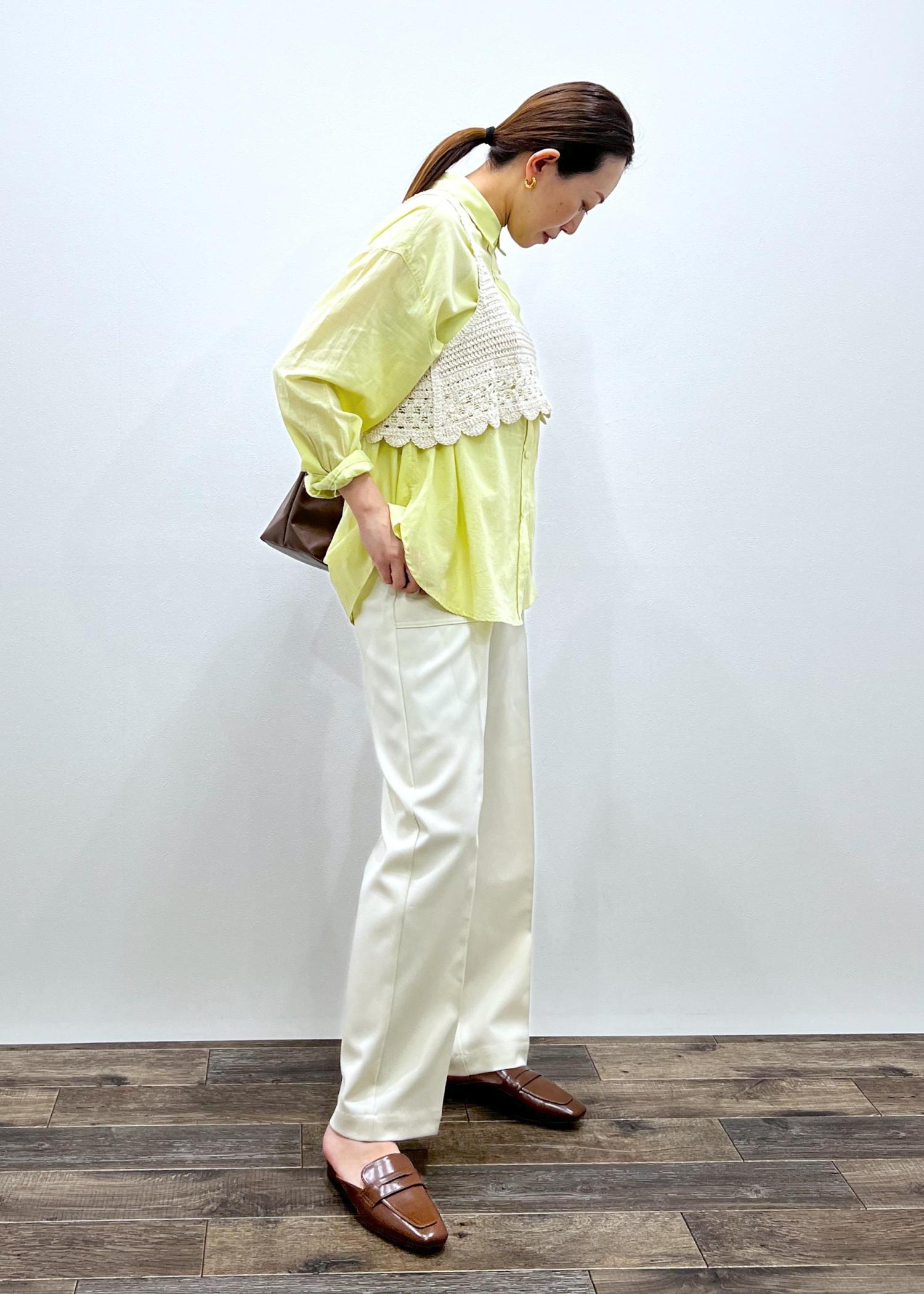 カラーがポイントで、ジレなどのレイヤードコーデがオススメです!