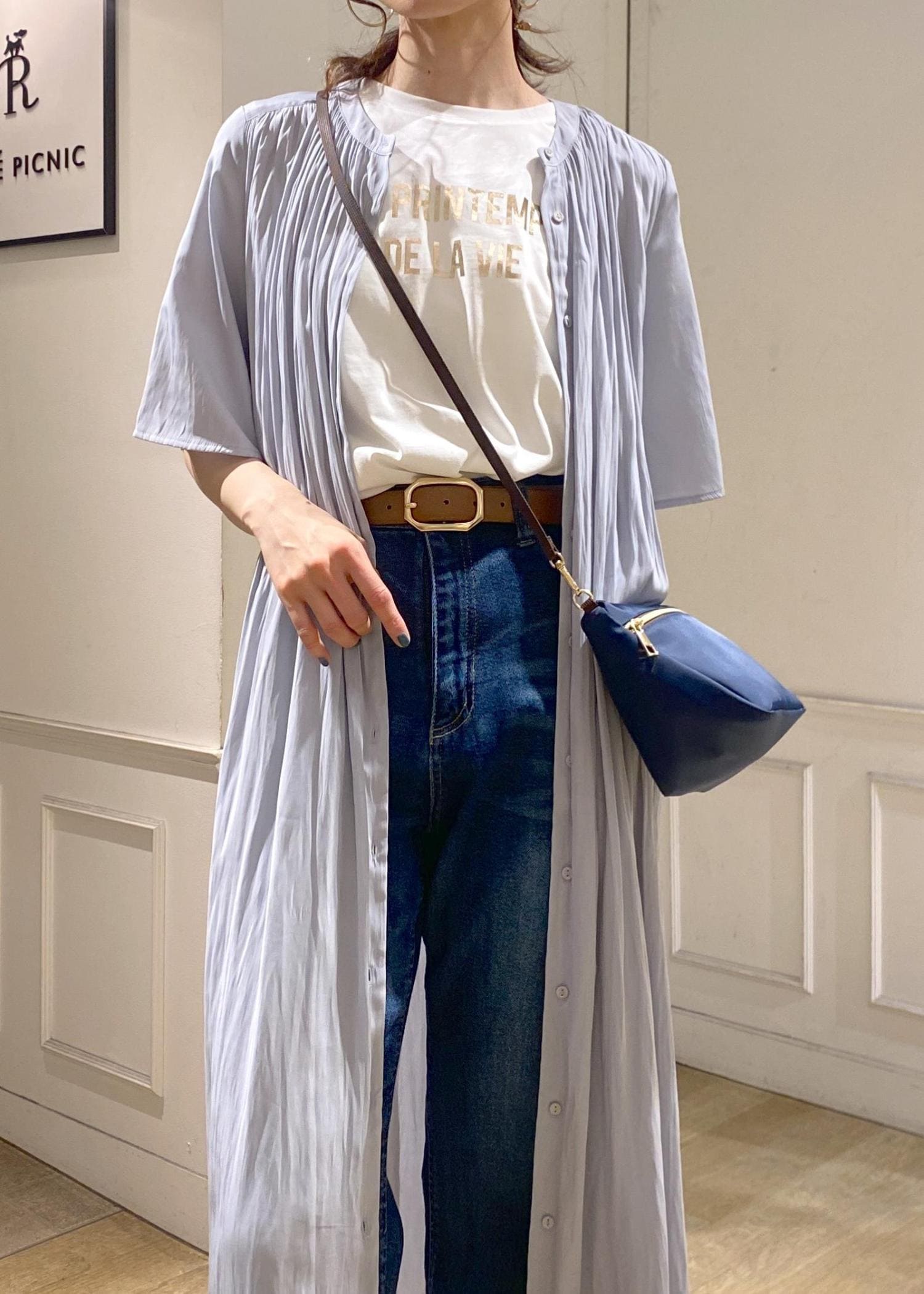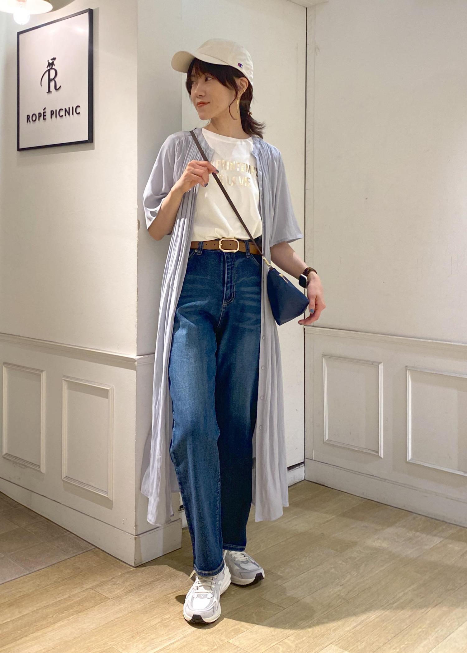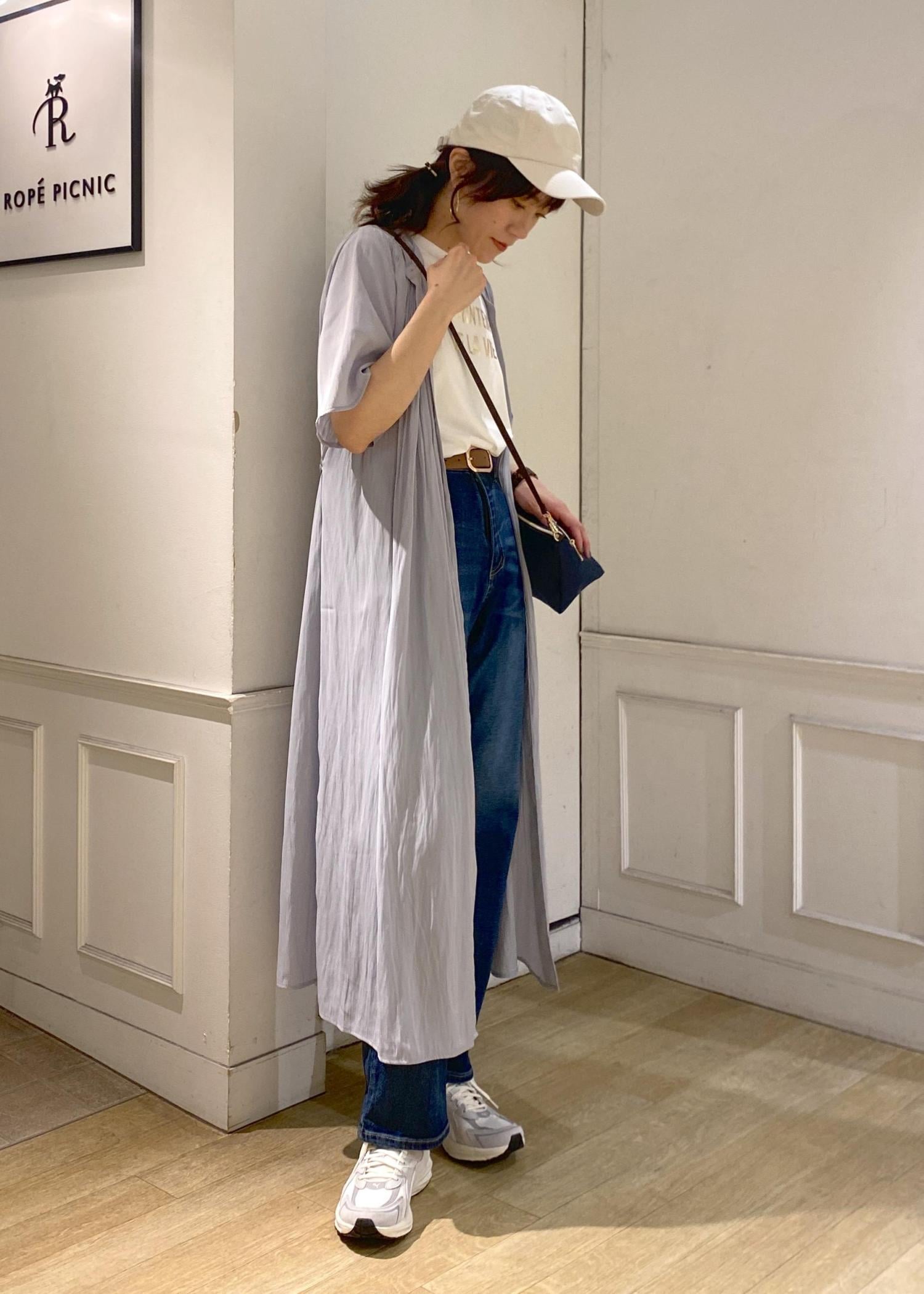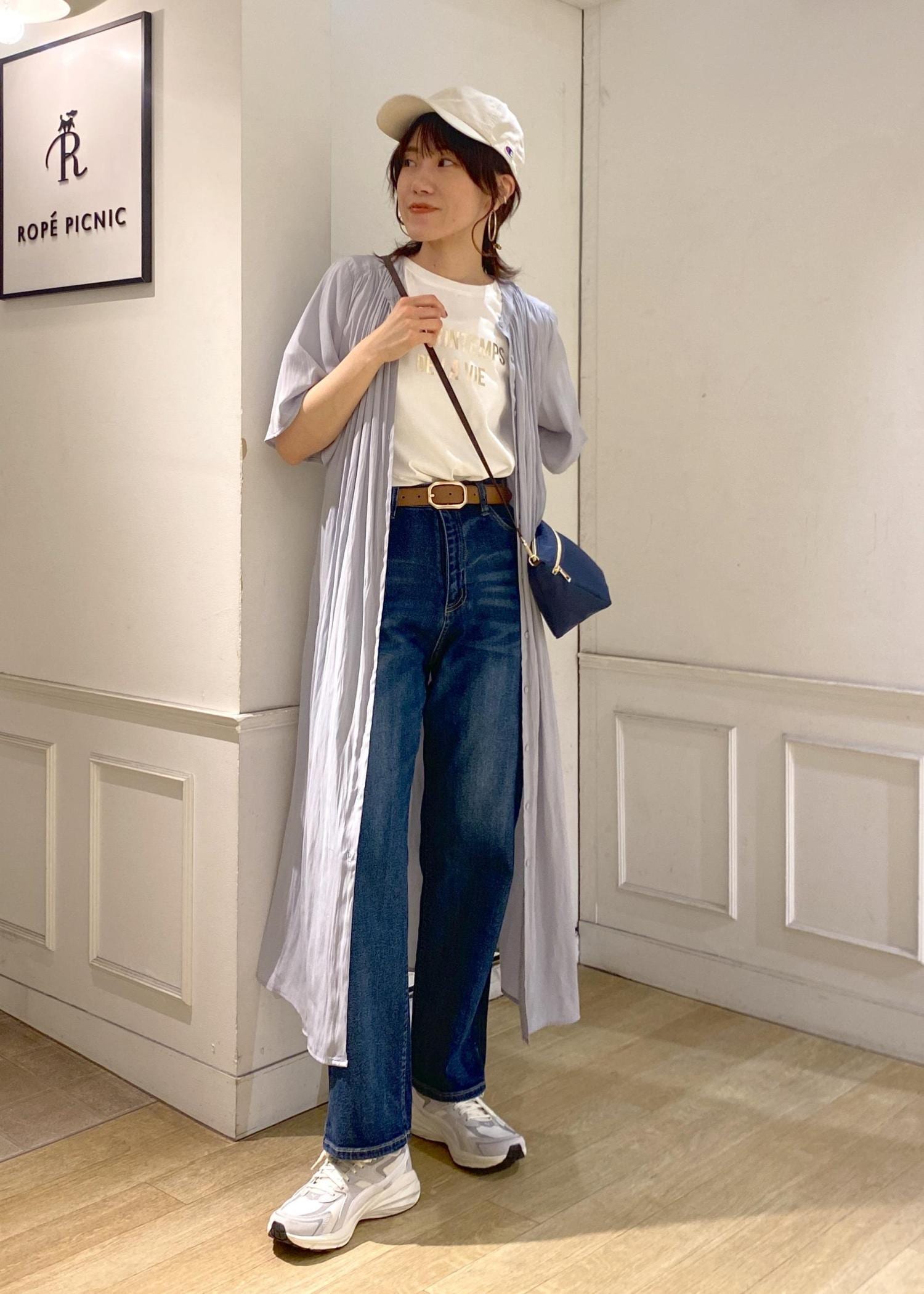 前空きの羽織りスタイルもスタイルアップ効果がありおすすめです。
