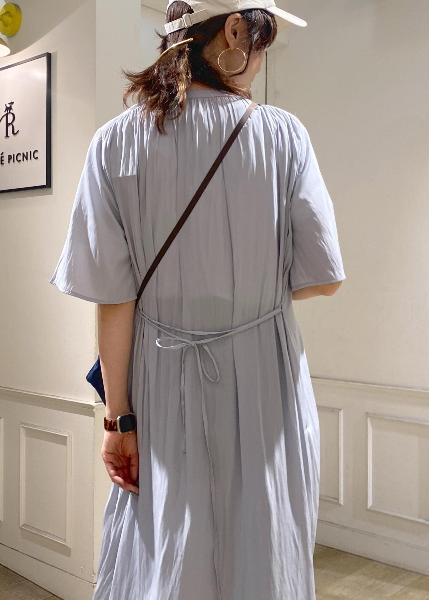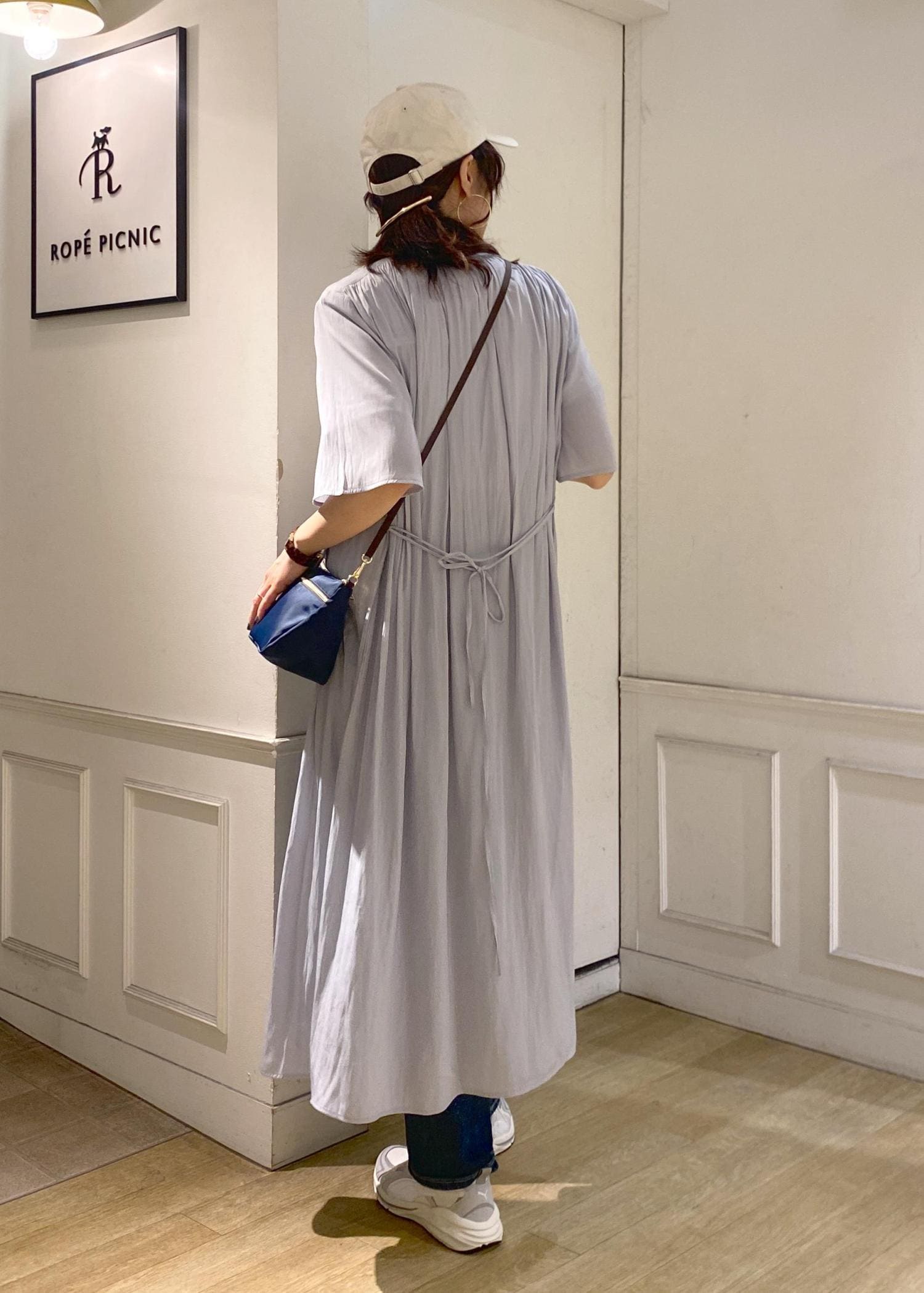 アウトレットROPÉ PICNIC着丈選べる/接触冷感・UVカット/割繊ハーフスリーブワンピースサックス / 38T¥3,597レビューたっぷりギャザーのゆったりシルエット。