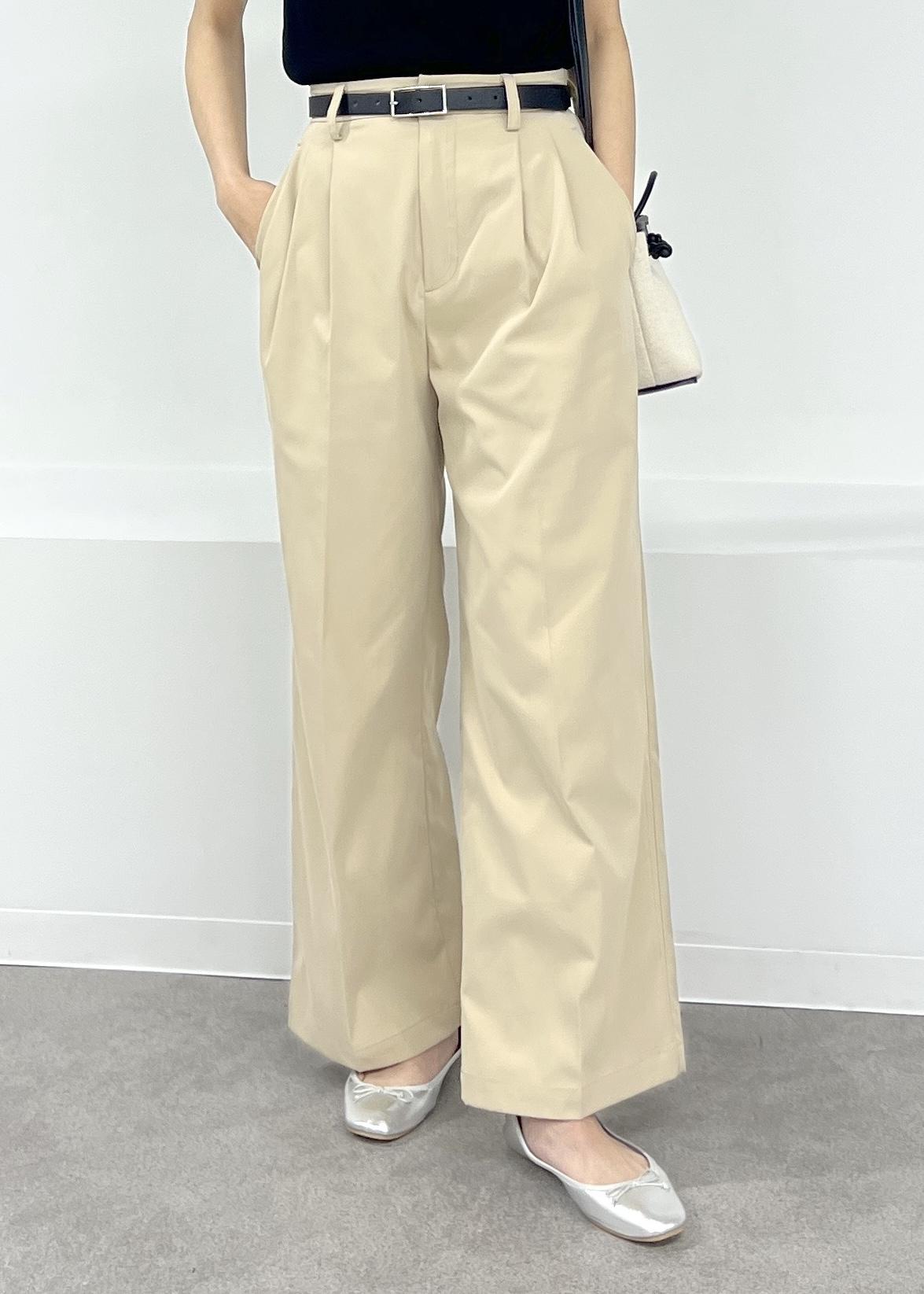 ウエストにタックが入っているので、腰回りにもほどよくゆとりがあり履きやすいです。 -