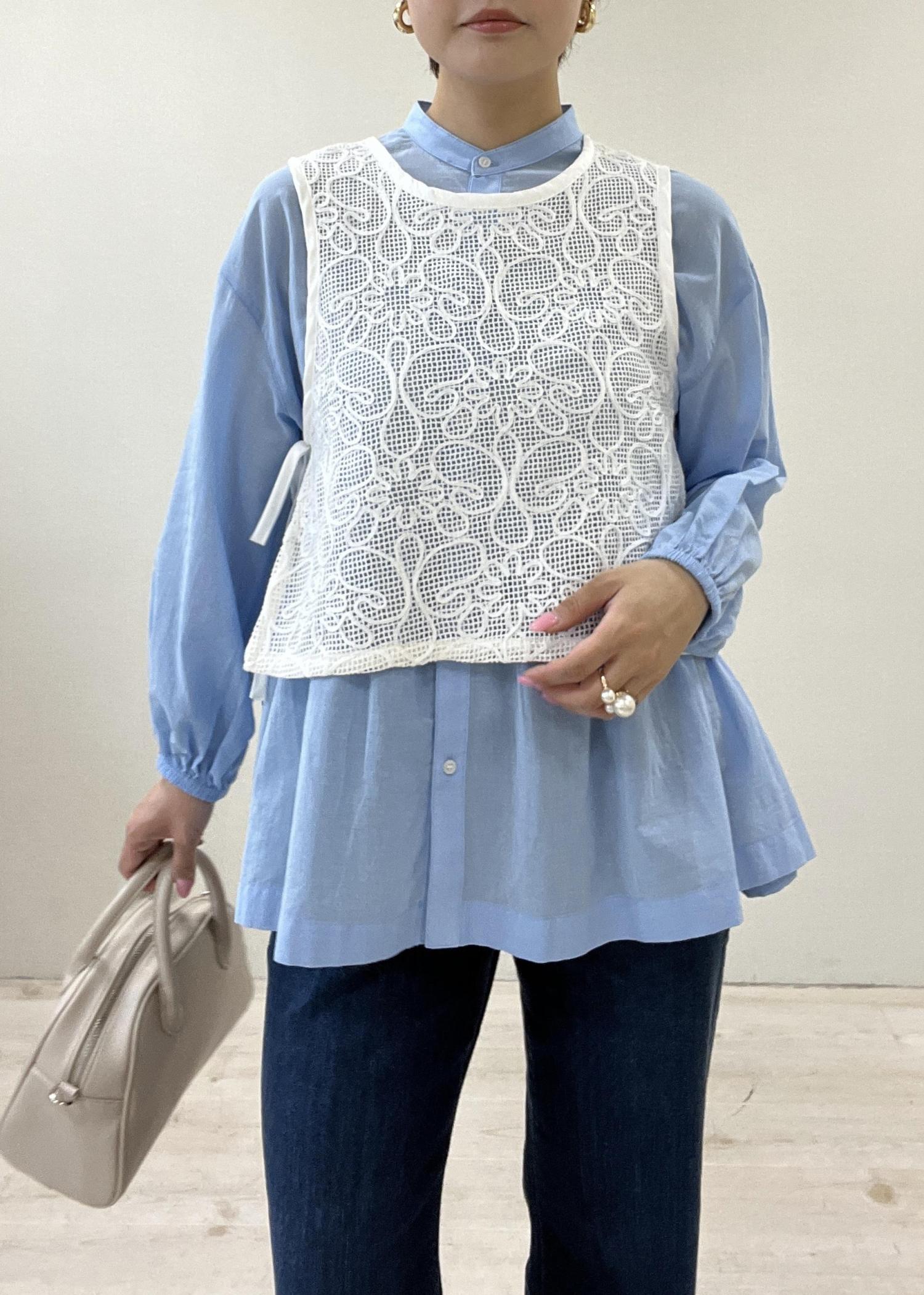 アウトレットROPÉ PICNIC【接触冷感・通気性】お着軽シャツシリーズ/綿ボイルペプラムシャツサックス / 38¥2,396レビュー体のラインを拾わないゆとりのあるシルエット。