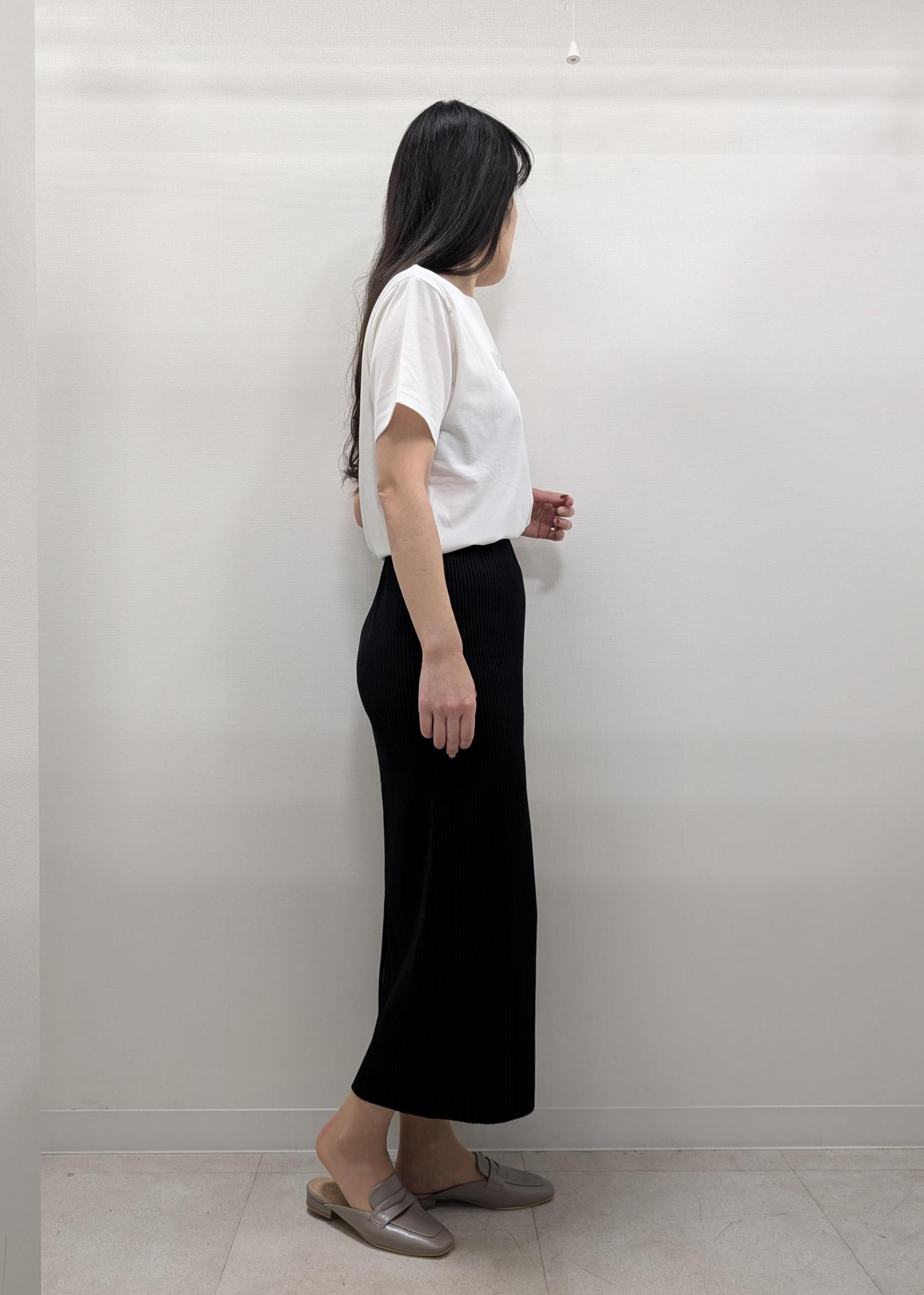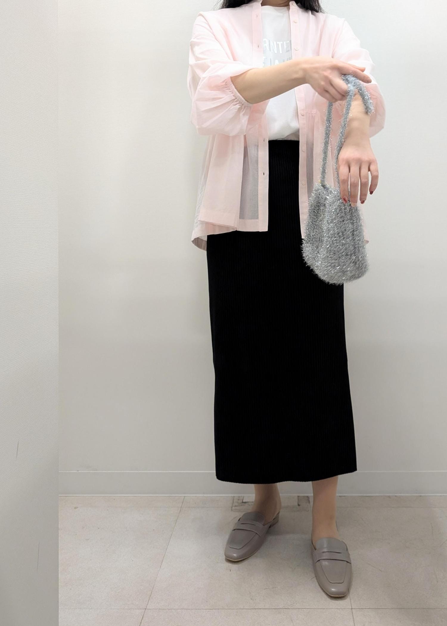 タイトスカートがカットソー生地なので長めのシャツでお尻周りもカバー出来る安心コーデです!