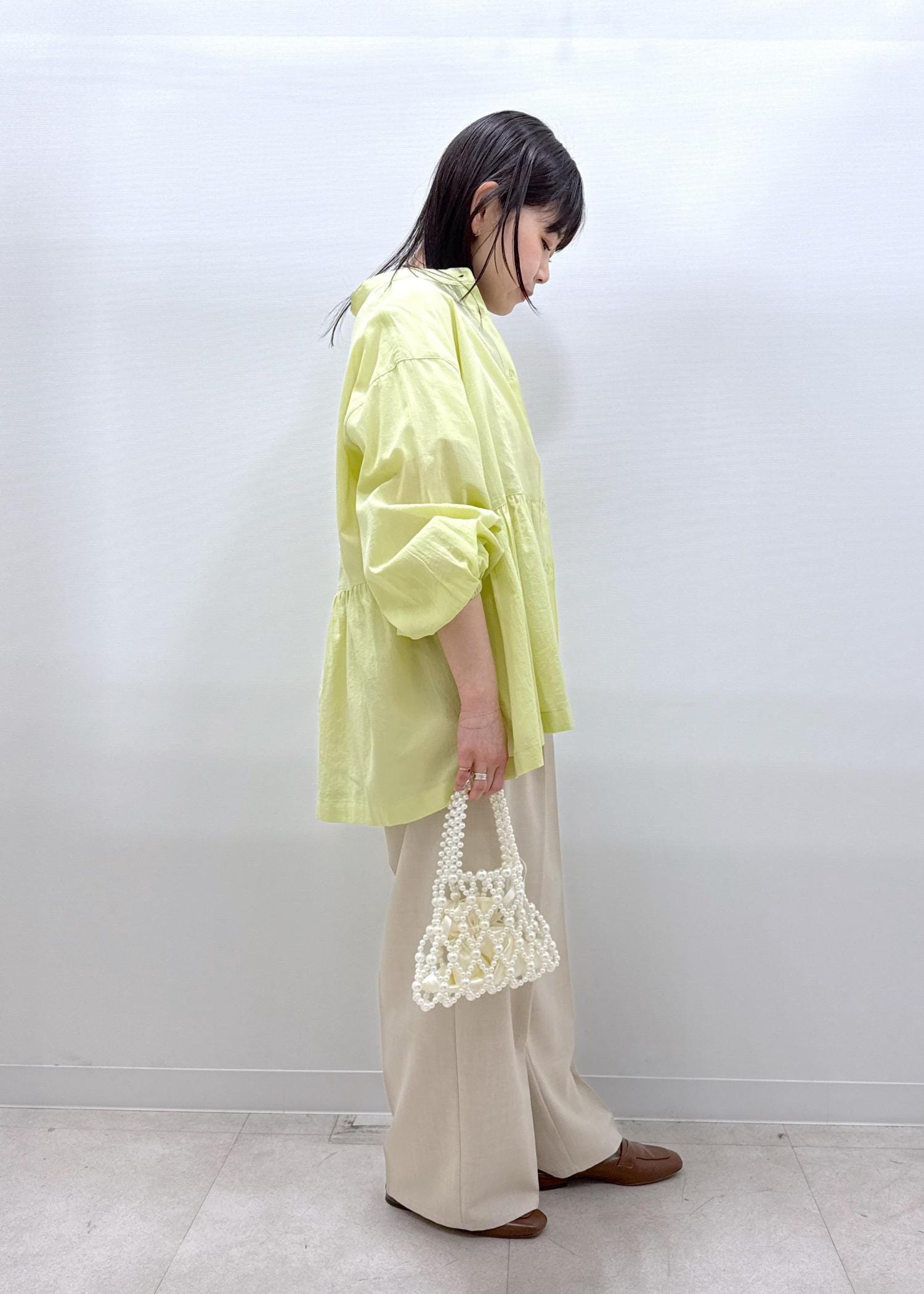 コンパクトな形なので、私はTシャツに合わせましたが、シャツやワンピースと合わせてもキレイです。 -
