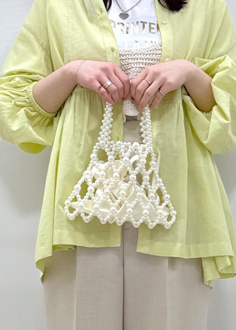 全体的にパールがちりばめてあるので、ドレスアップやカジュアルどちらでもお使いいただきやすいです。