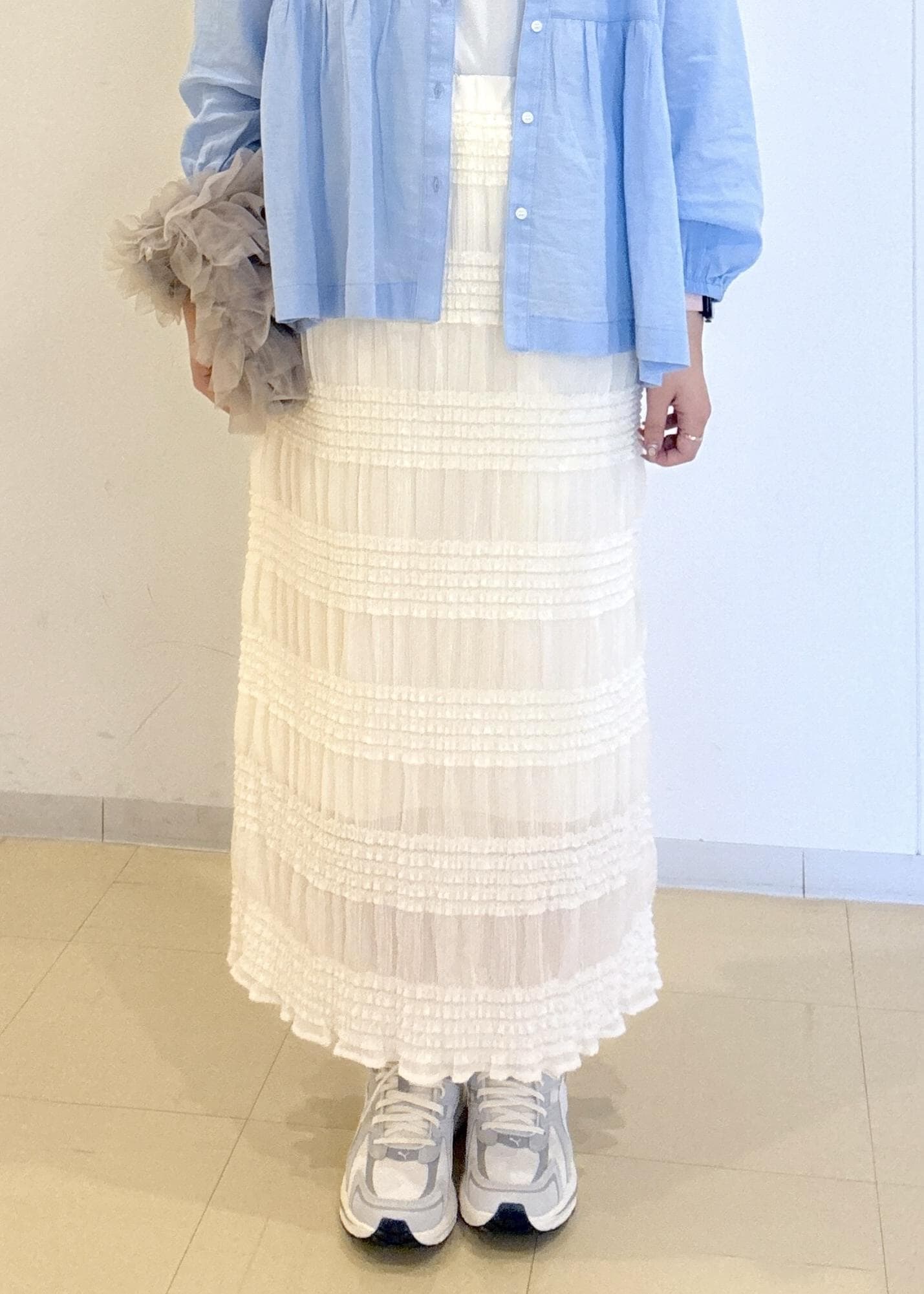 透け感のある生地なので、タンクトップやTシャツと重ねるのがおすすめ◎