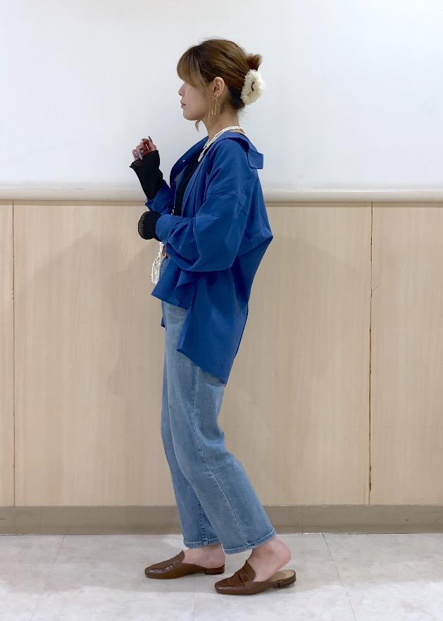 ブルーのシャツを羽織として使った大人っぽいカジュアルコーディネートです。