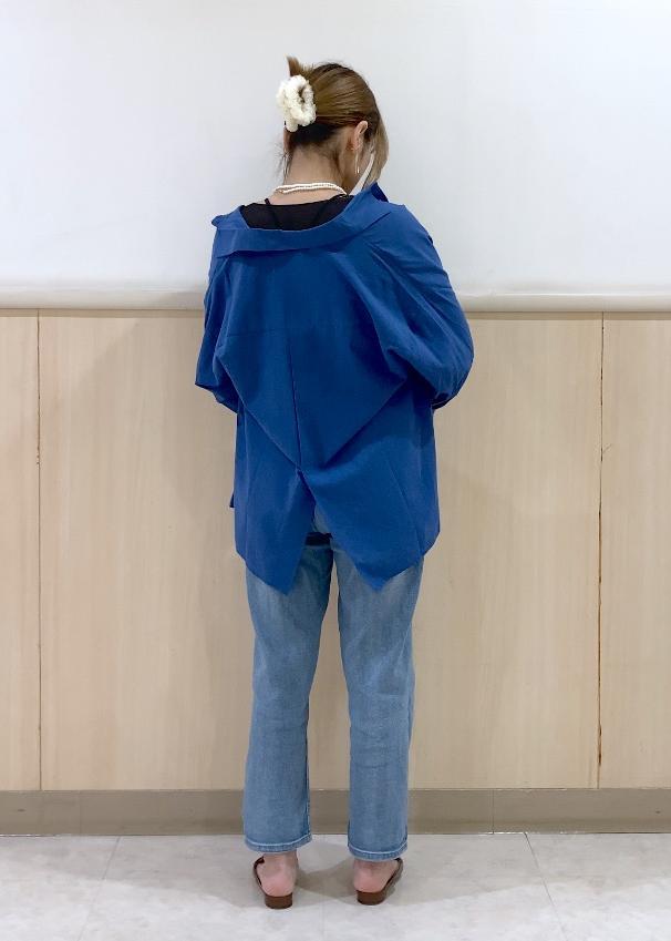 ゆったりとしたサイズ感でおしりにかぶるくらいの長めの着丈ですが、バックタックのシルエットなので重たくならずに着用が可能です! -