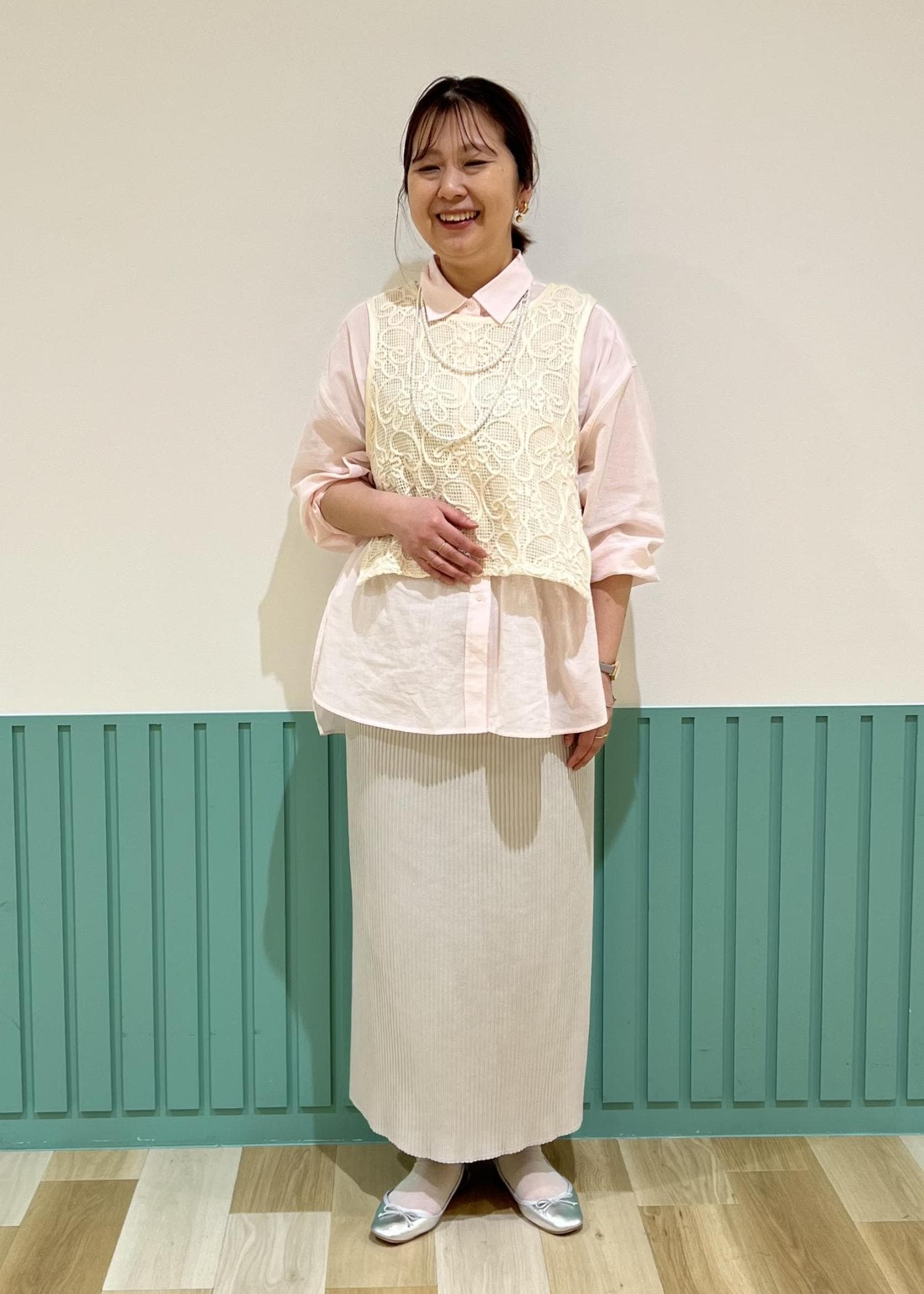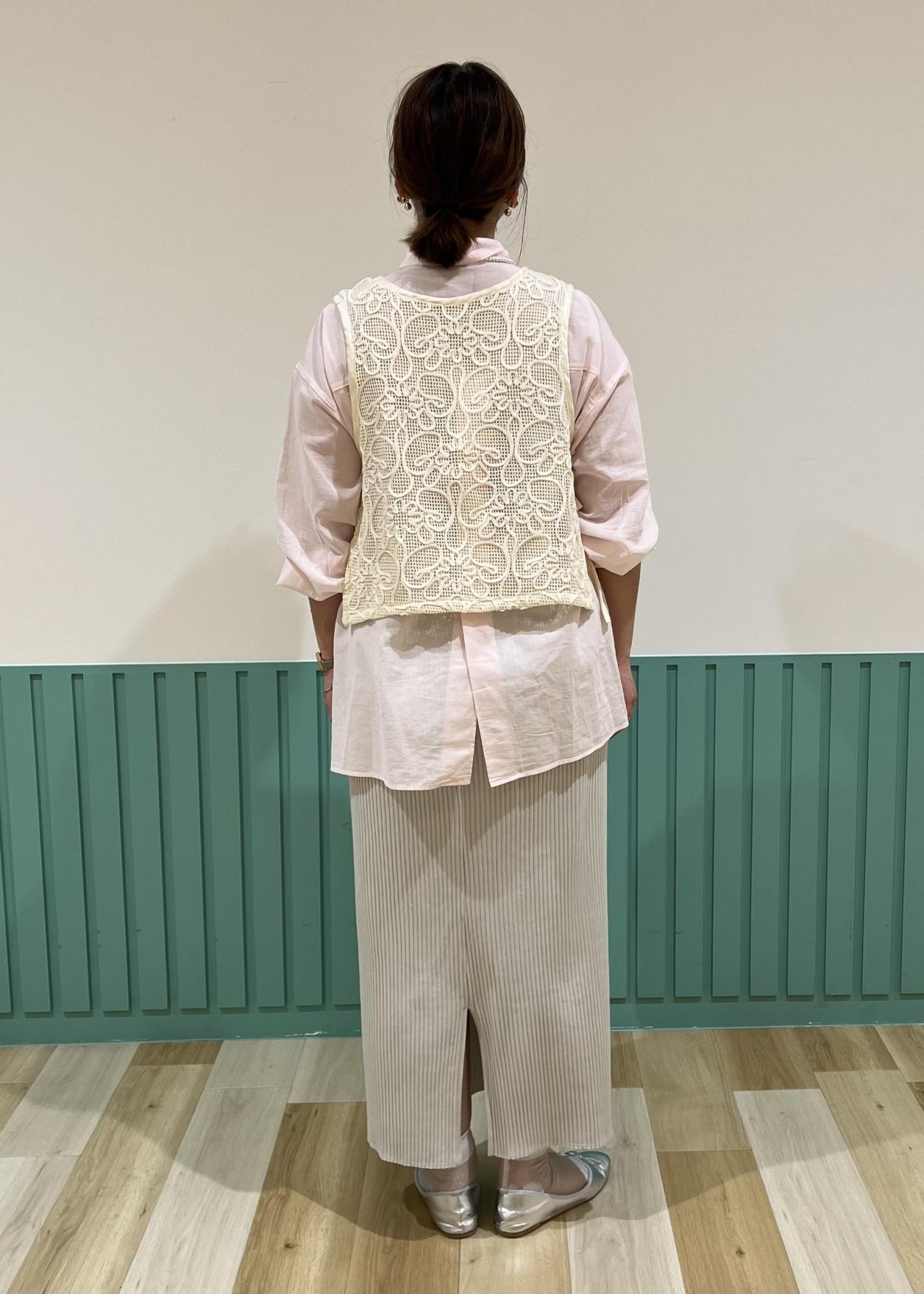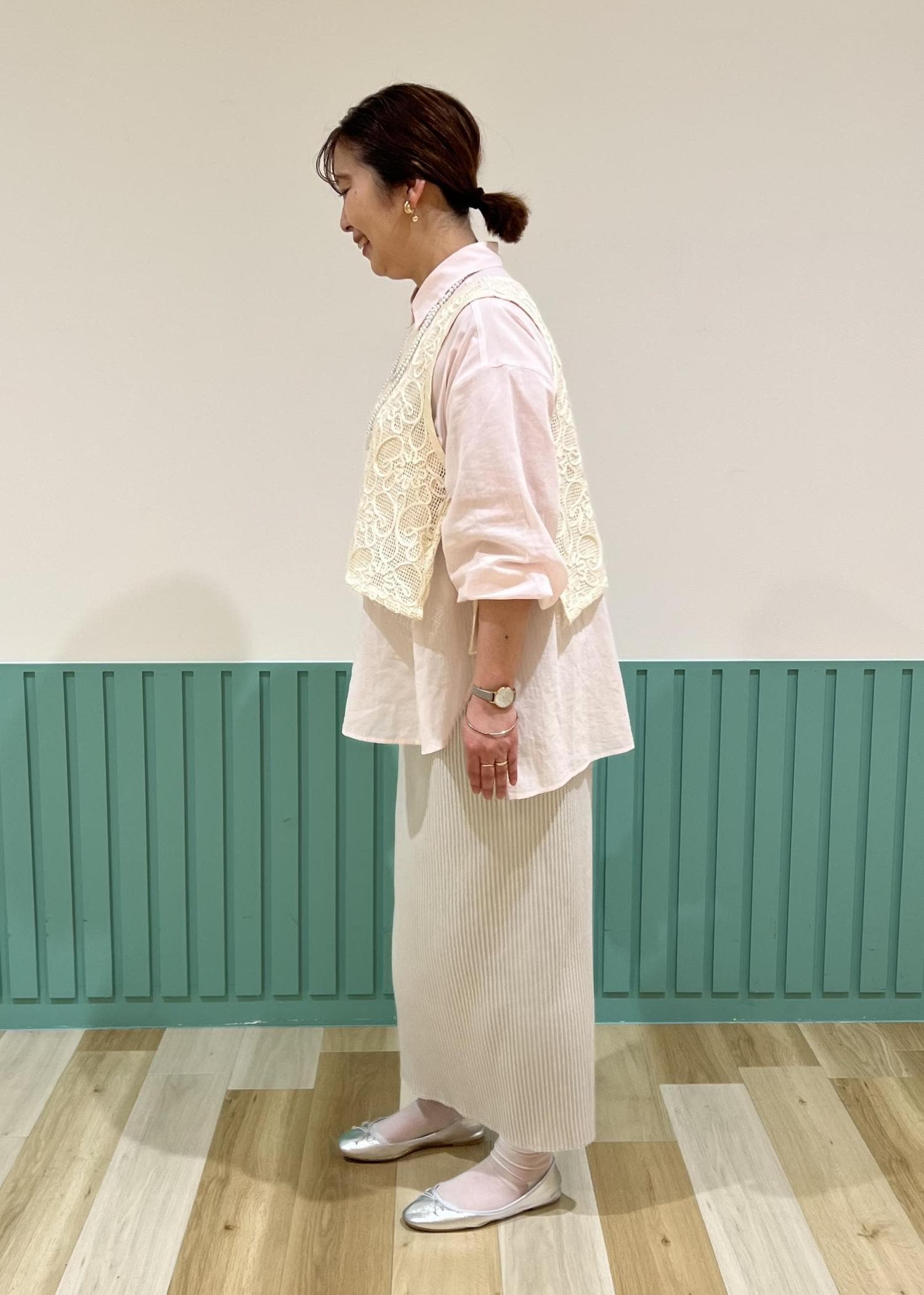 身体のラインができずシャツやカットソーに重ねても安心して着れるシルエットでした。バテンレースが華やかなのでインナーにチラ見せもかわいい。