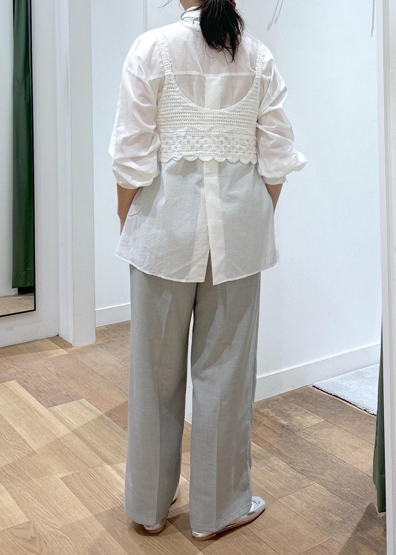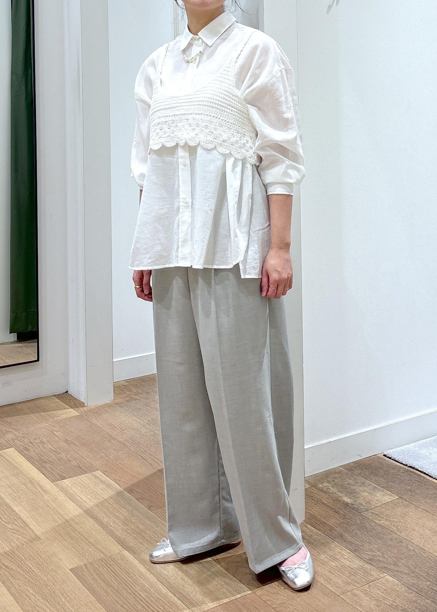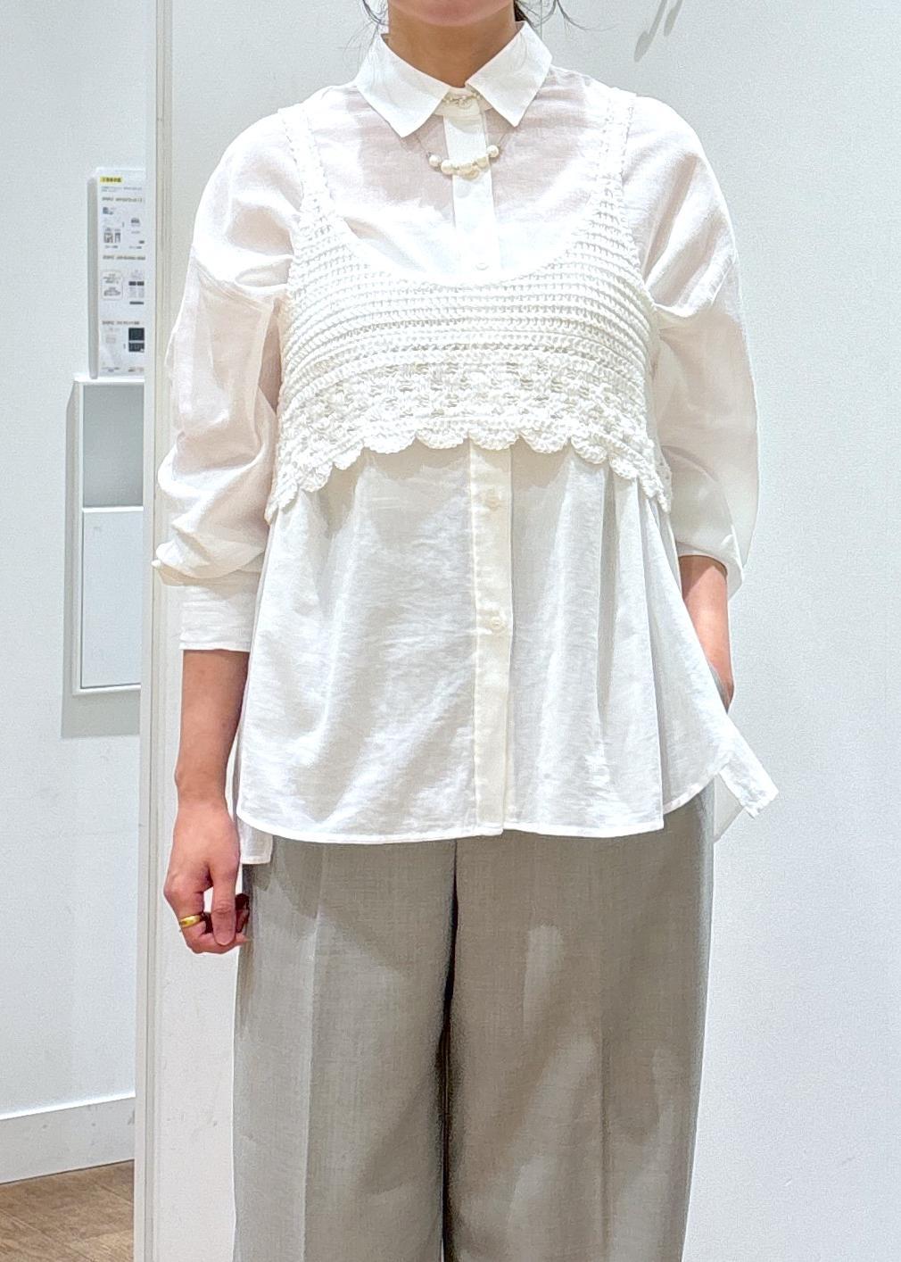 バックタックシャツ×クロシェビスチェ