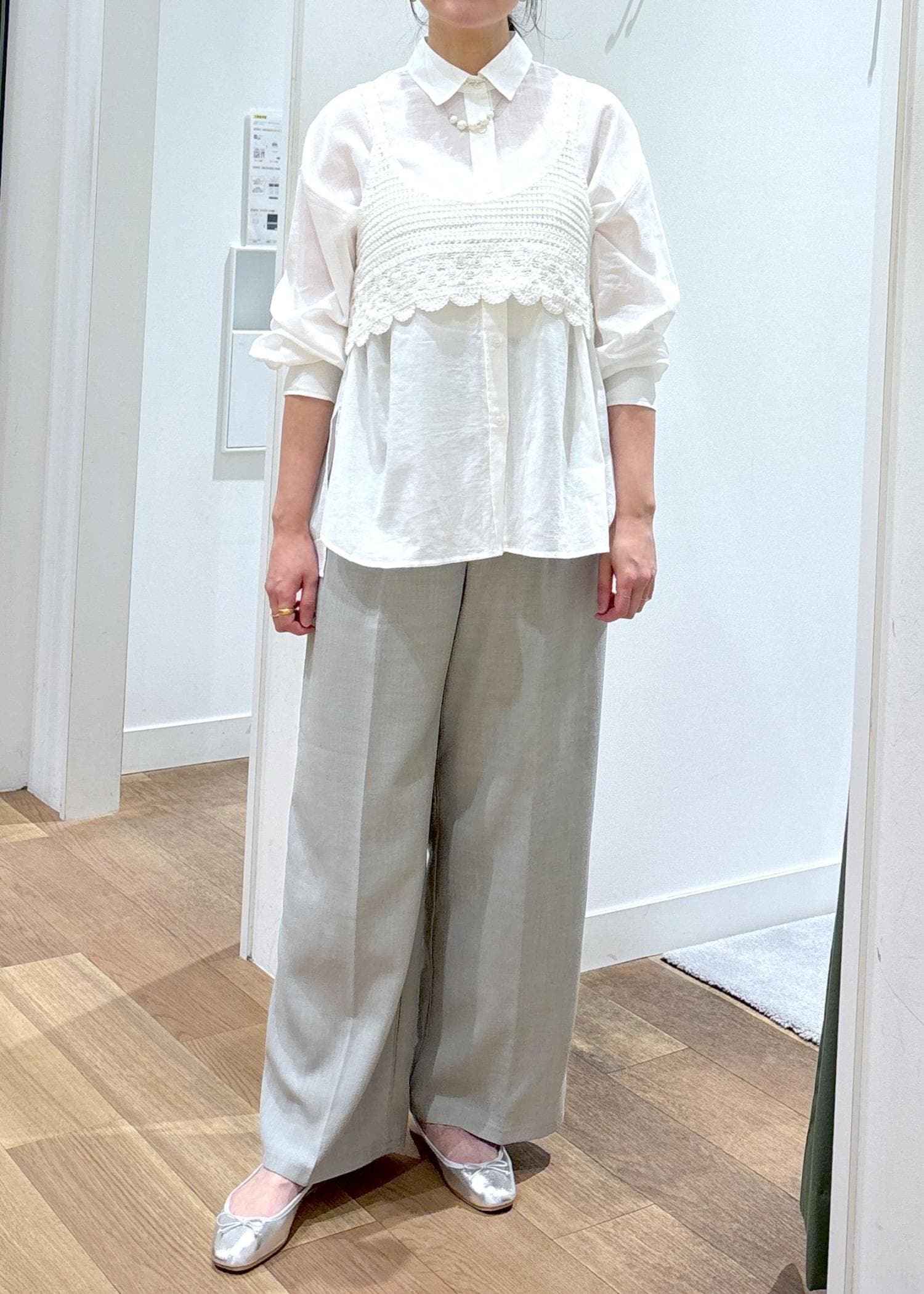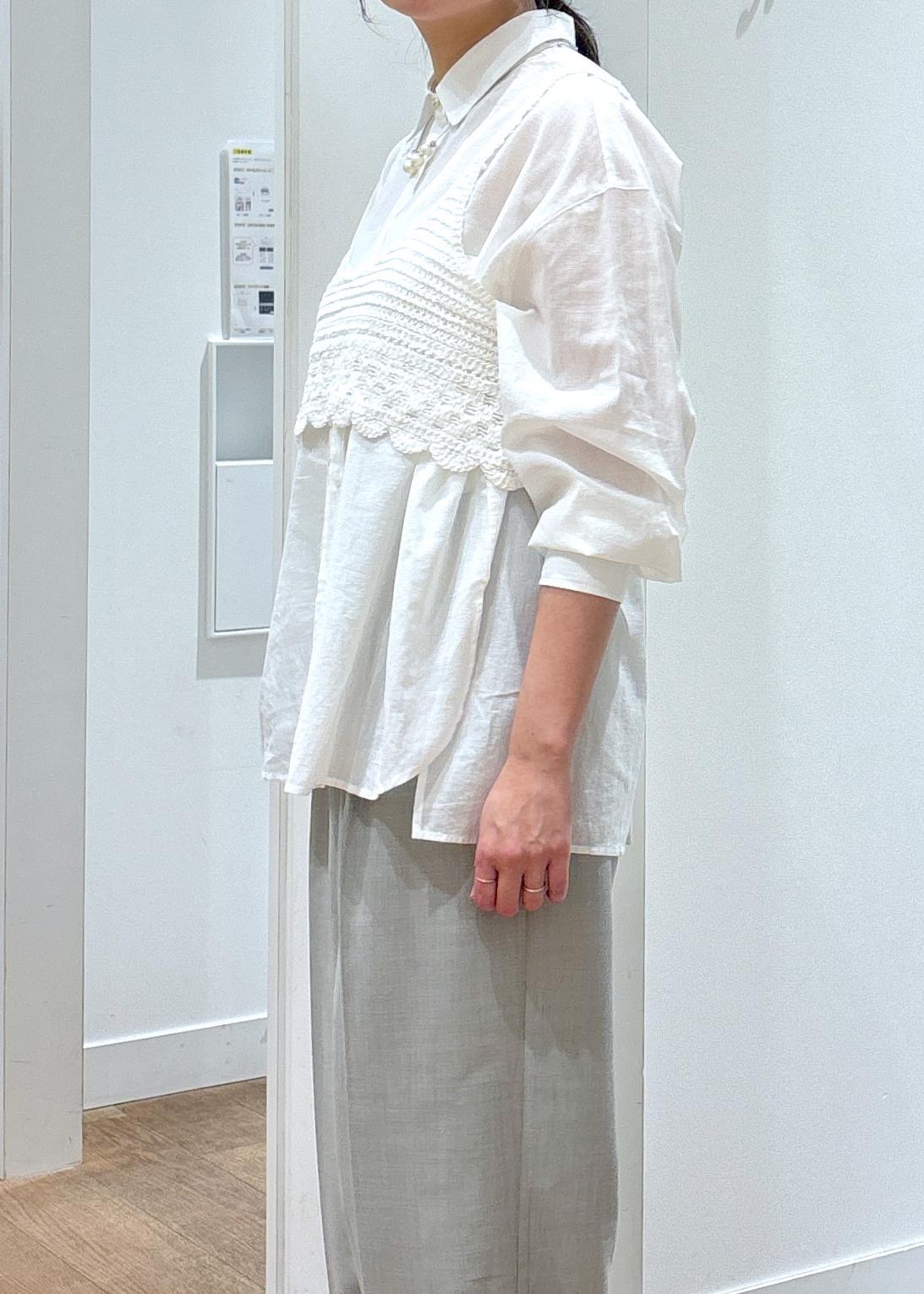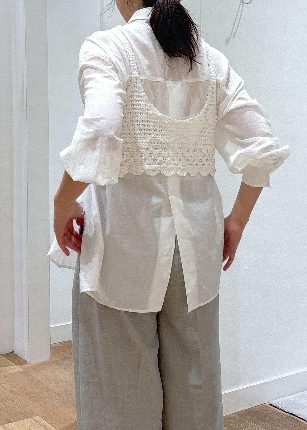 バックタックシャツ×クロシェビスチェ