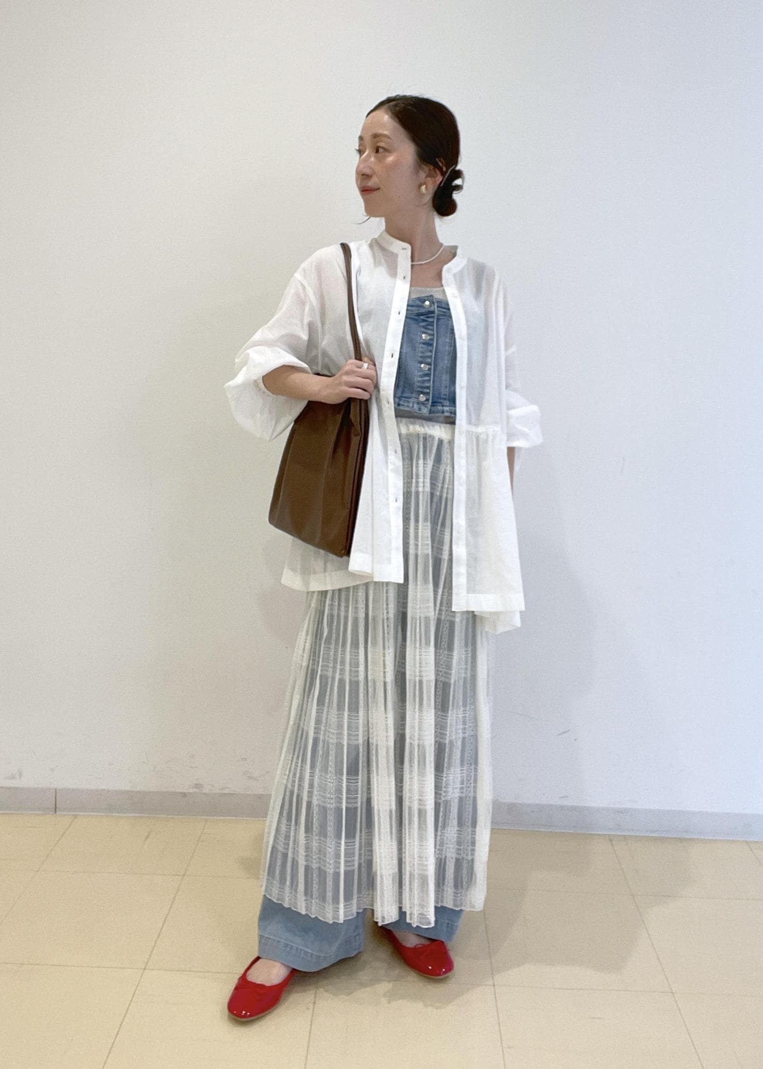 デニム×ホワイトをテーマに差し色に赤もいれてみました☺︎