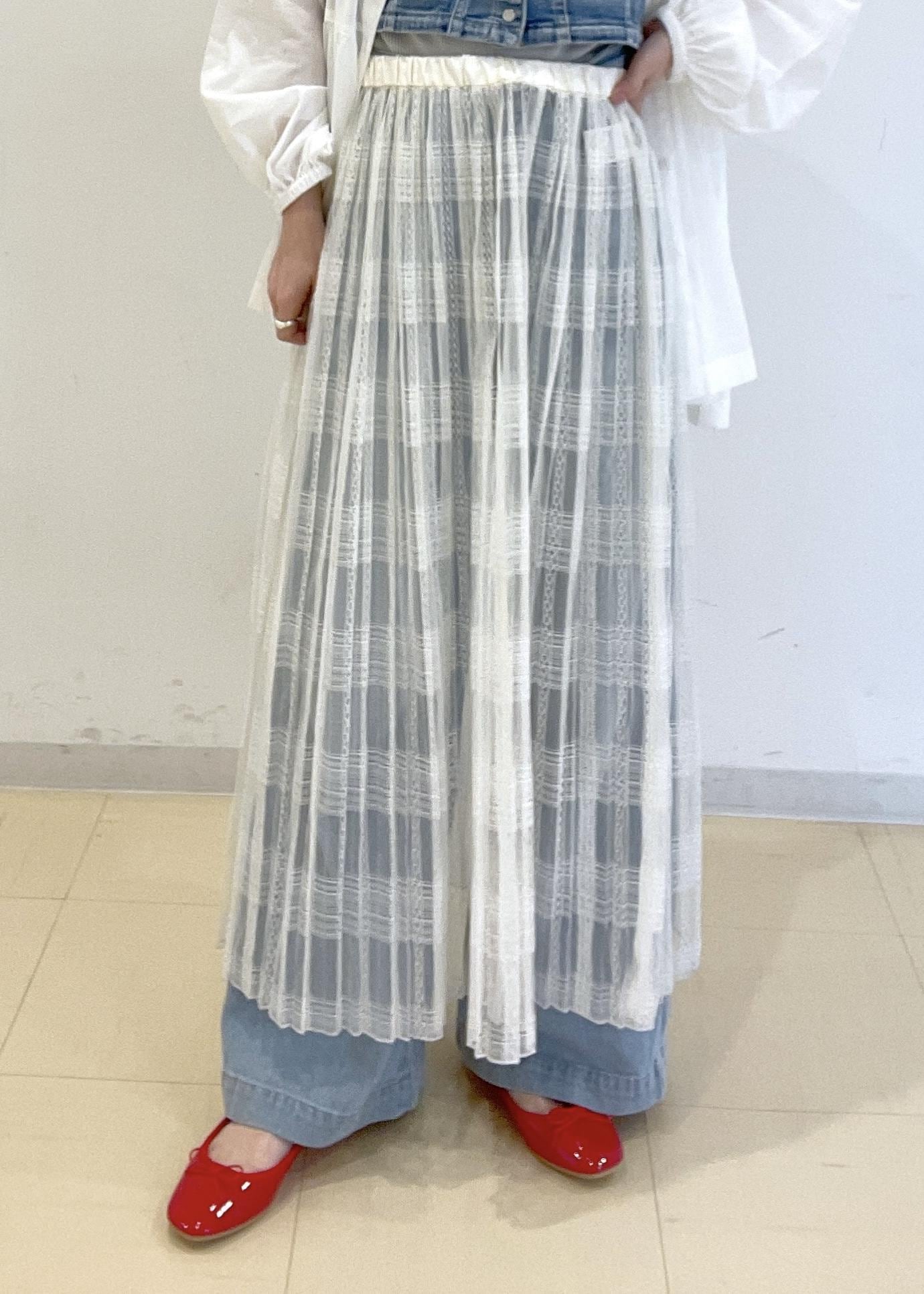 ペチコートなしでレイヤードスタイルにも使えるスカートです。ウエストはゴムなので、楽な着心地でした。