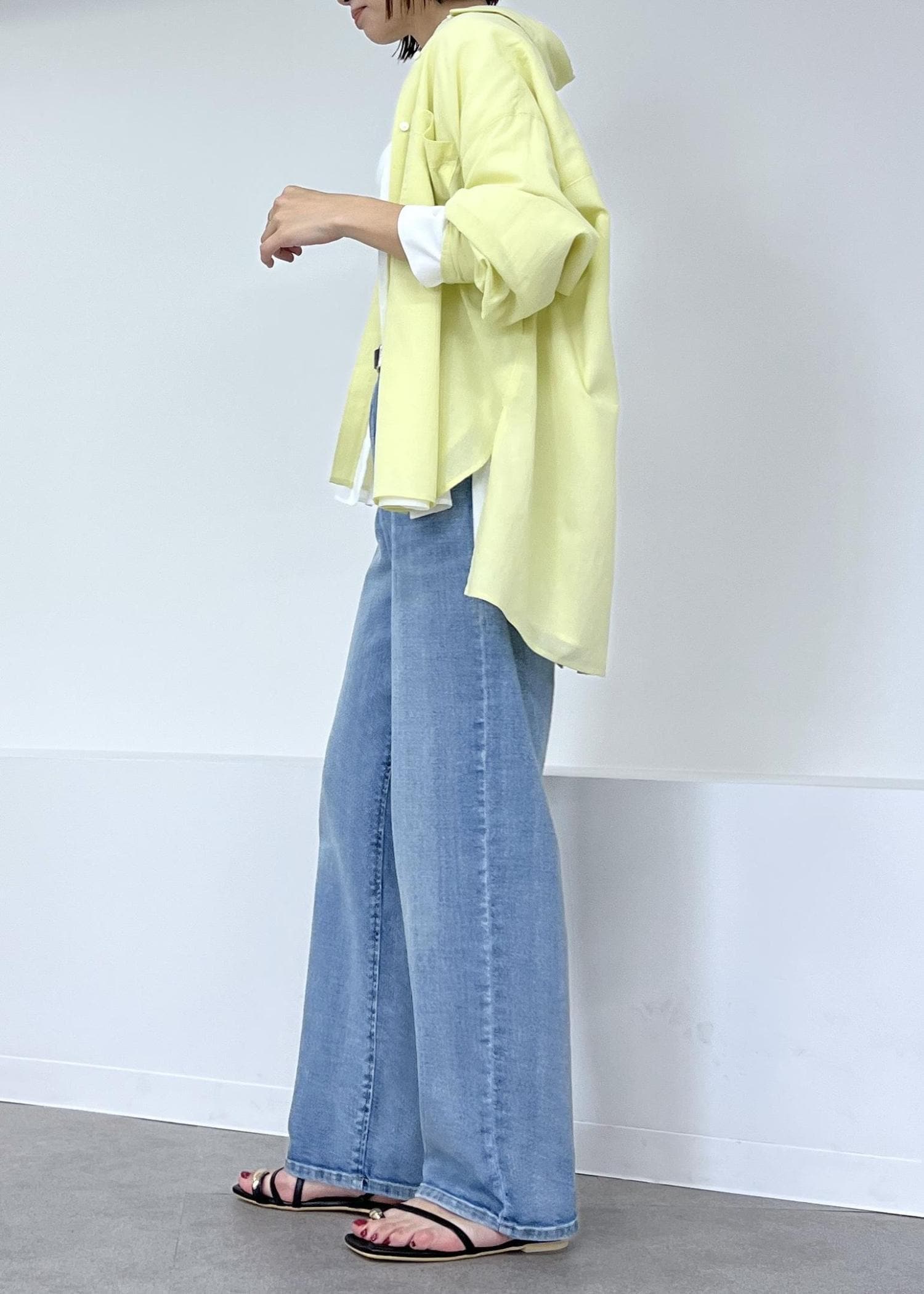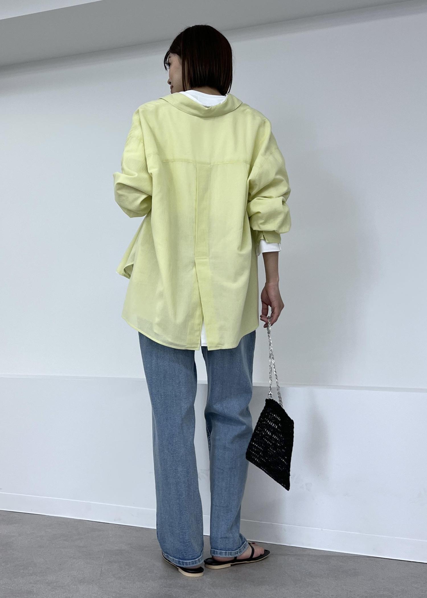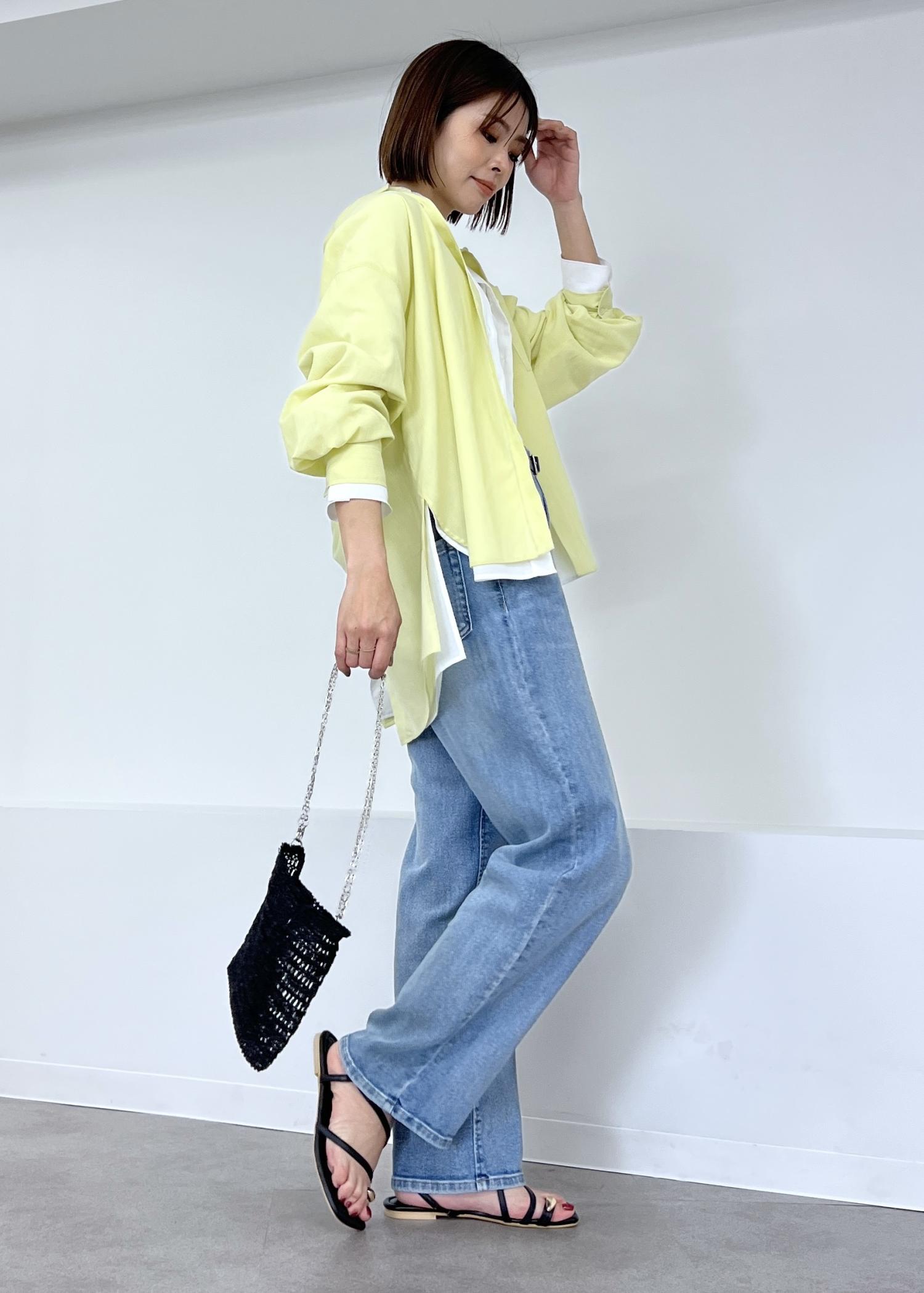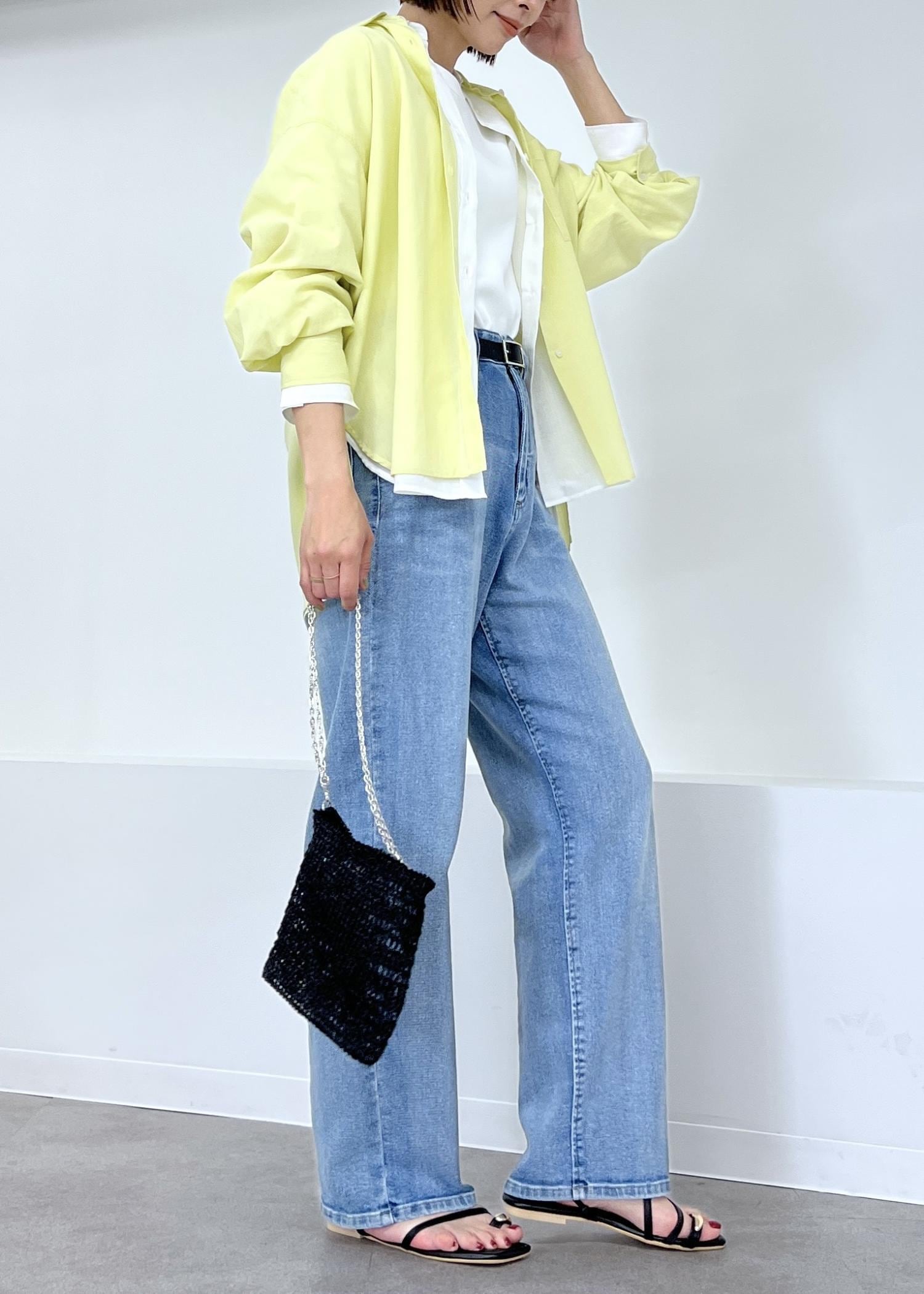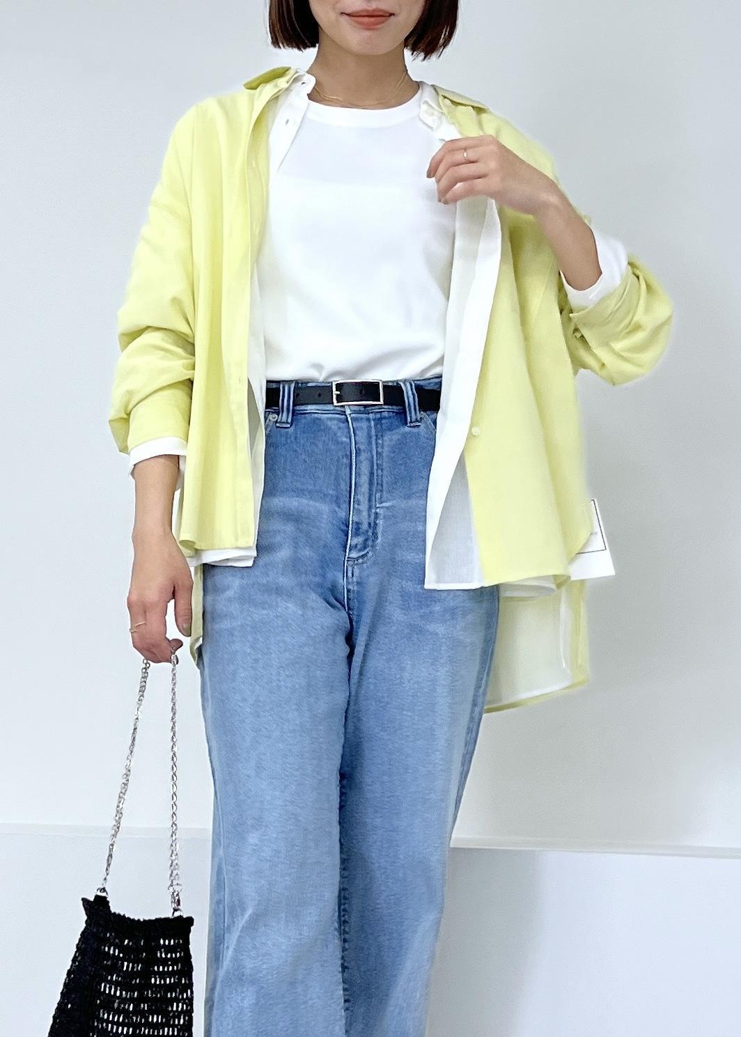 春夏らしいイエローのシャツは、色違いのホワイトを下に重ねるだけで今年らしい着こなしに。