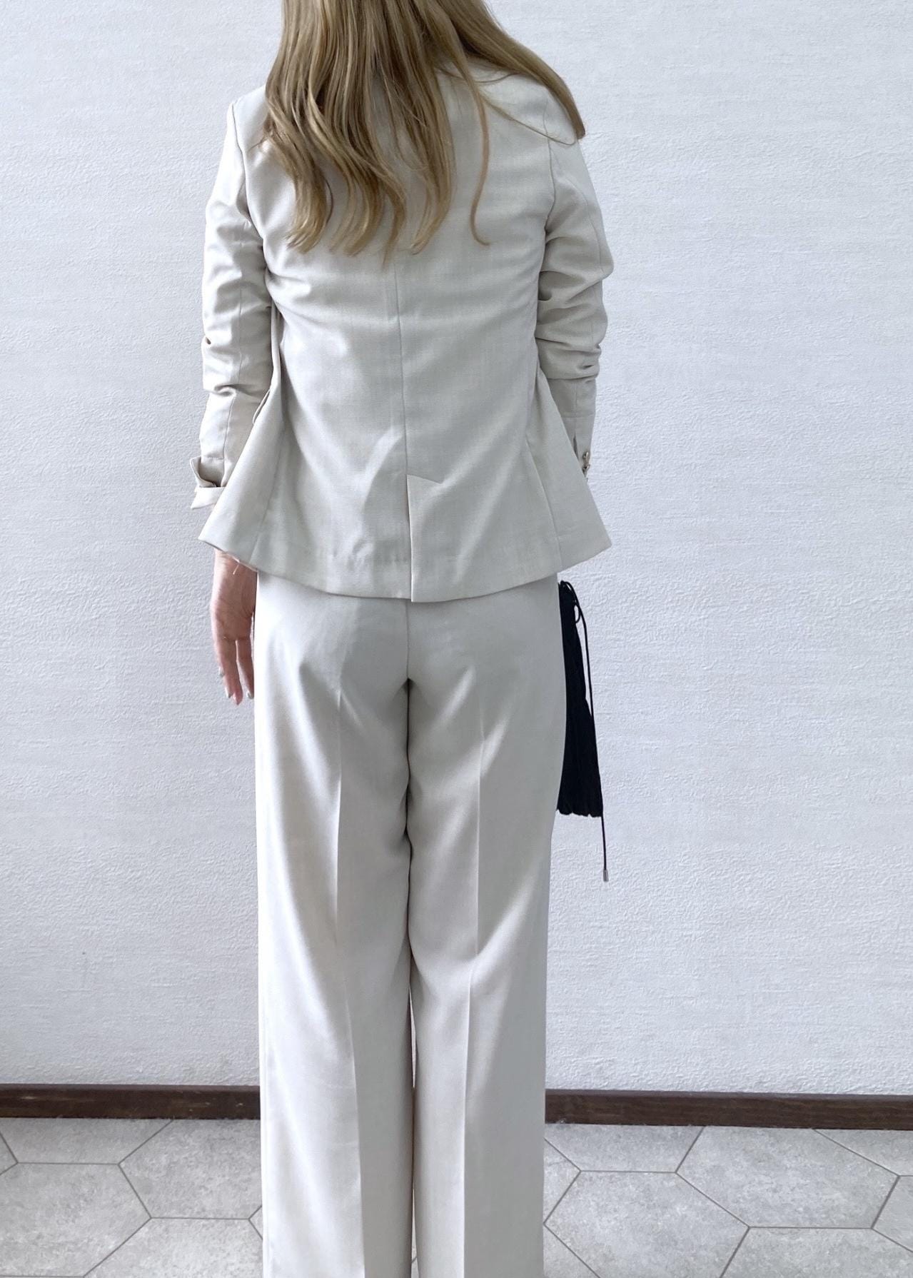 ・スタイルアップにもなるハイウエスト仕様は、太すぎないワイドパンツに仕上げました。