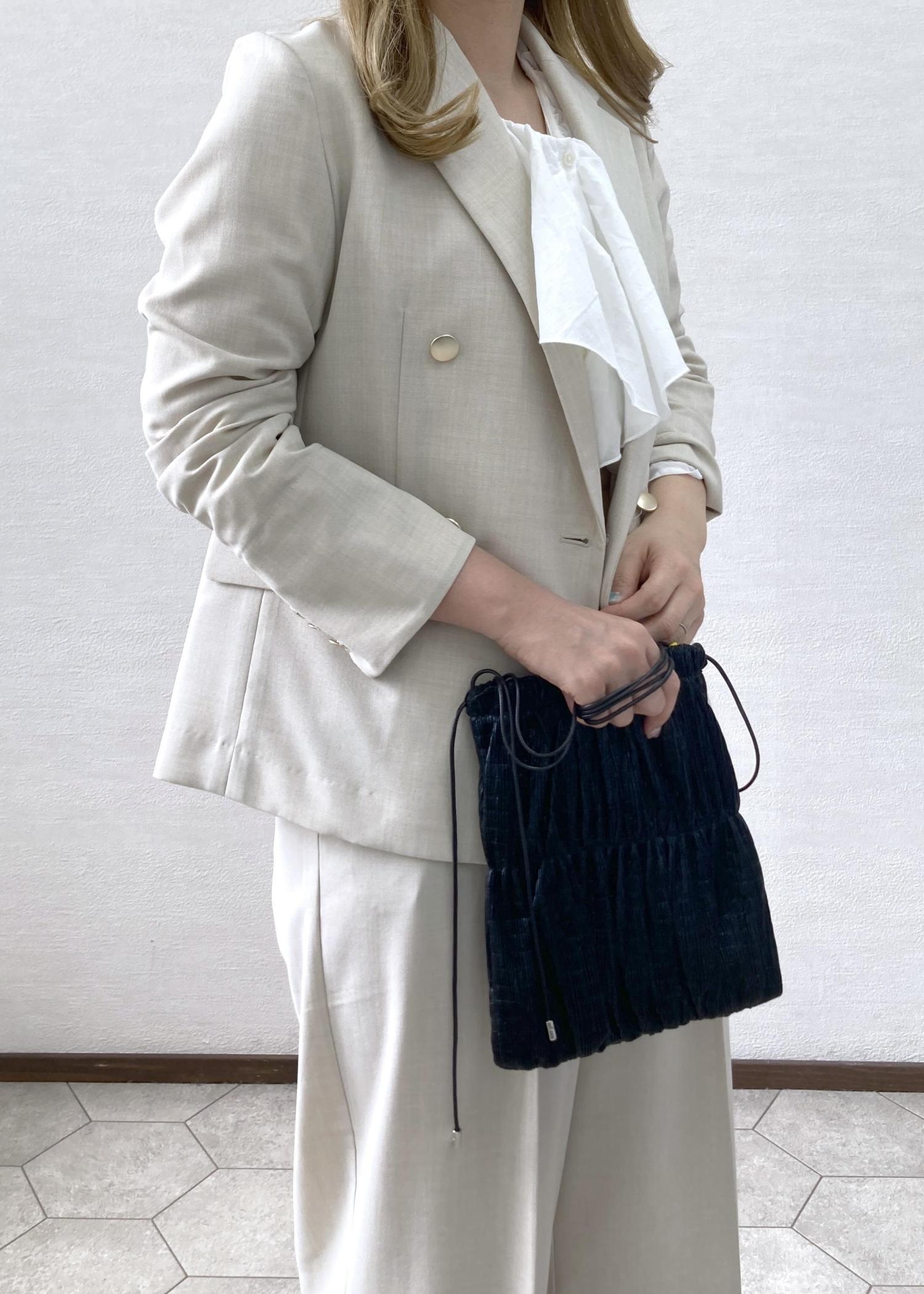 オンオフどちらでも使えるスッキリしたセットアップ!フリルブラウスで甘さをたしました!カチッとみえるけどオシャレ見えするので、オフィスや入園式にもぴったりなコーデです!