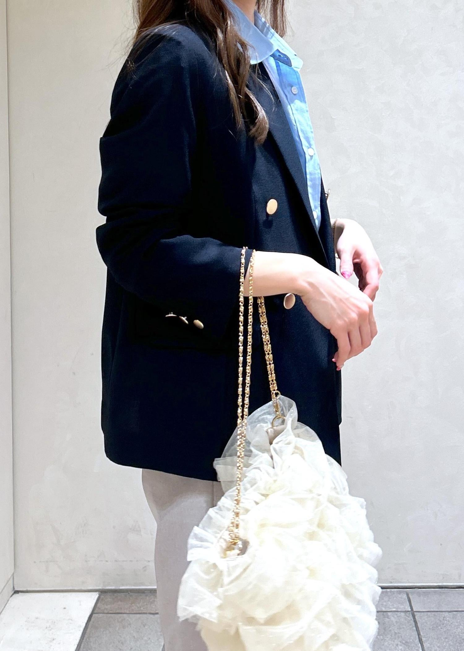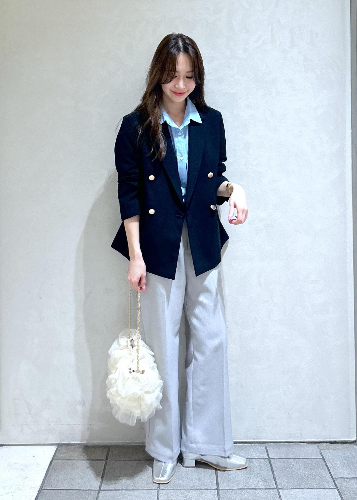 ネイビーのジャケットにブルーのシャツで爽やかな春スタイリングにしました。