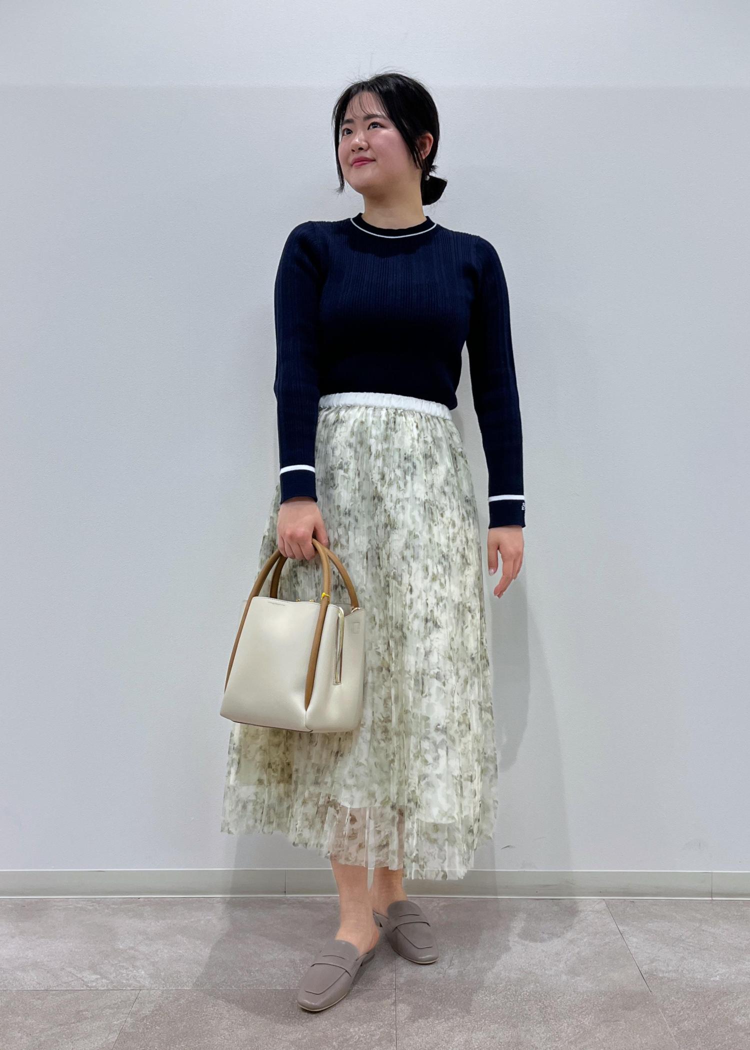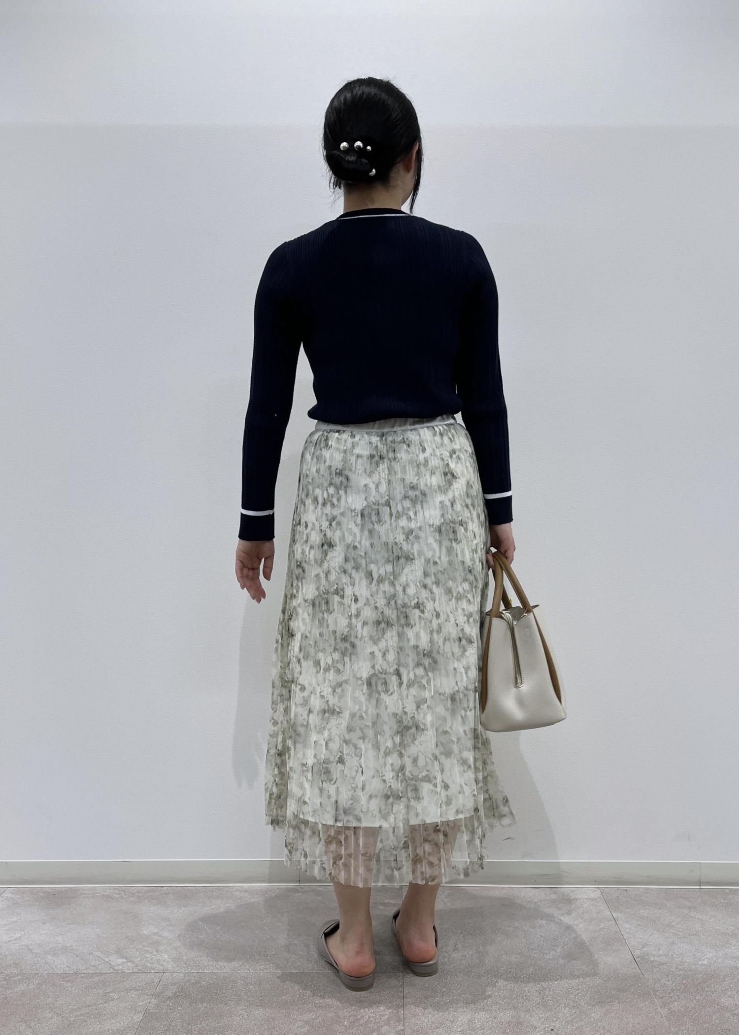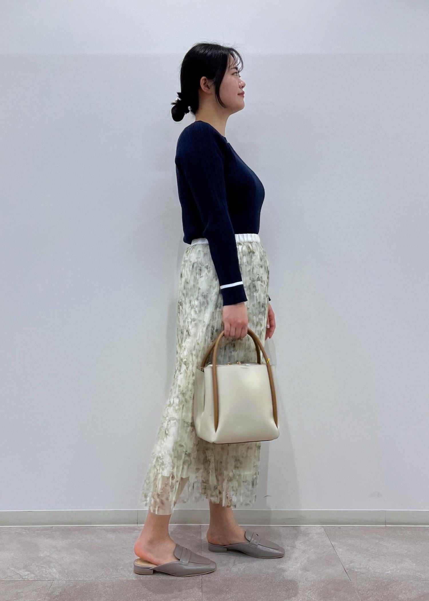 チュールスカートですが細かいプリーツで広がりすぎないので骨格ストレートでも着ぶくれ感が少ないです。