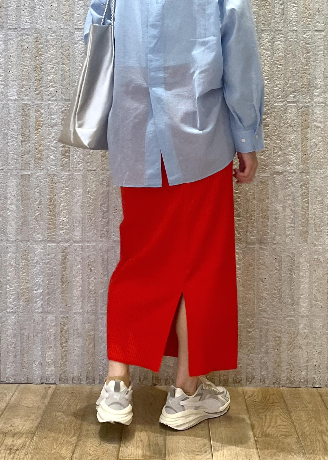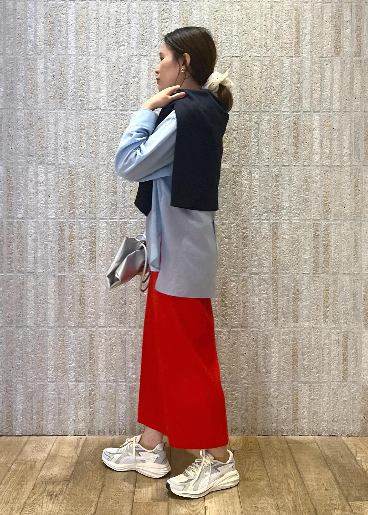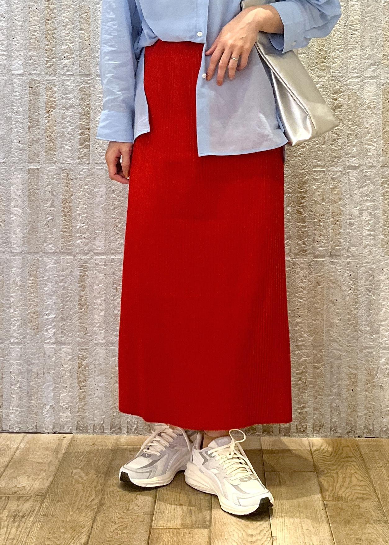 フレッシュな赤のスカートを使った初春スタイリングです♪