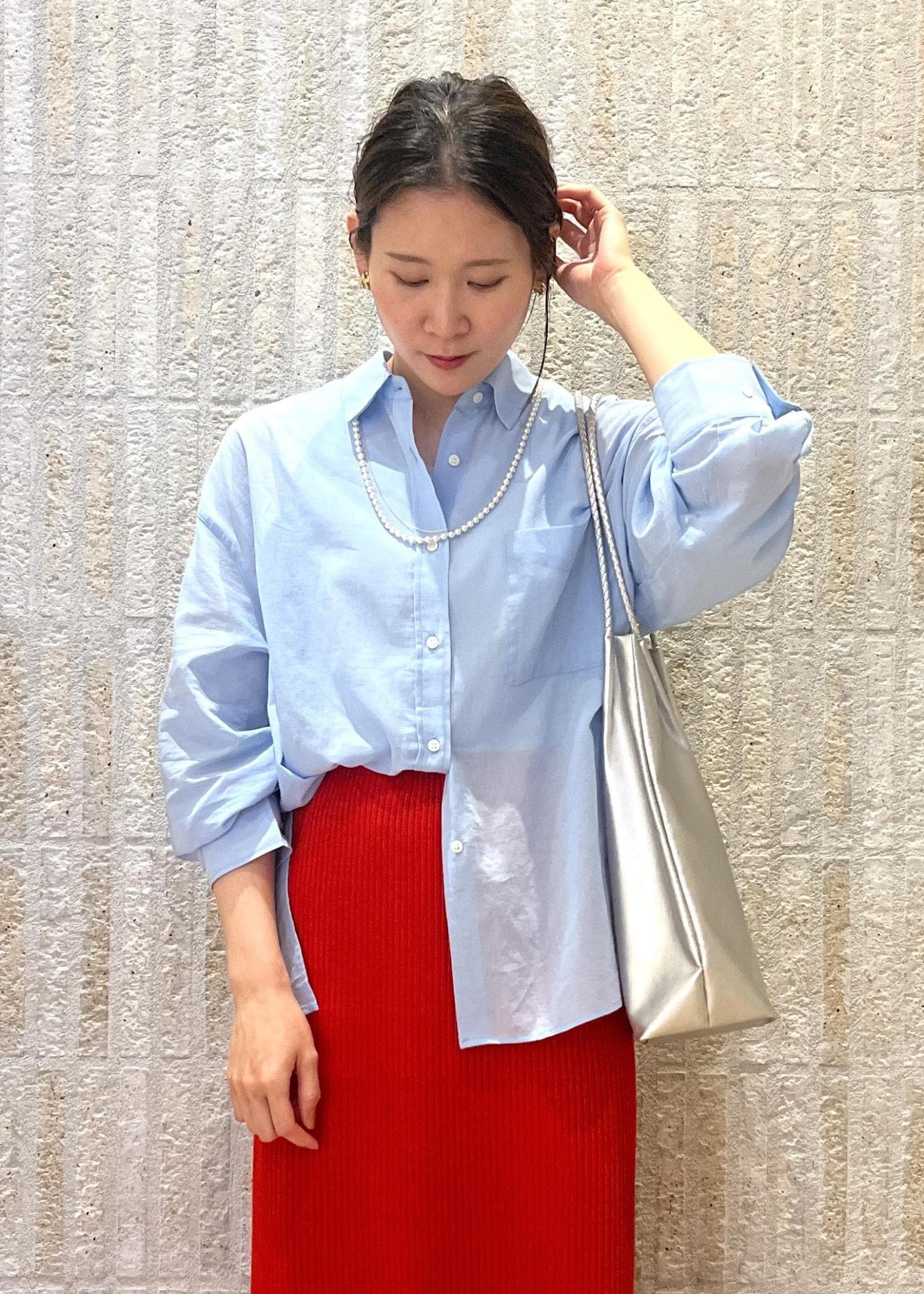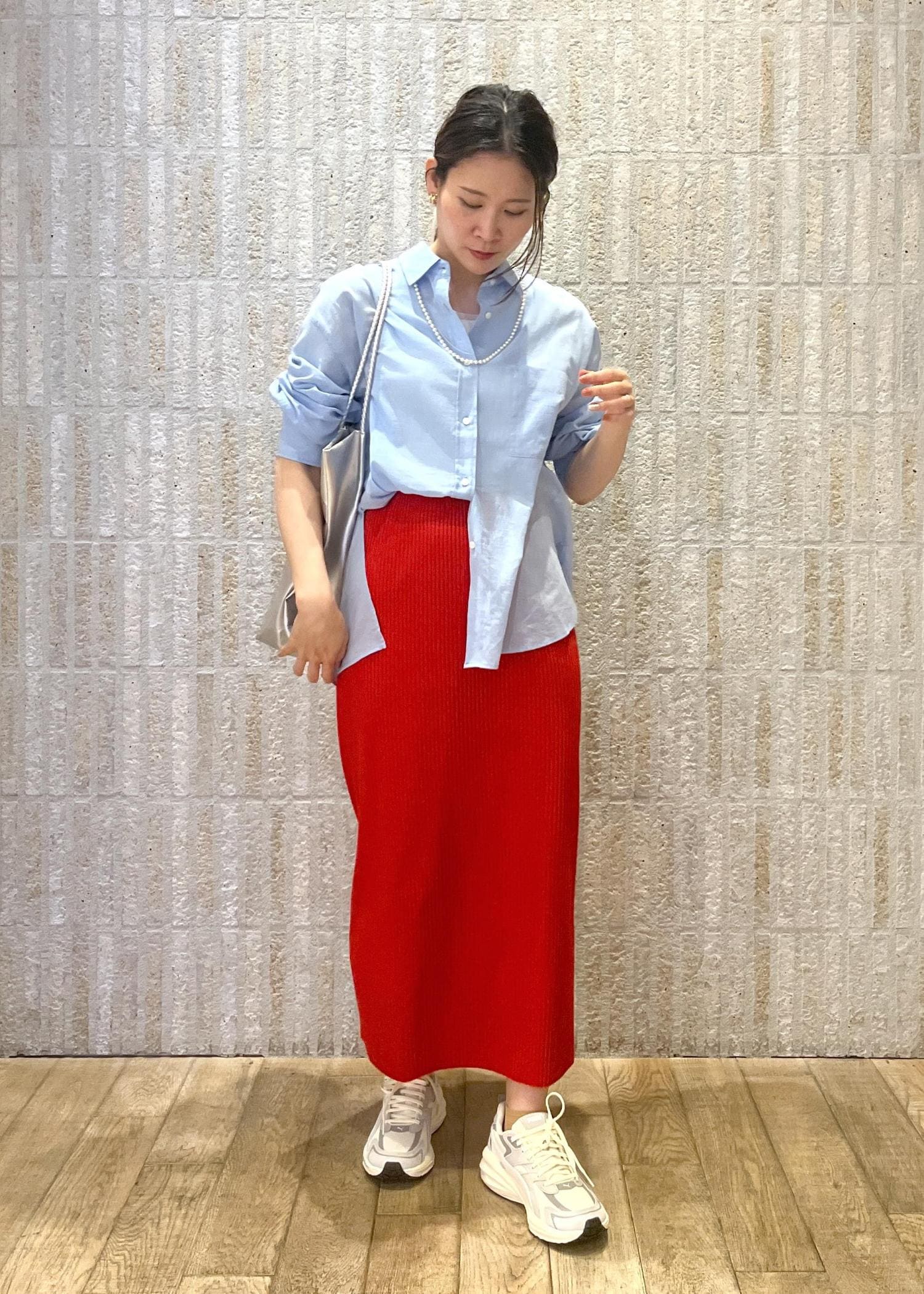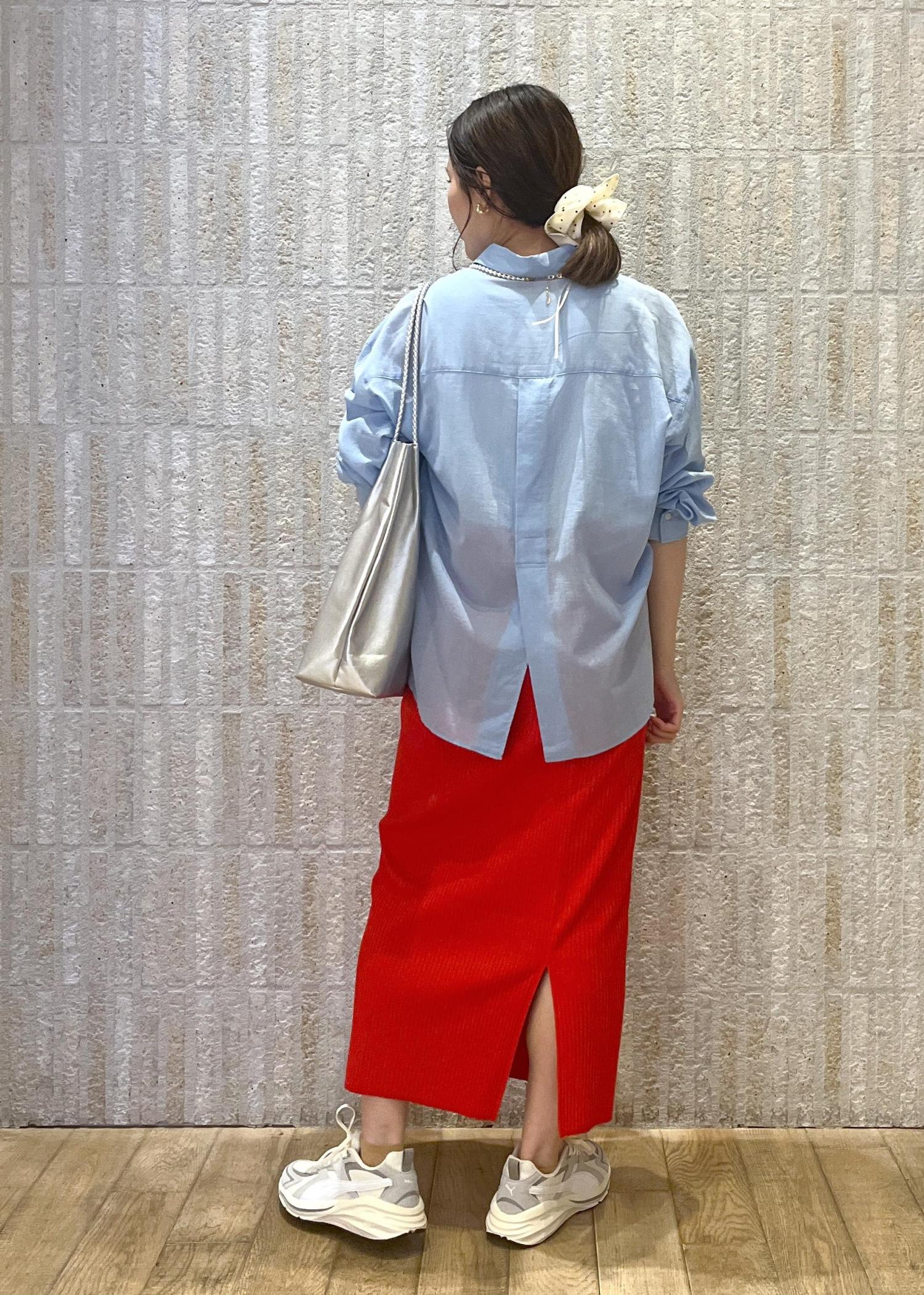 フレッシュな赤のスカートを使った初春スタイリングです♪