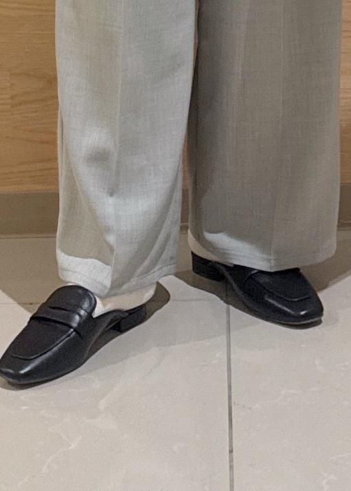 かかとが無いので、締め付け感がなく抜け感が出ます。 -