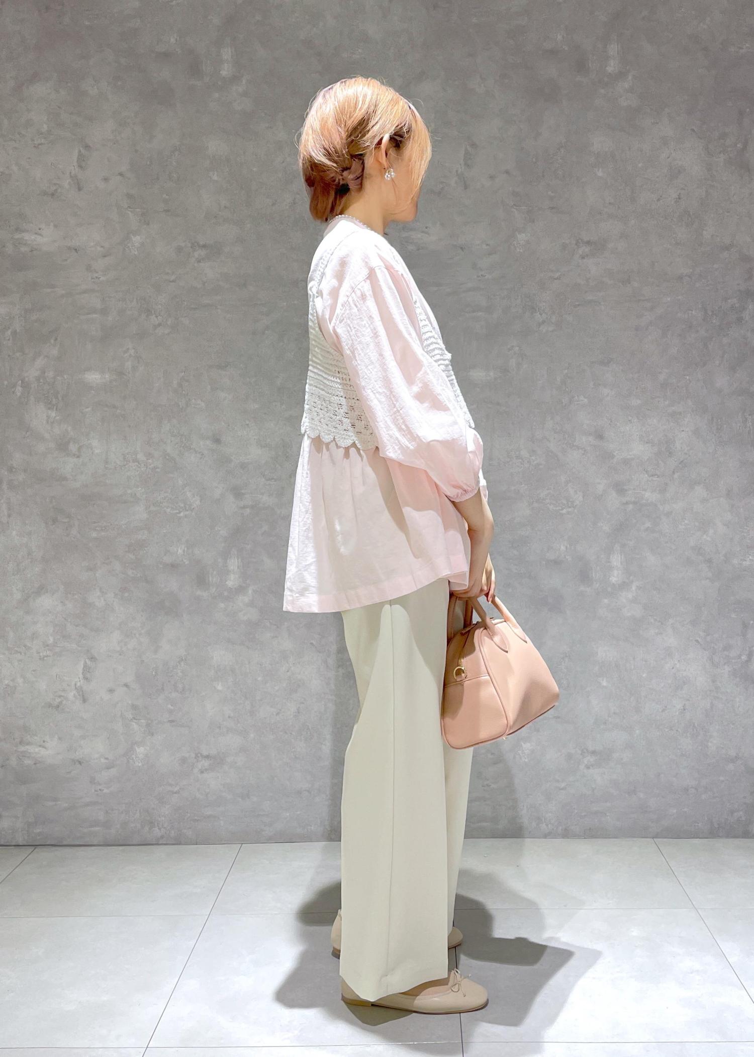 柔らかい生地感でウエストにギャザーが入っているデザインなのでゆっくりながらも可愛らしい印象になります!
