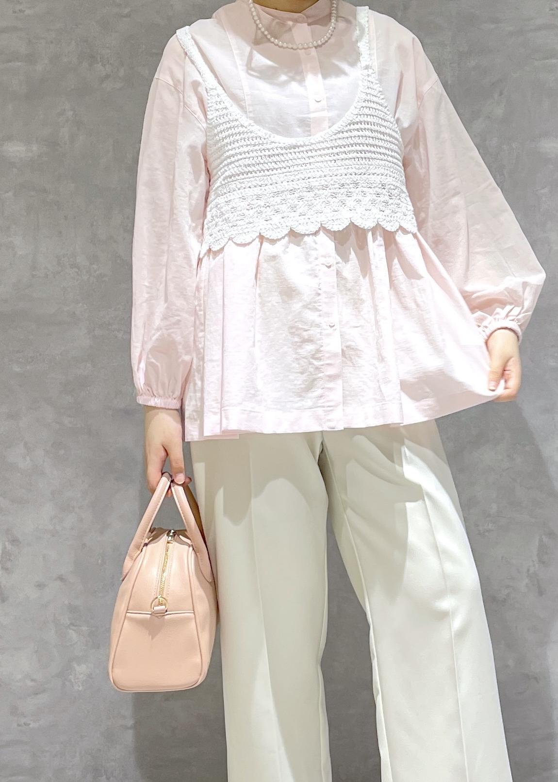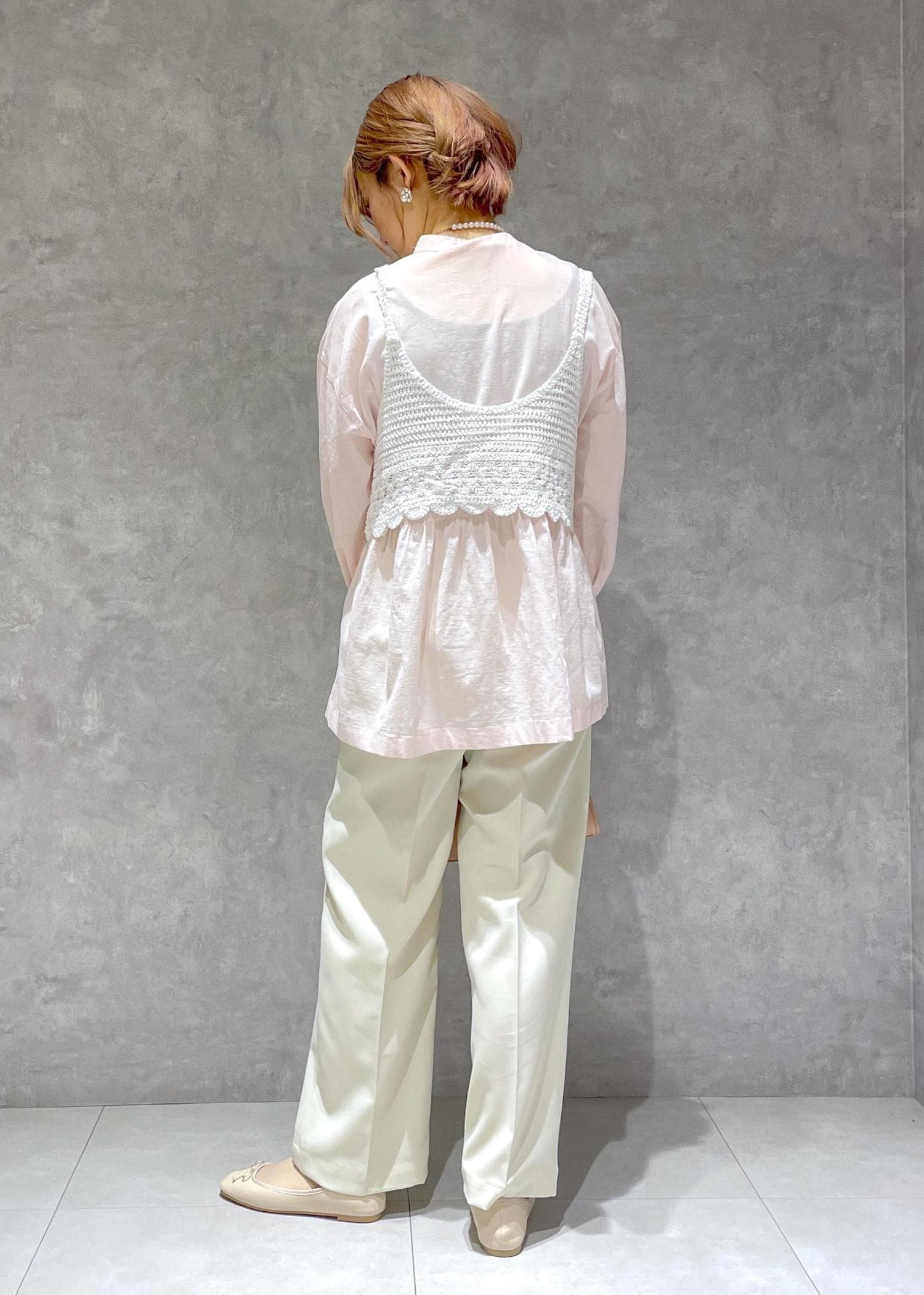 レイヤードスタイルにおすすめなクロシェビスチェ。