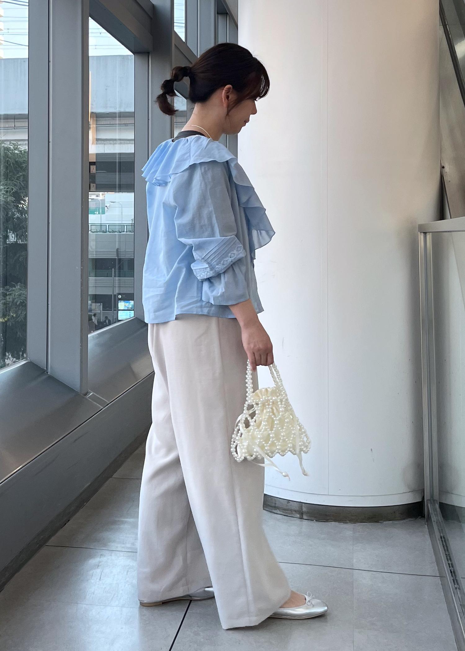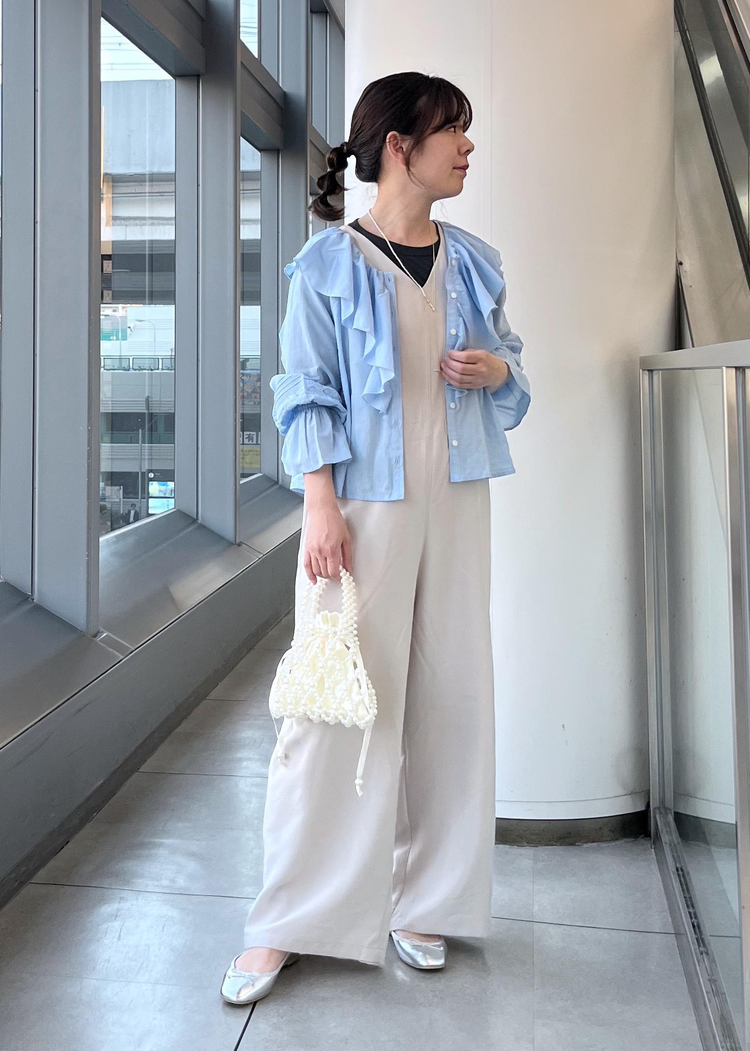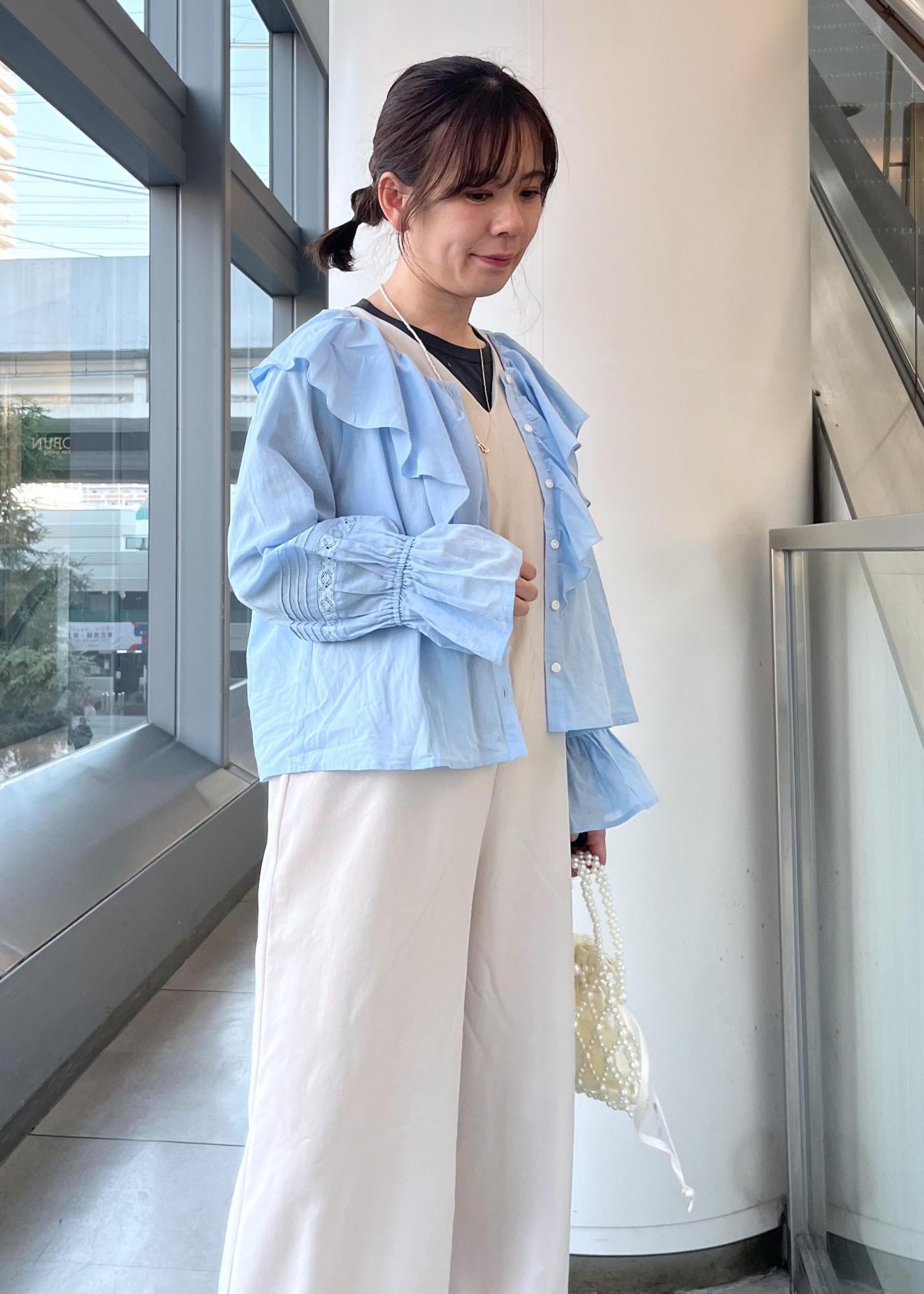 フリルのデザインが華やかな印象でカジュアルにもフェミニンなスタイルにもどちらも合わせやすいです。 -
