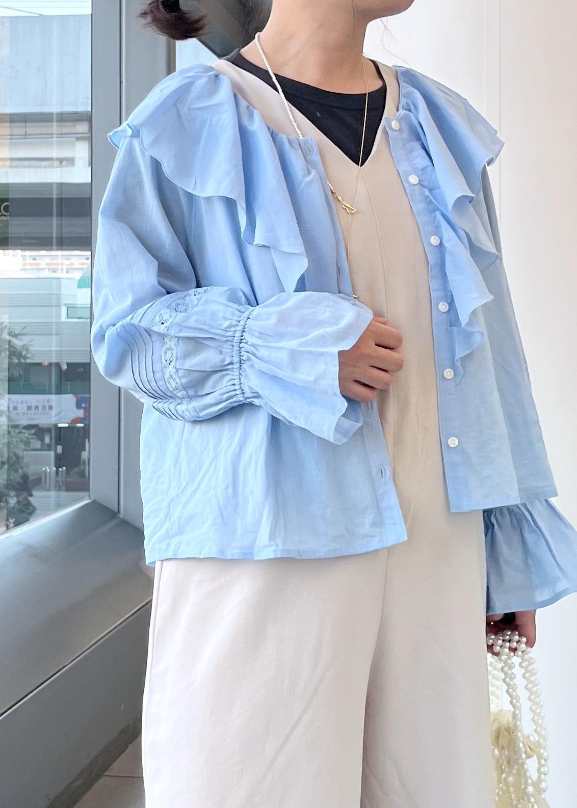 大きめフリルとギャザースリーブが可愛いブラウスのご紹介です。