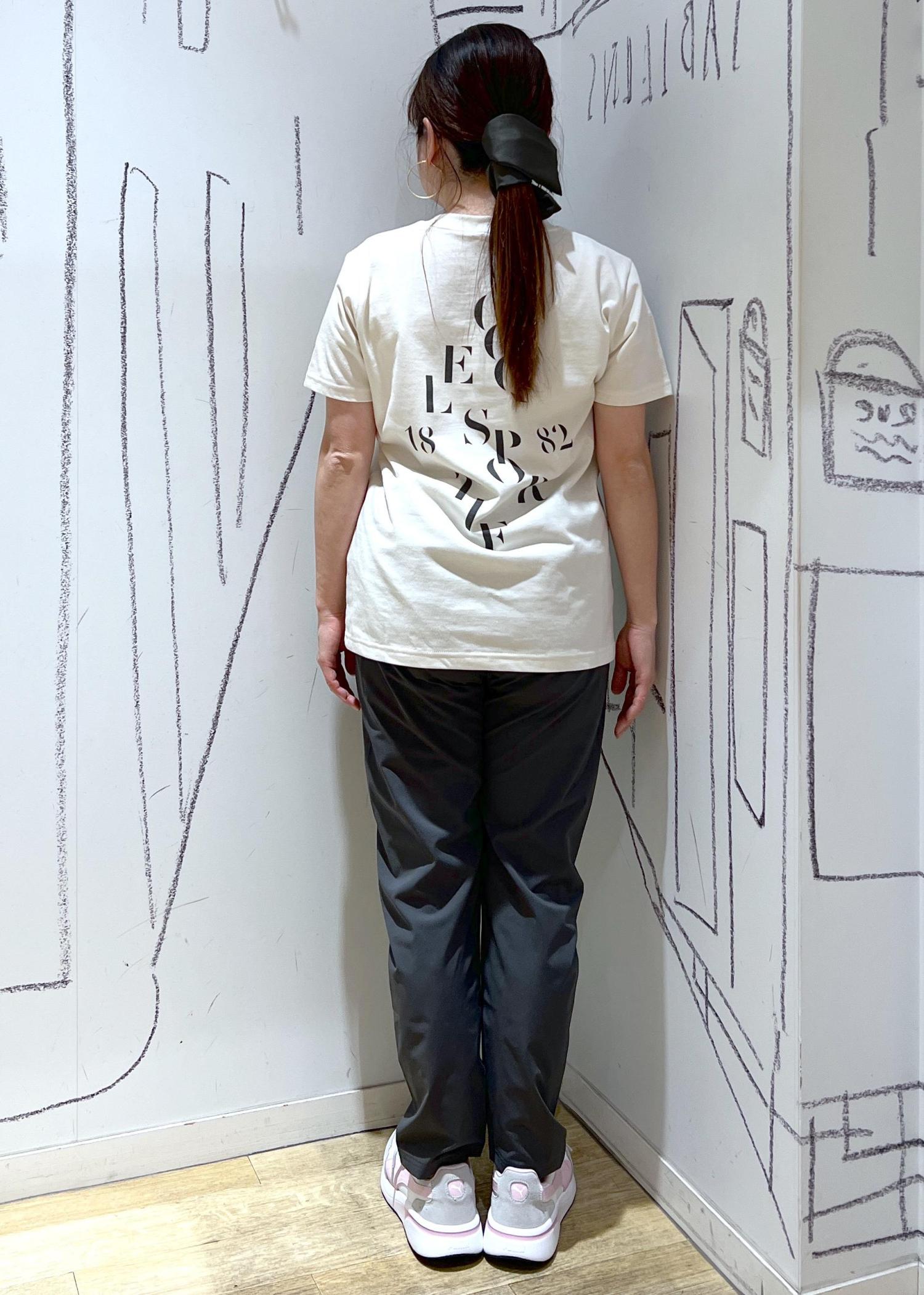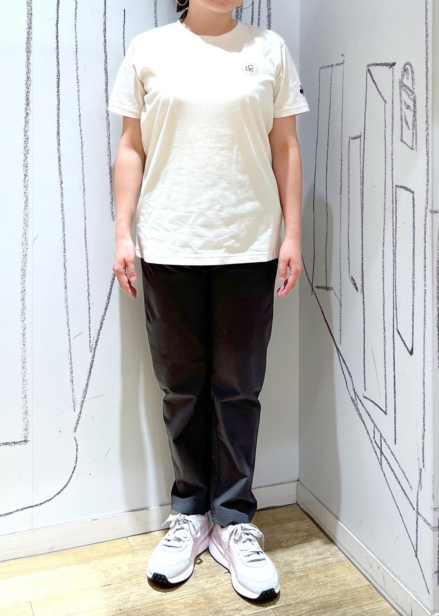 綿とポリエステルで仕上がっており肌触りいい素材。シワも気になりにくい一枚。襟ぐりの空きも抑えてあるのでアクティブに過ごすのに向いてますね!着丈はお尻に掛かる程度でスッキリコンパクト◎