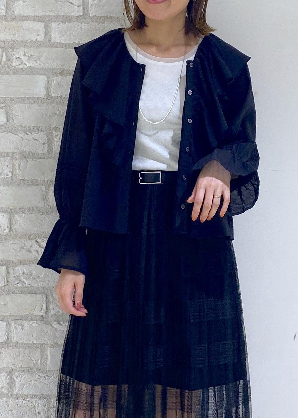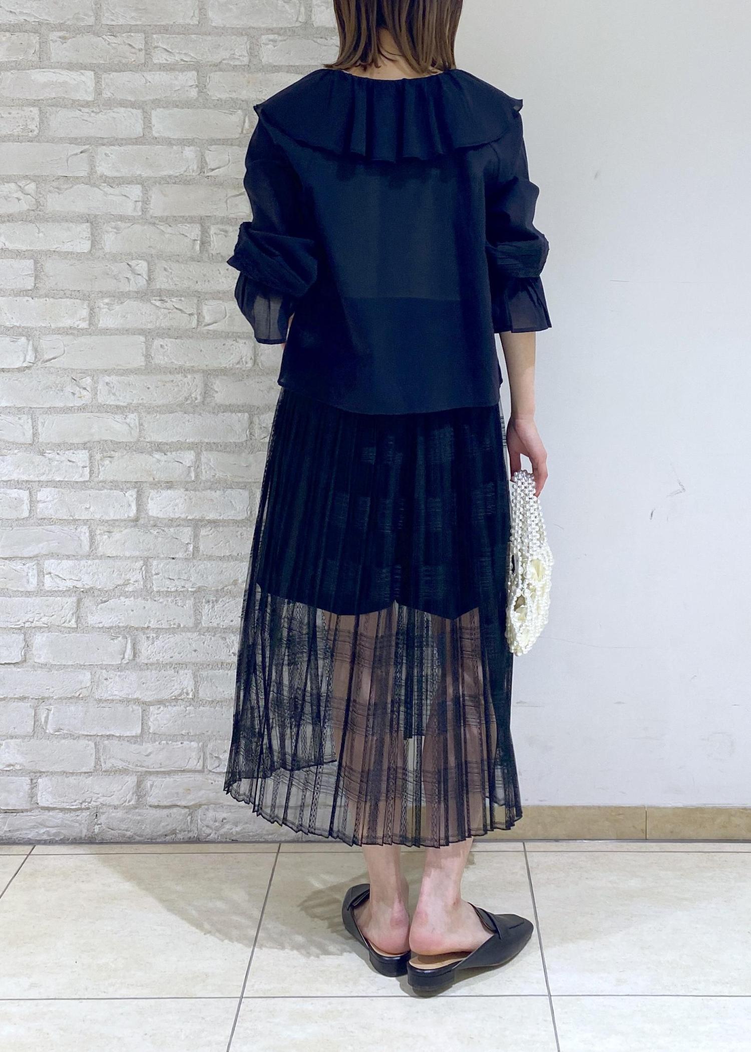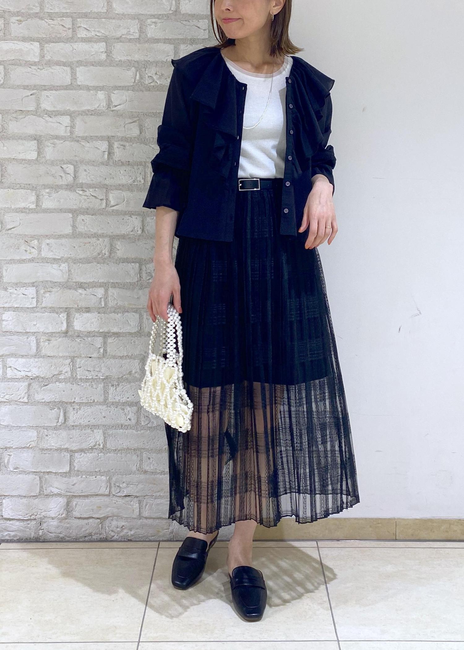 フリルブラウスのブラックコーデ