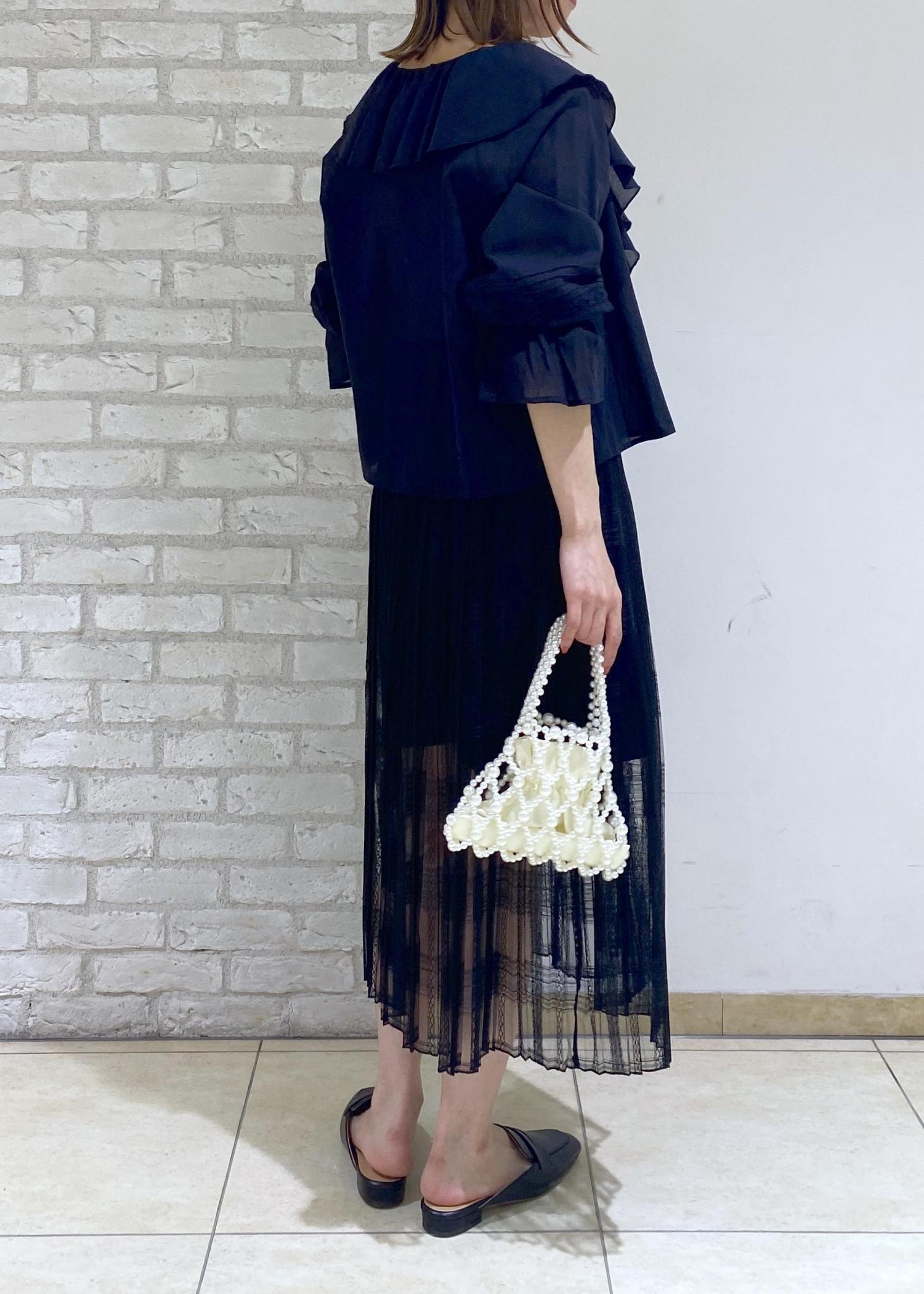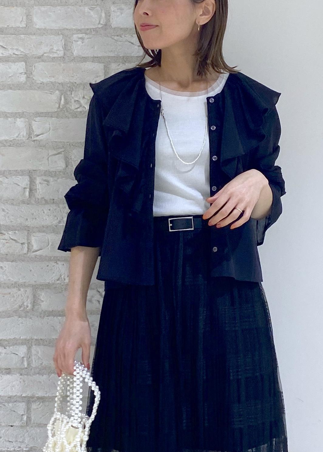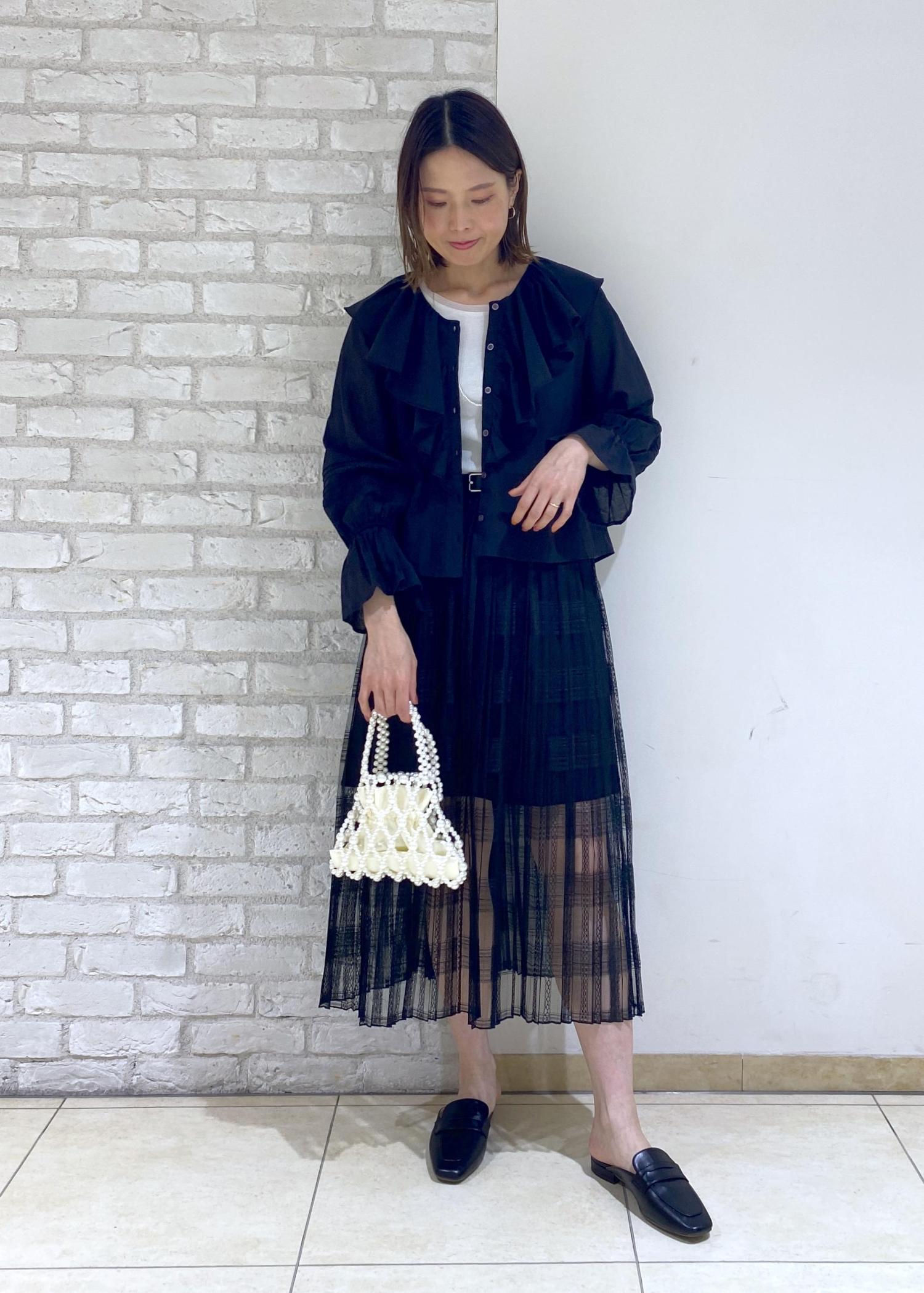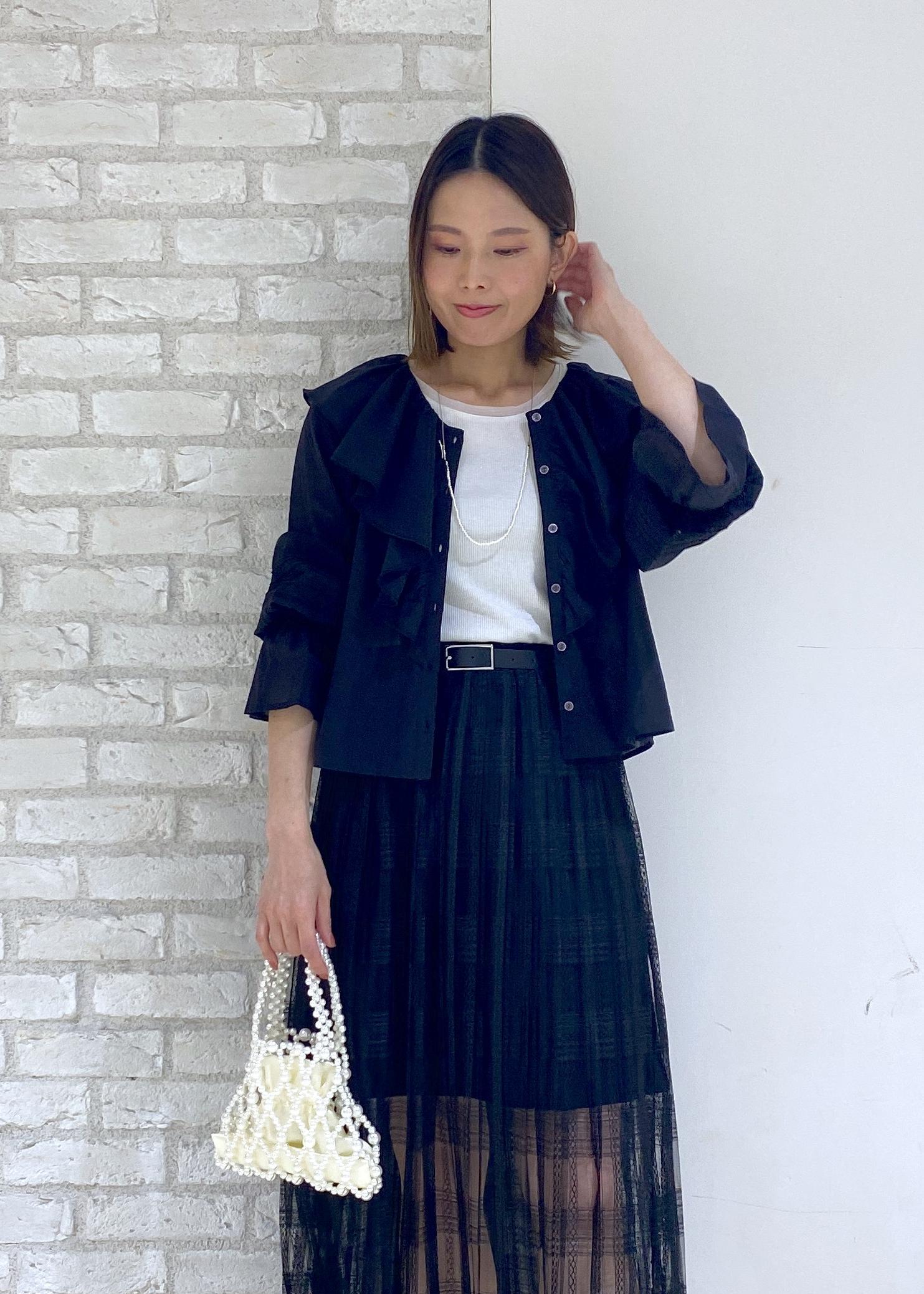 フリルブラウスのブラックコーデ