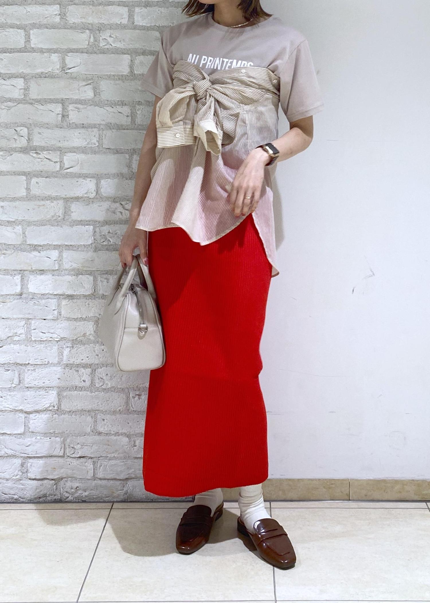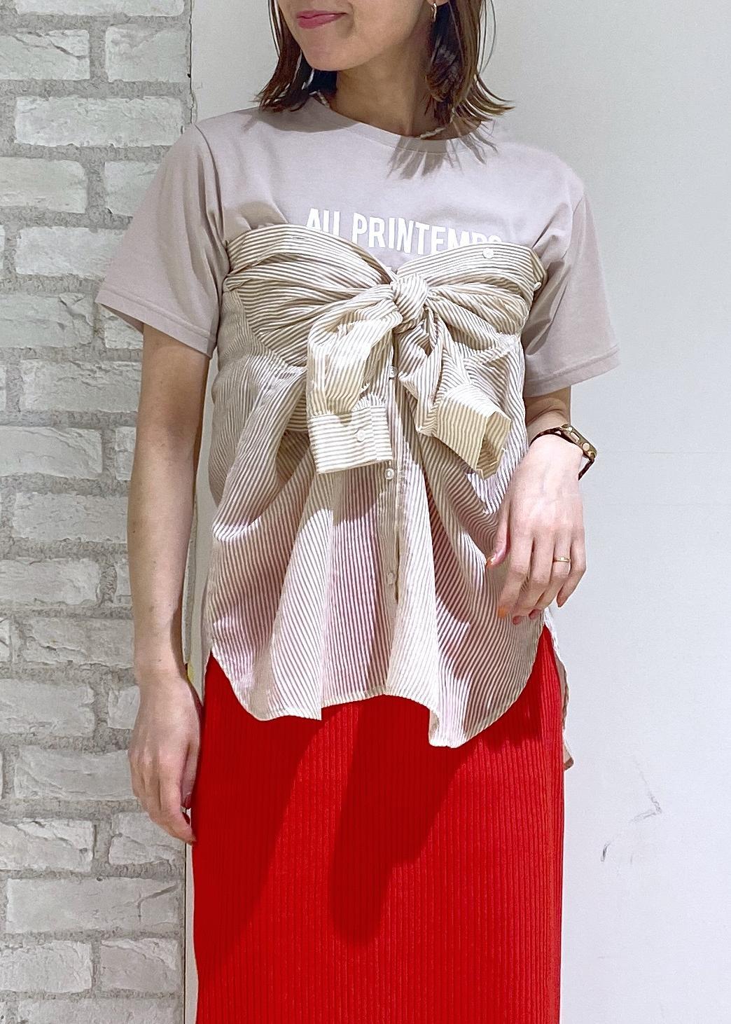ビスチェ風にアレンジしたレイヤードコーデ。