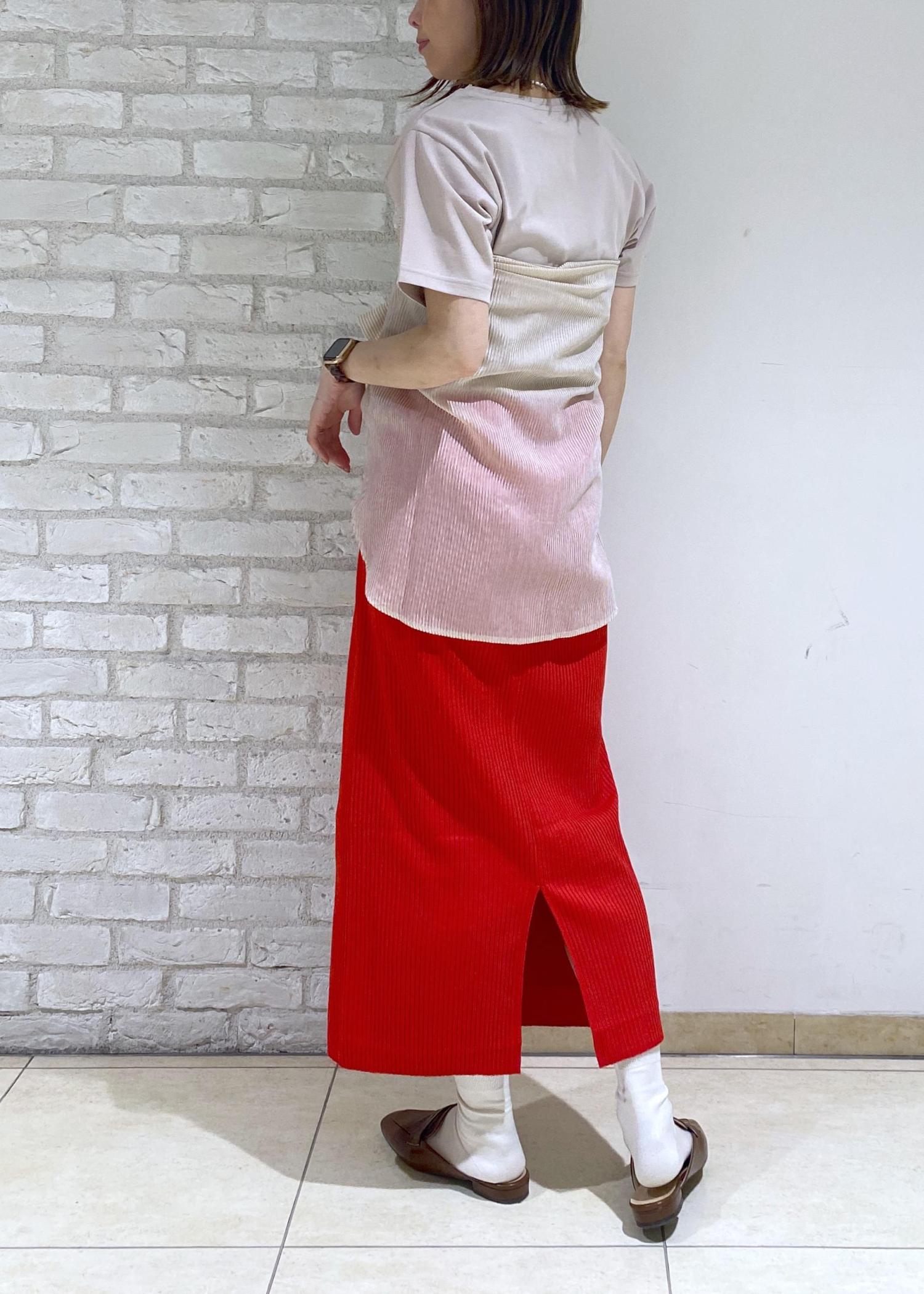 しっかりとしたリブ素材で脚のラインを拾わず着用できました◎