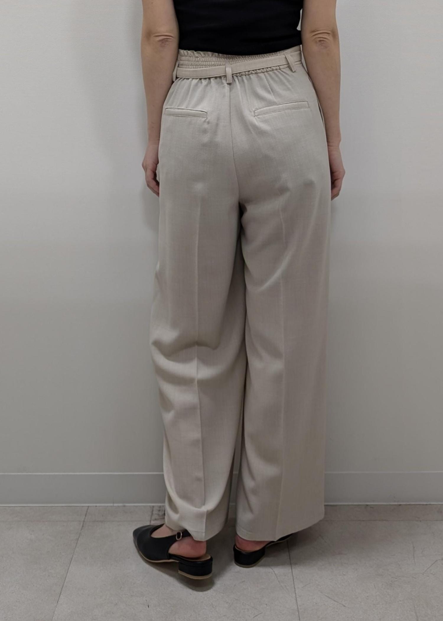 また、こちらはウエストをおこのみのサイズに調節できるボタンがついており、ヒップに合わせるとウエストがゆるくなる骨格ウェーブさんにとってもおすすめです!