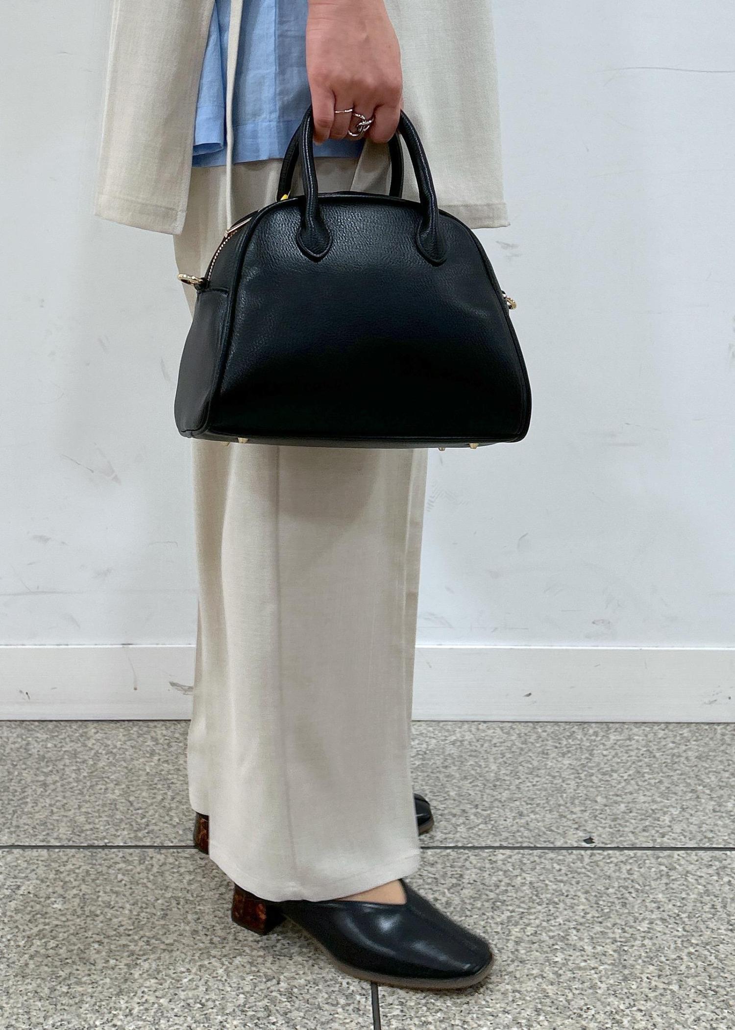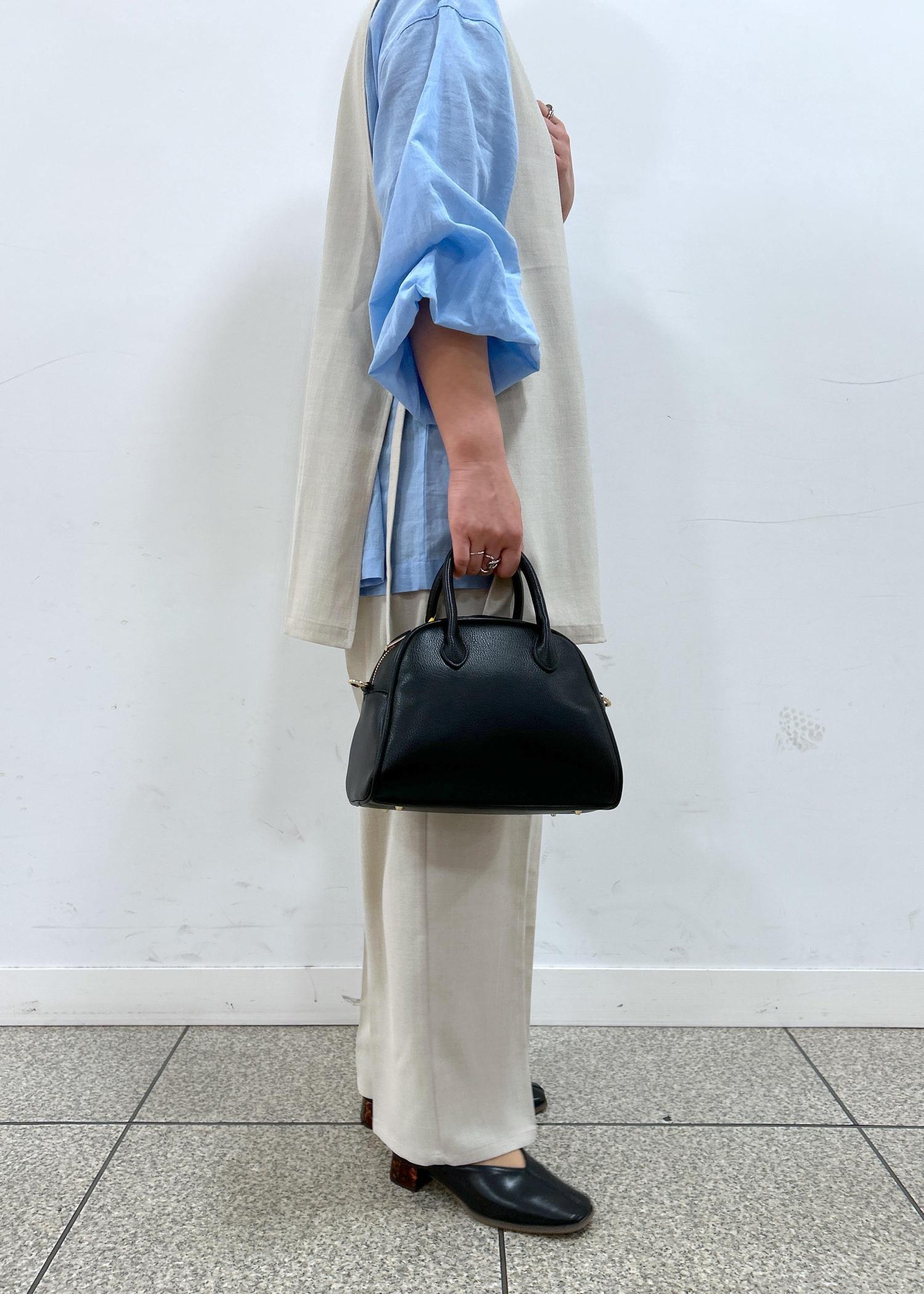 長財布、スマホ、コスメポーチ、ハンカチ、ティッシュ、折り畳み傘が入る大きさです。