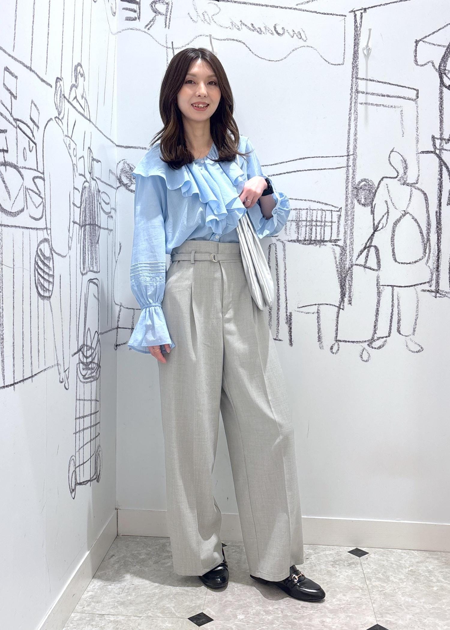 フリルもアクセントになり、袖元のシルエットもフレアで1枚でもシンプルすぎない着こなしができます。 -