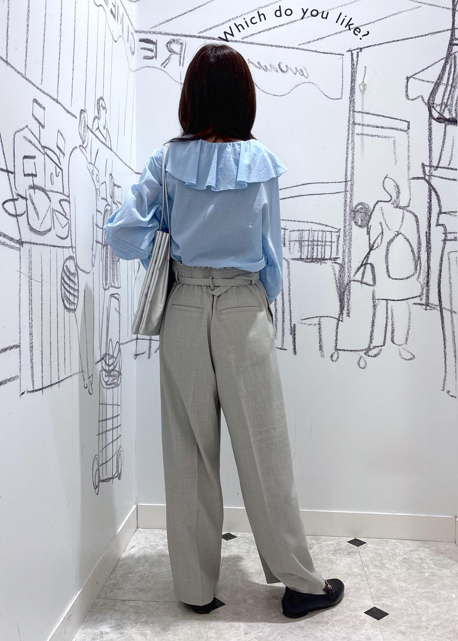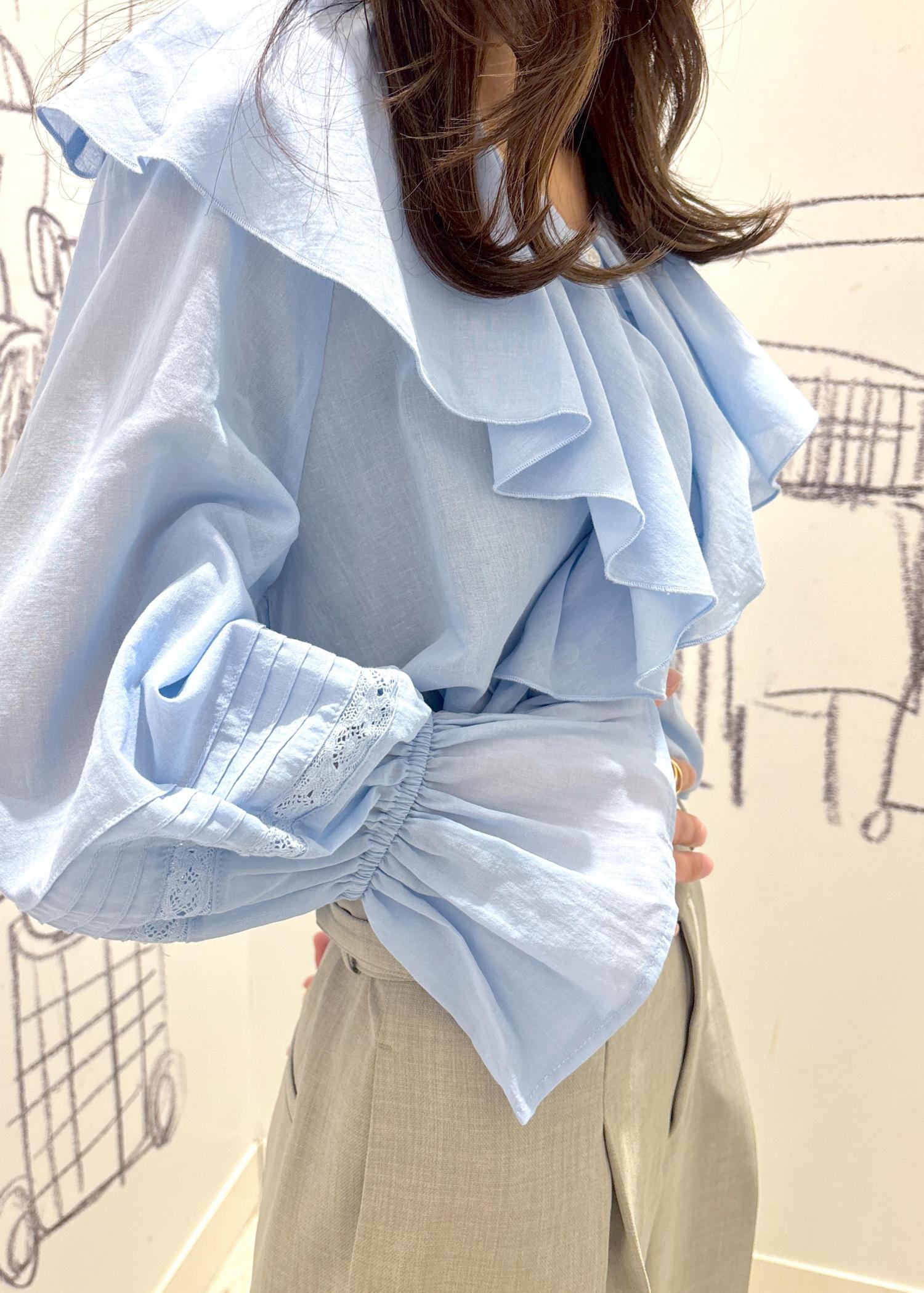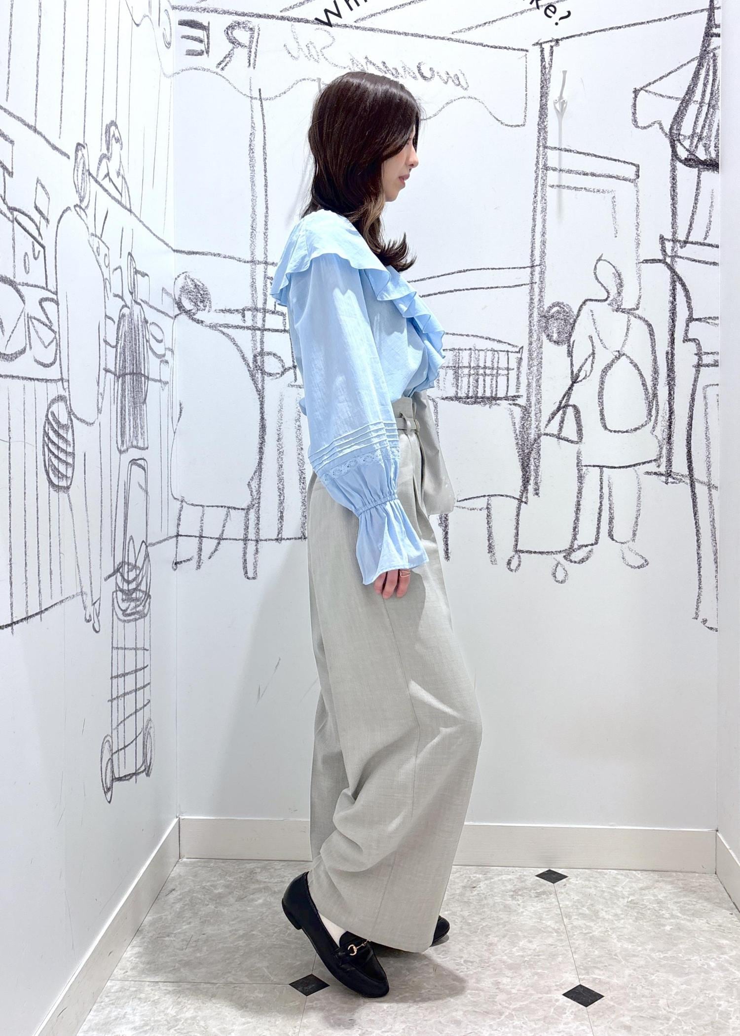 インナーに合わせたフリルシャツも胸元や袖元のデザインがワンポイントになり1枚でもシンプル過ぎずに着用できます!