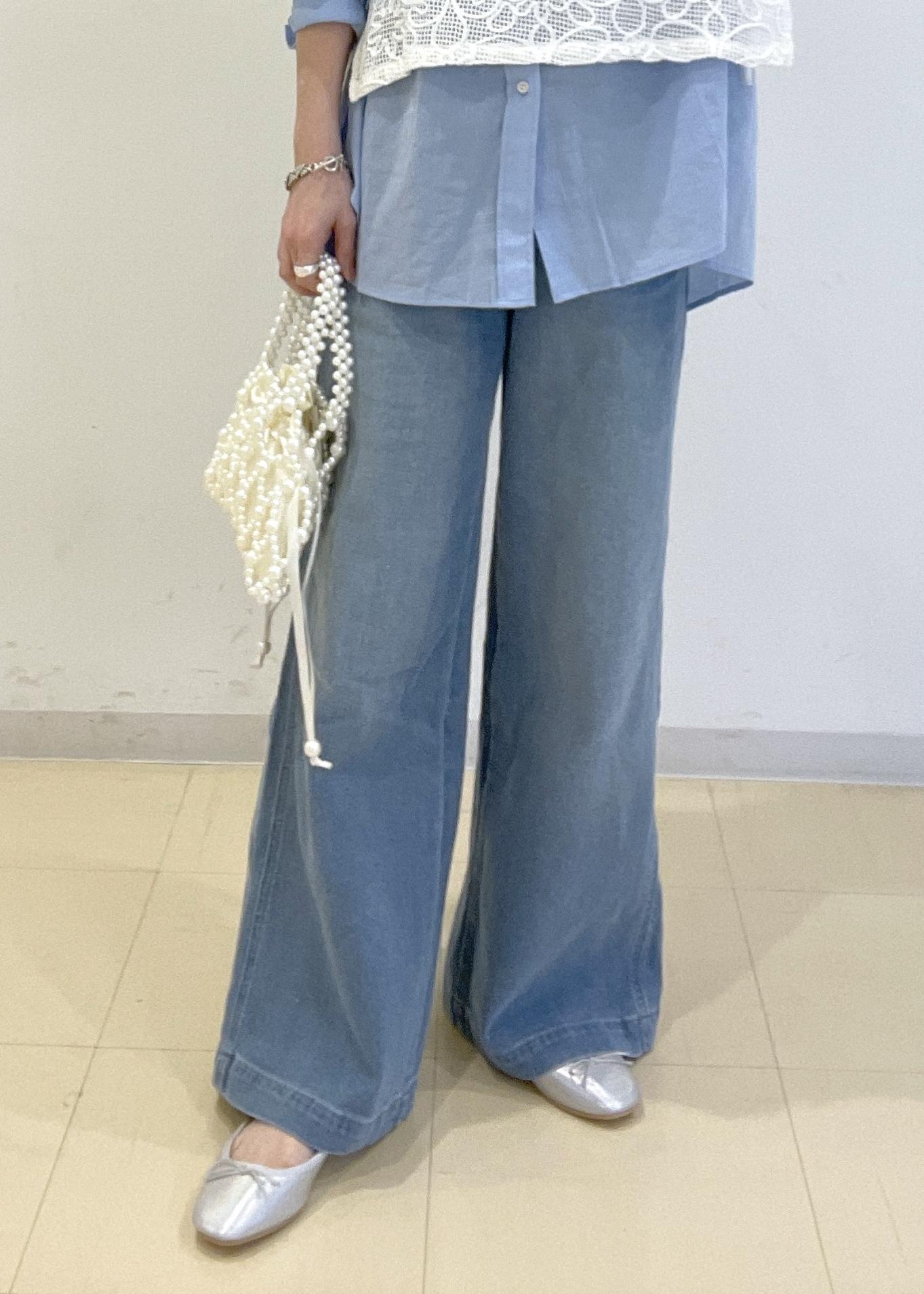 ROPÉ PICNIC【ウエスト革命デニム】ウエストシェイプデニムワイドパンツサックス / 36¥4,543レビューハイウエストのデザインで、ウエストベルトの下に太めのゴムを入れているので、着圧効果もありすっきり着れます。